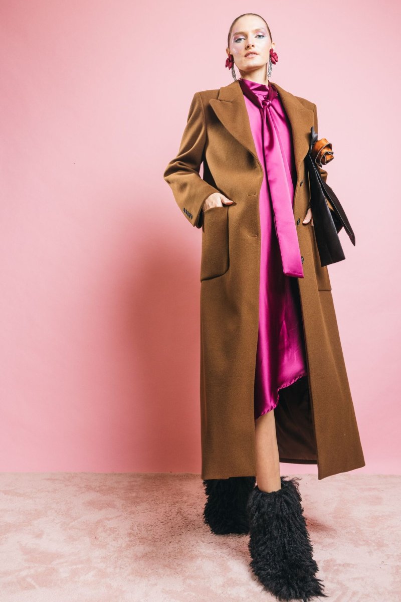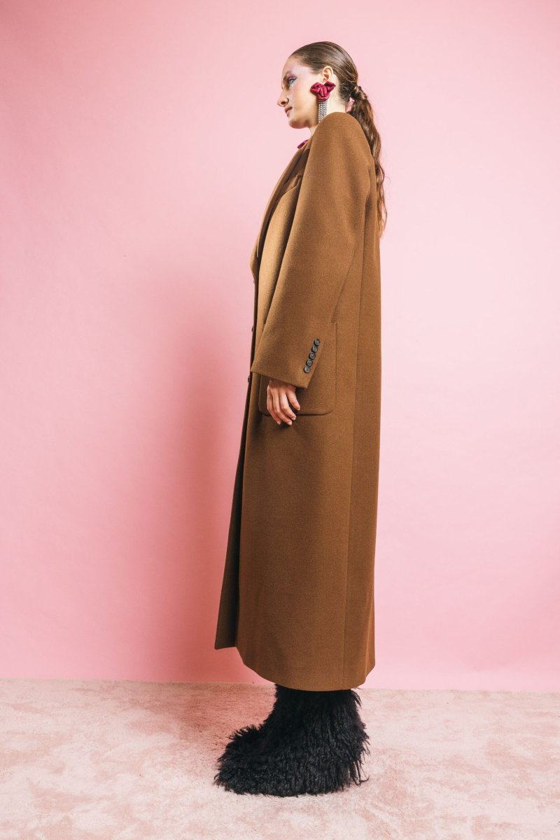Minimalismo deciso e taglio stutturato definiscono il cappotto lungo Janis, pensato per completare ogni look con autorevolezza. Le tasche sui lati, il revers strutturato e la chiusura a due bottoni interpretano con eleganza l’essenzialità, mentre la linea dritta accompagna la figura con naturalezza.