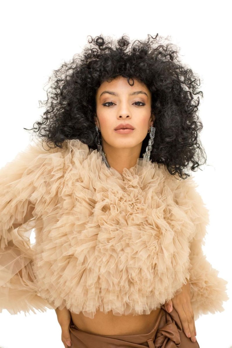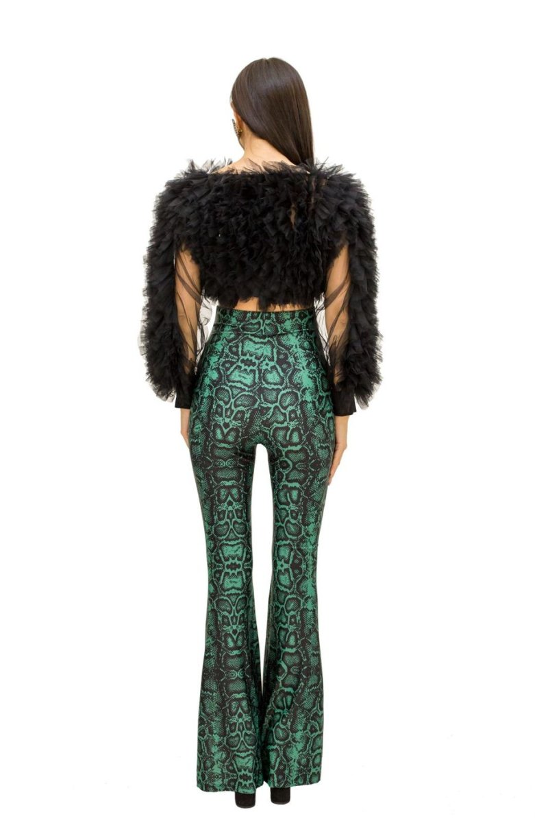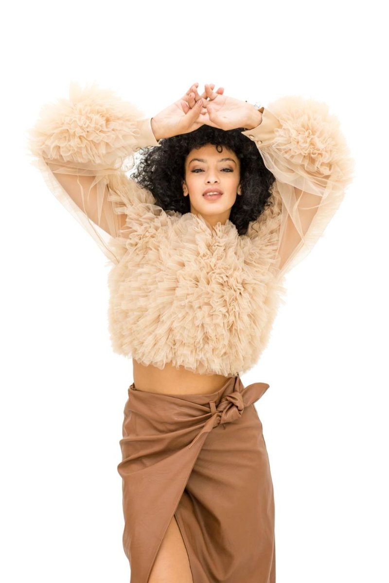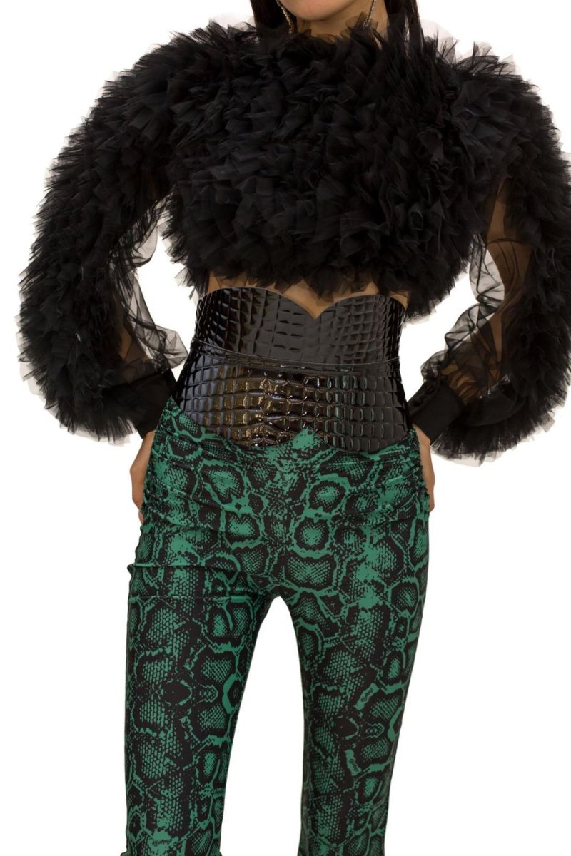 CROP TOP IN TULLE ARRICIATO CON POLSINI IN RASO