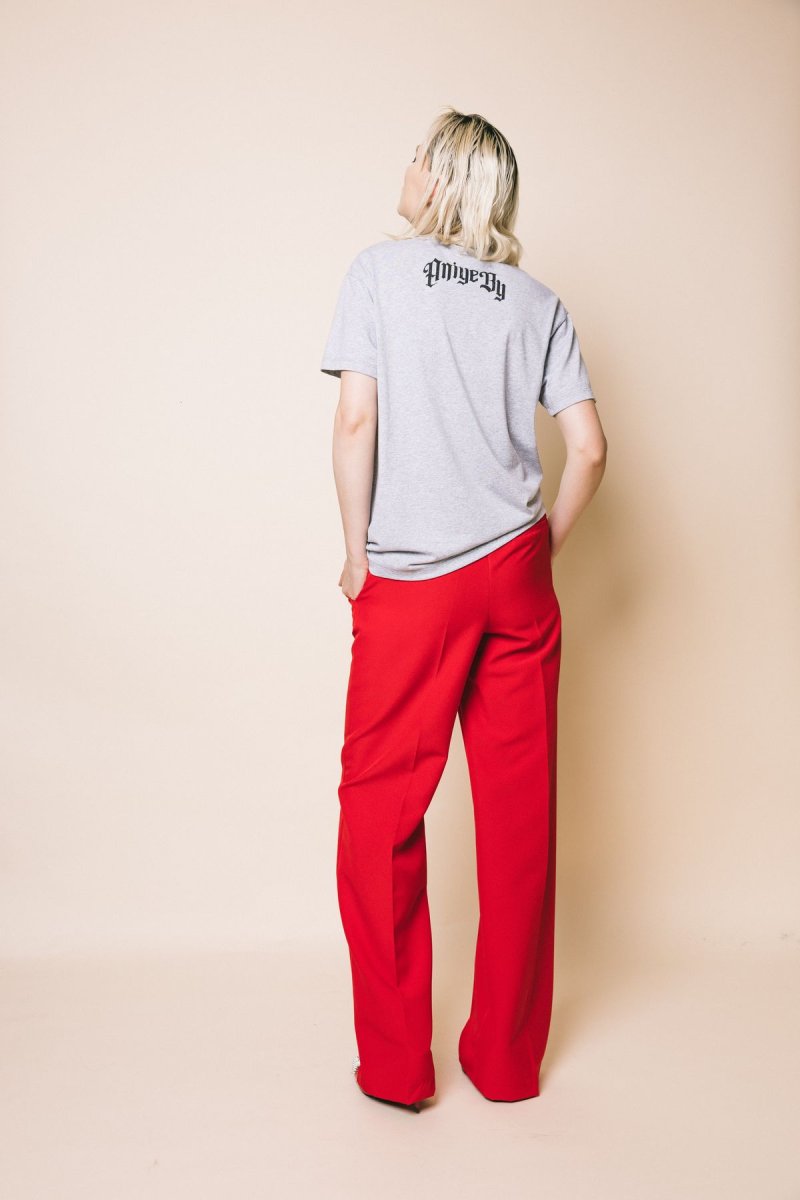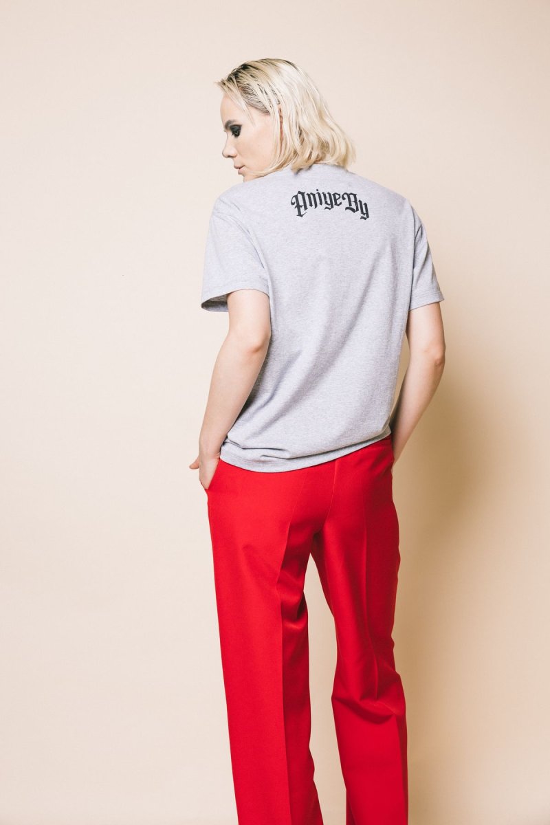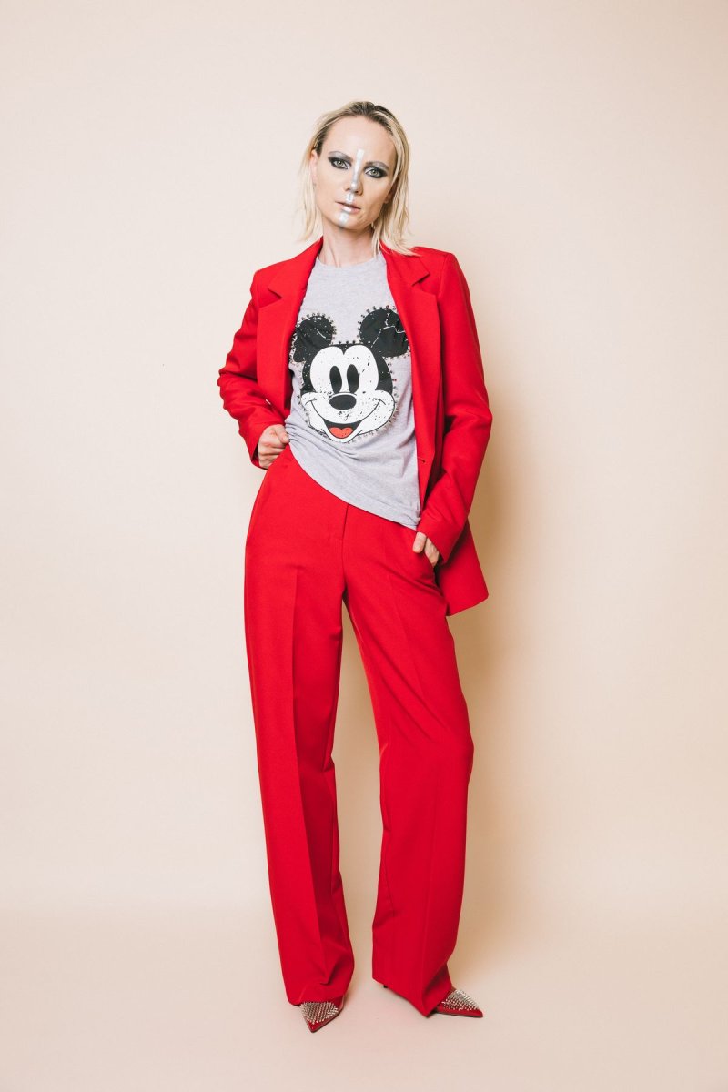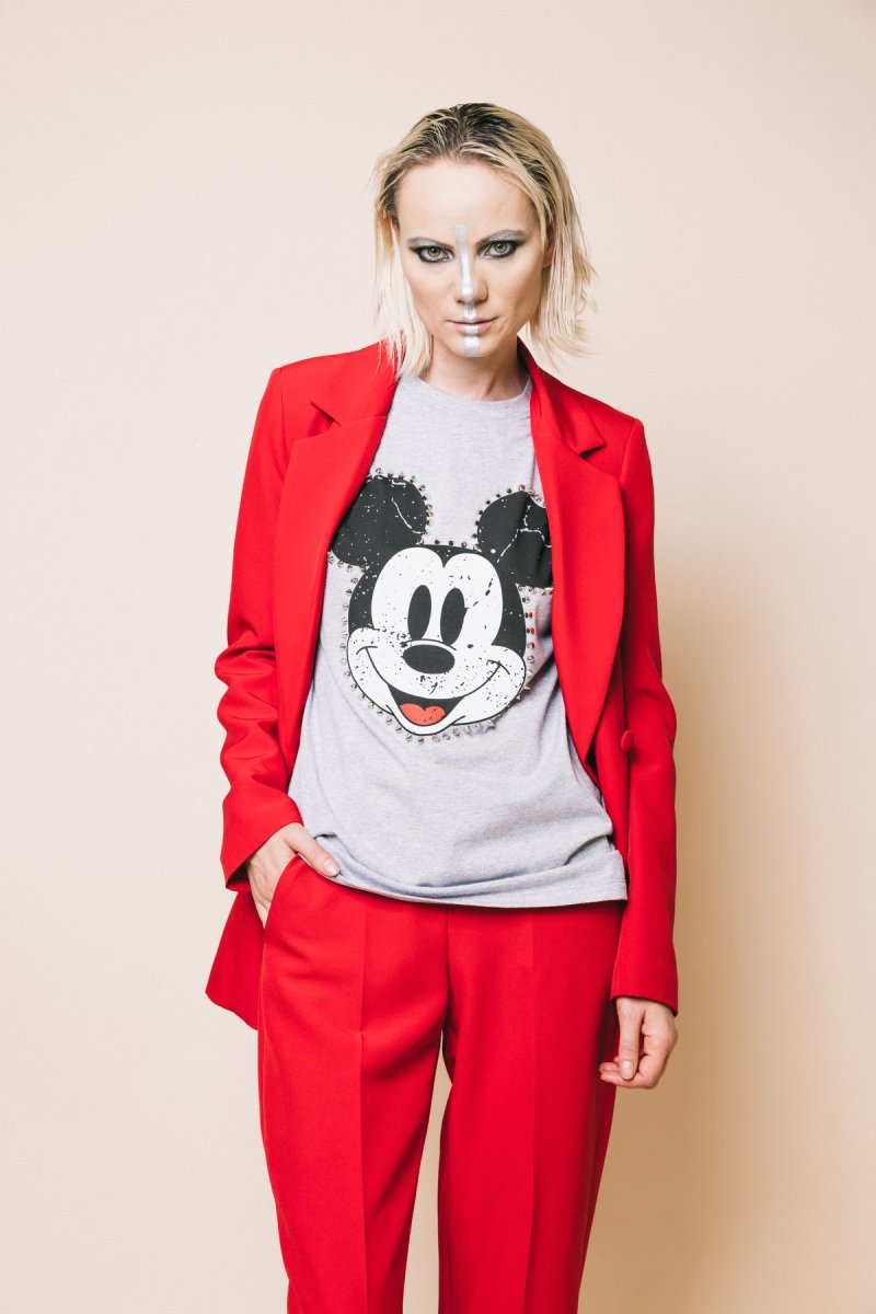 T-shirt Mickey, modello girocollo in jersey di cotone arricchita dalla stampa frontale del volto Minnie, ritratta con il suo iconico fiocco rosso. l0immagine Cartoon è arricchita da borchie che aggiungono un tocco rocco al capo. Sul retro stampa Aniye By in carattere gotico.