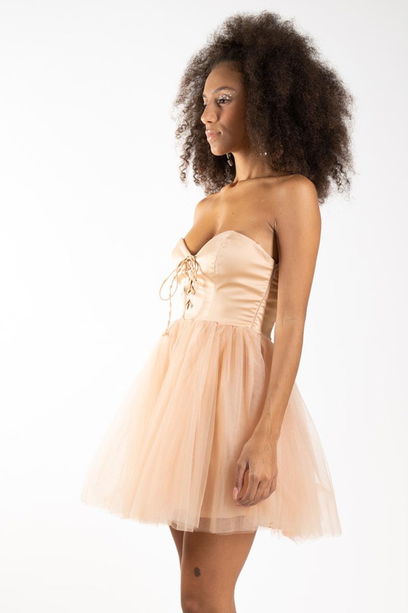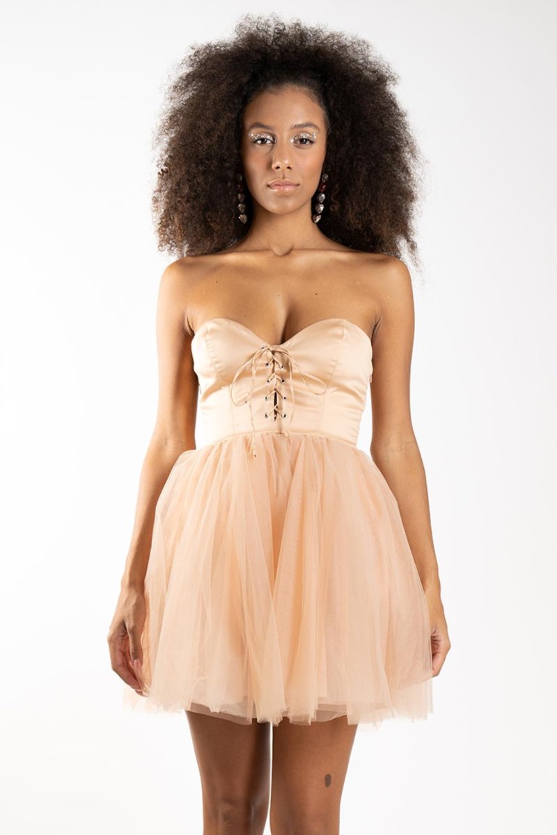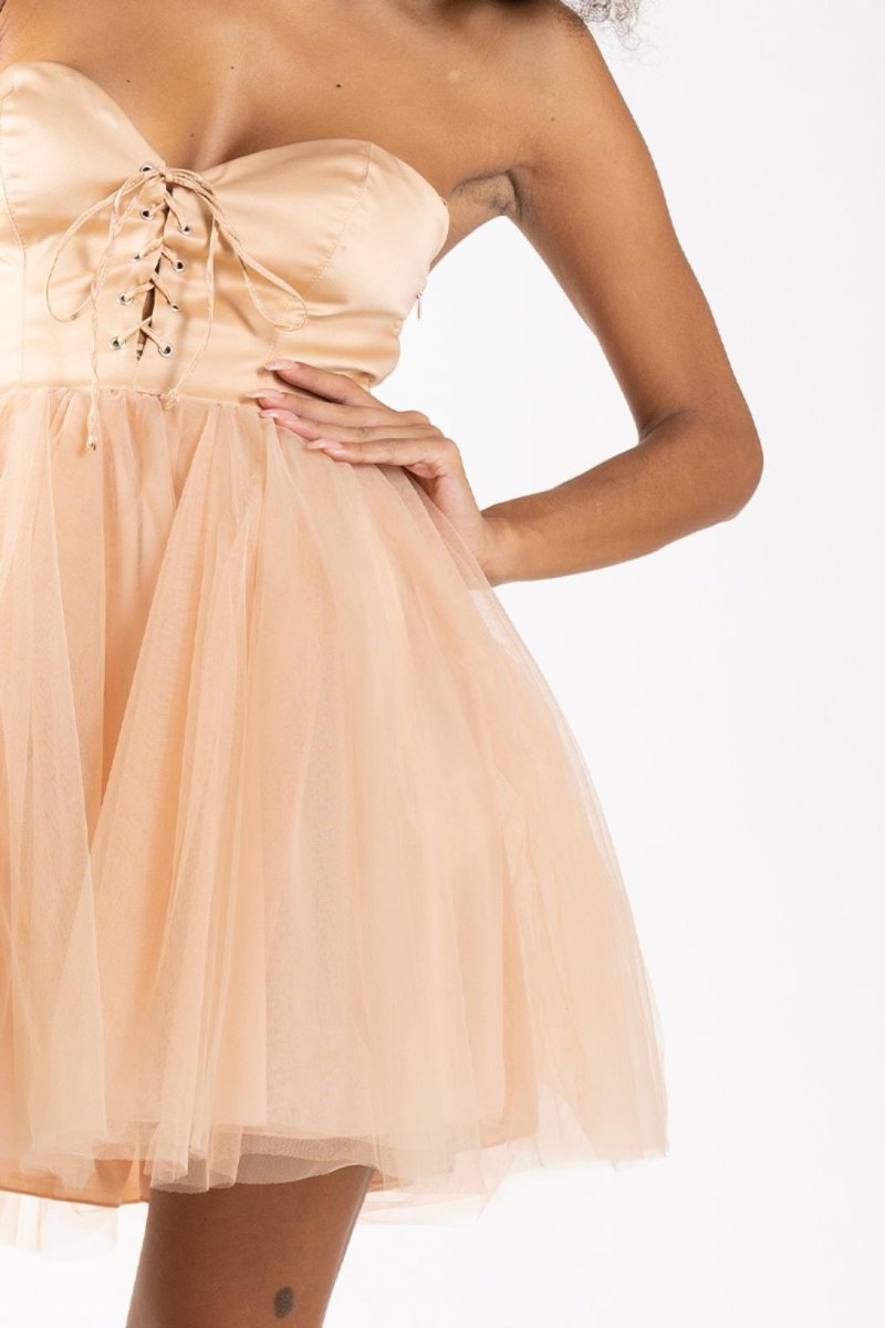 MINIABITO A FASCIA IN RASO ELASTICIZZATO+TULLE