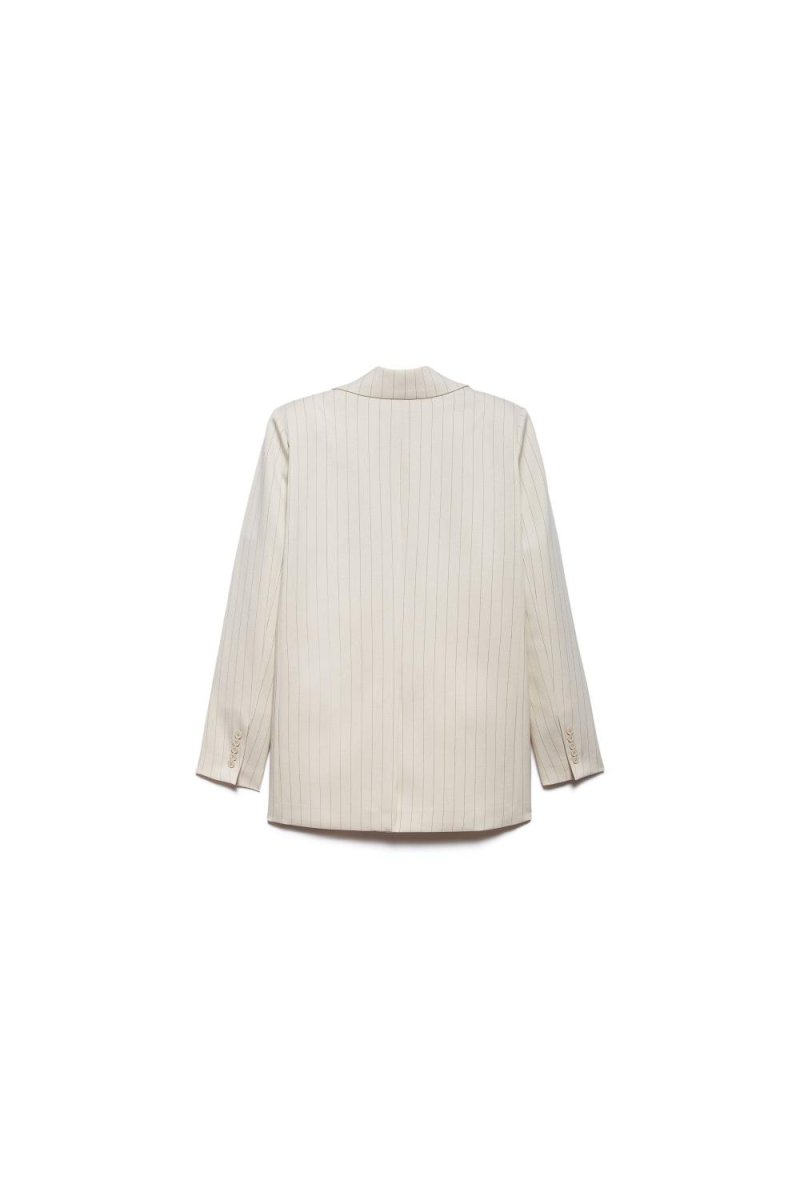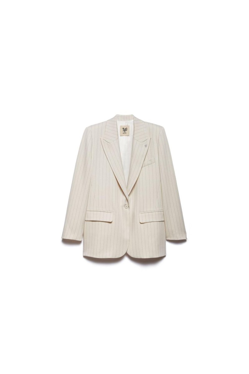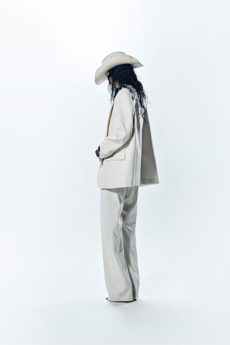 Blazer gessato oversize con abbottonatura monopetto, dal carattere deciso, costruito con equilibrio e precisione sartoriale. La linea ampia veste con naturalezza, mantenendo struttura e personalità.