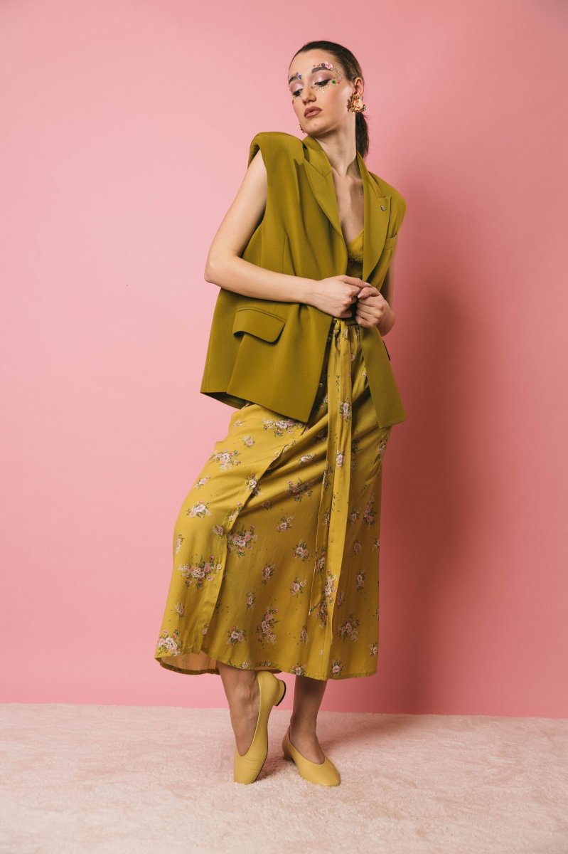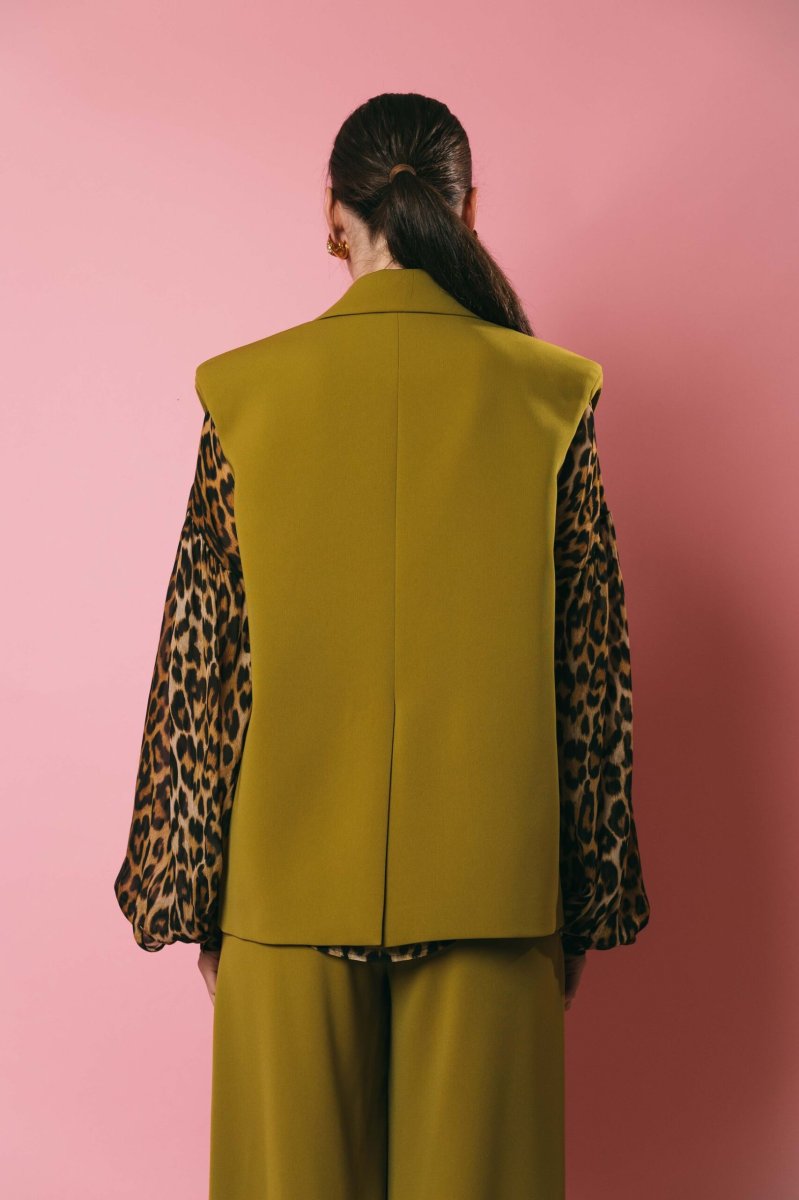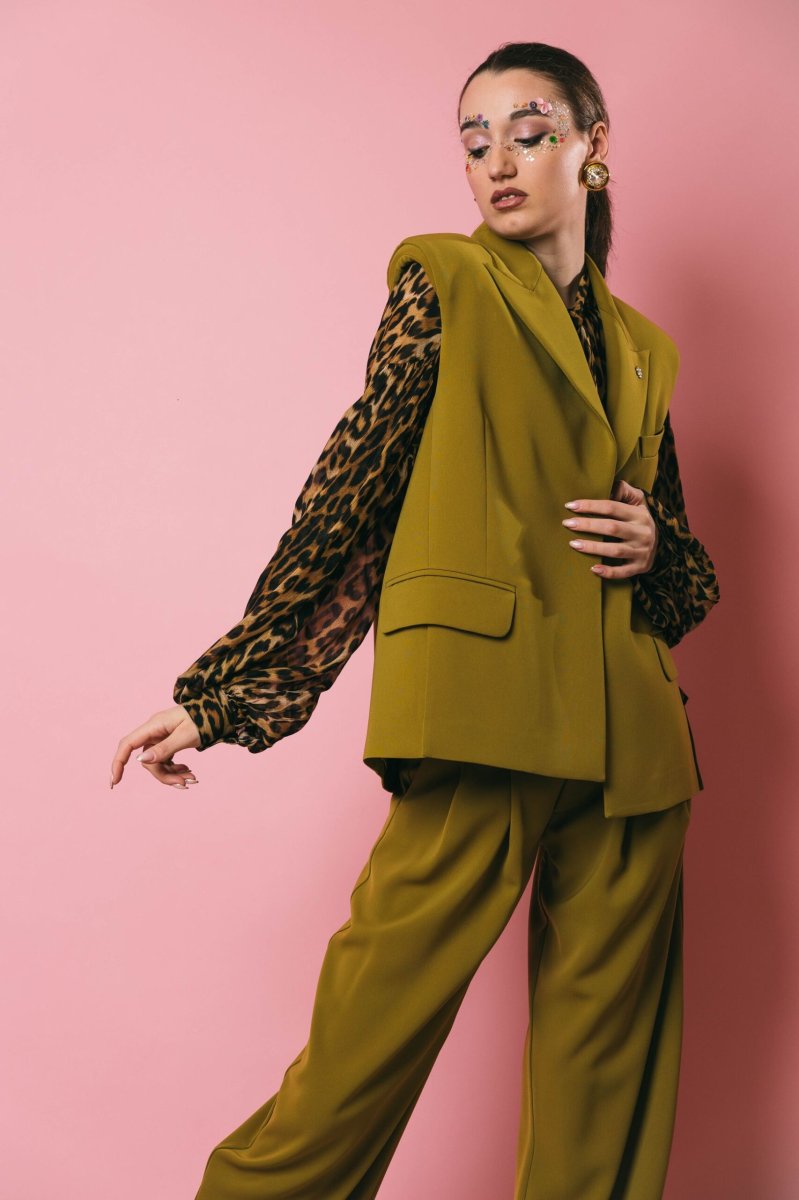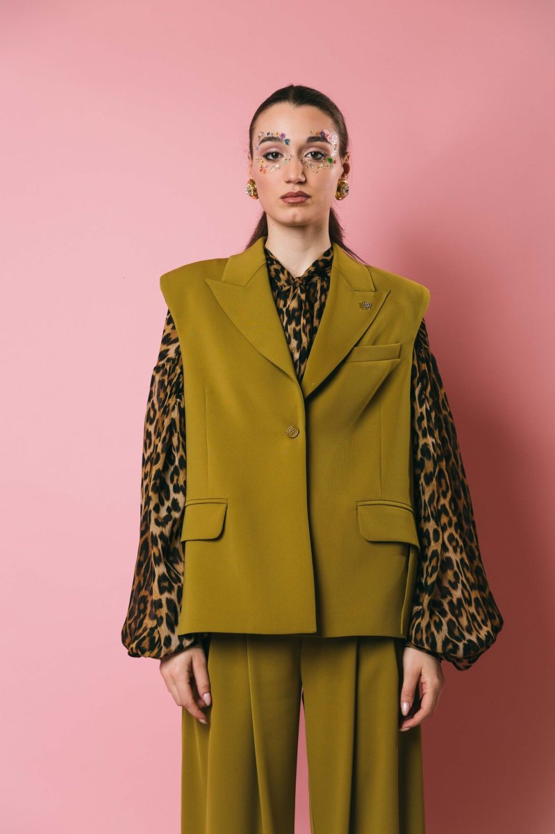Gilet over 1 bottone, con spalline, finte tasche con spacchetti, apertura posteriore