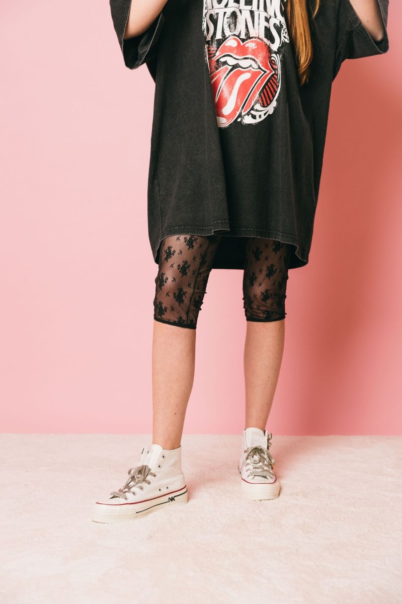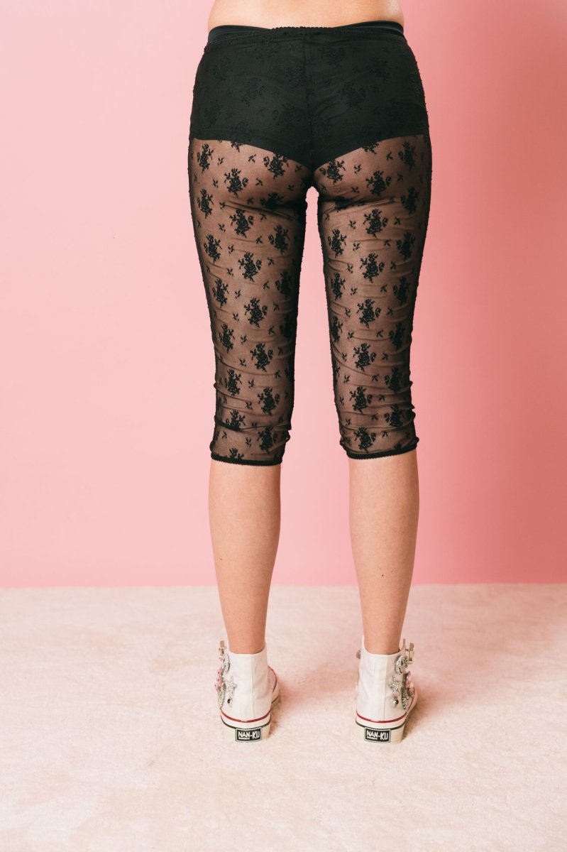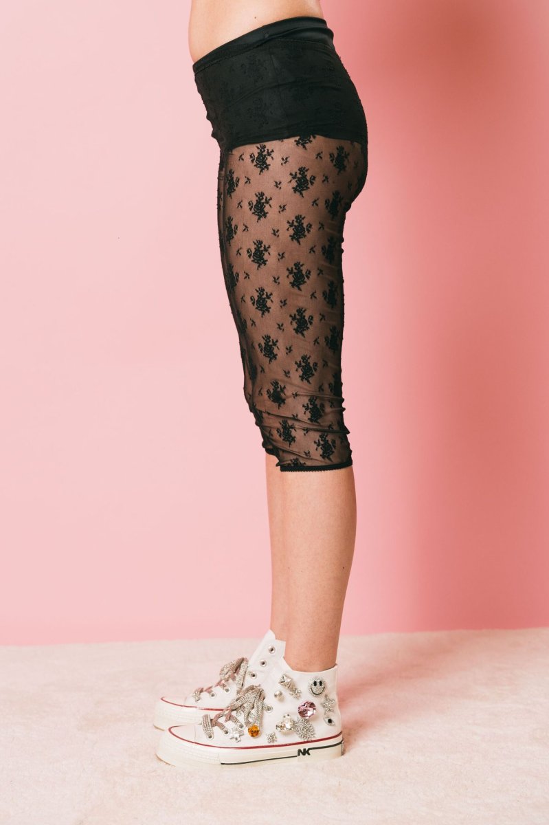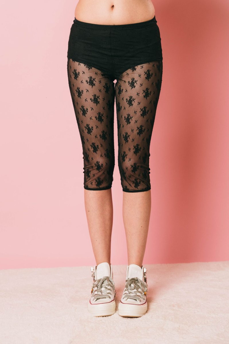 Leggins al polpaccio in pizzo con micro elastico in vita.