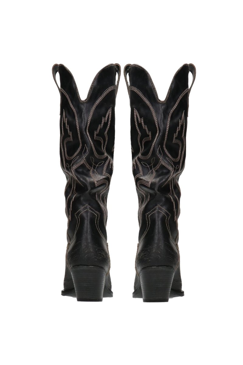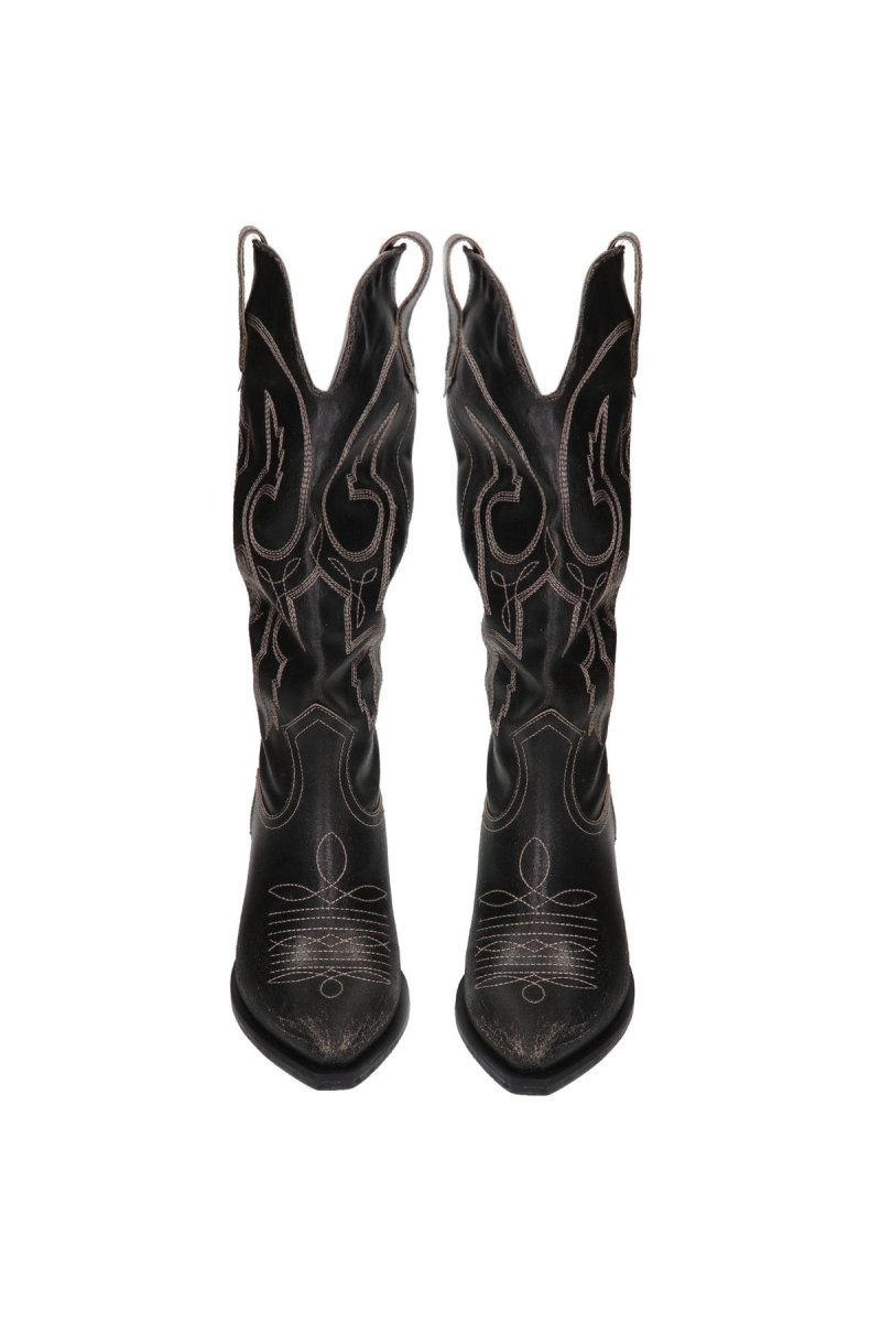 Stivale texano con tacco cm 6.5 in pelle nera rovinata Altezza gambale sotto al ginocchio cm 38