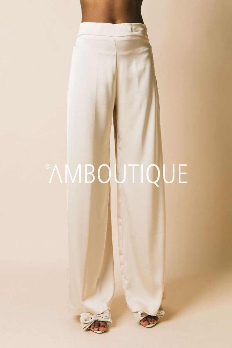 Pantalone palazzo in raso a vita alta.