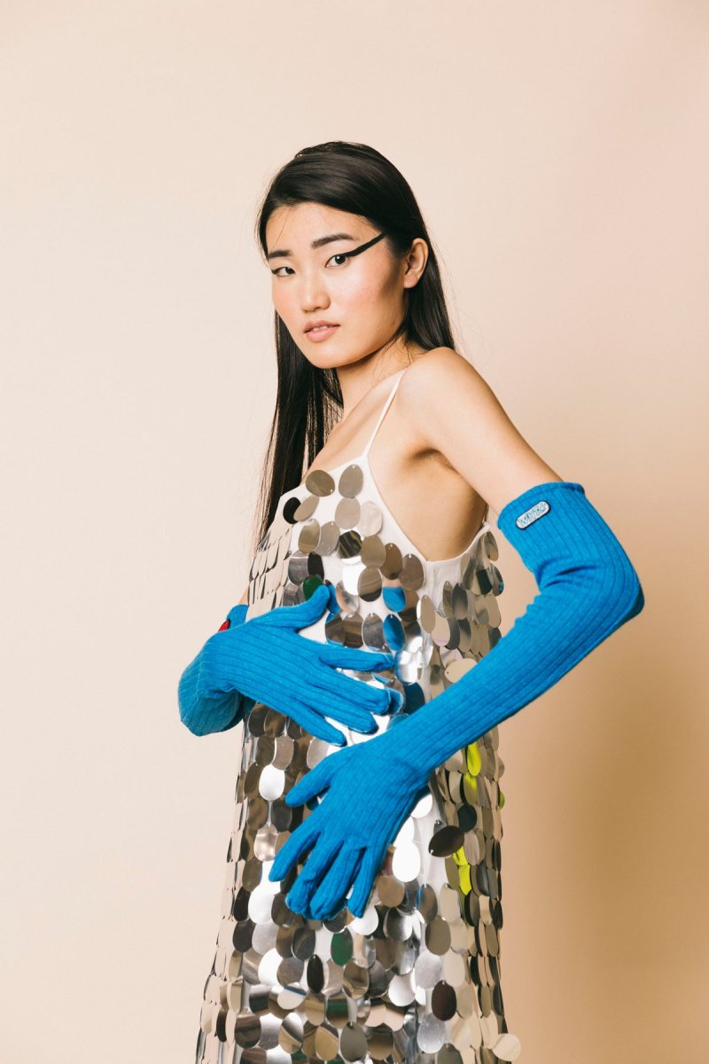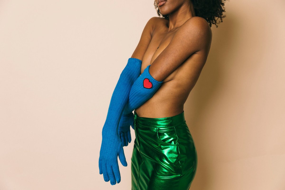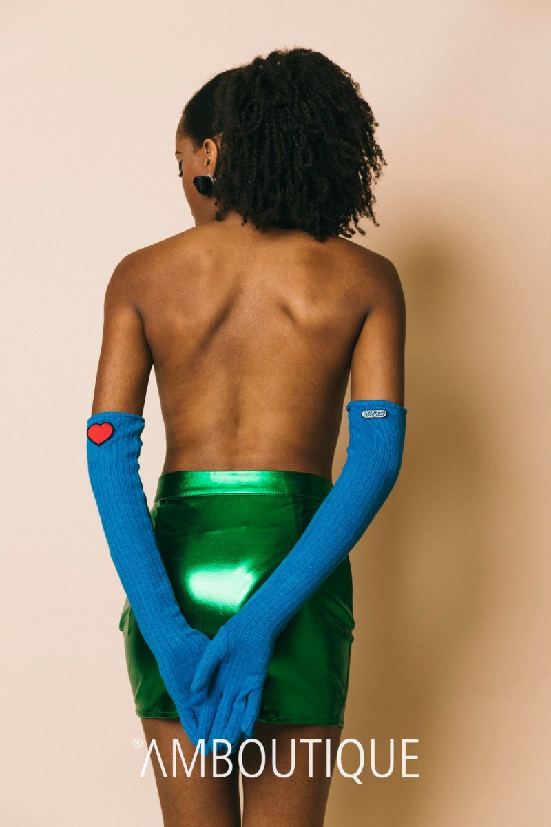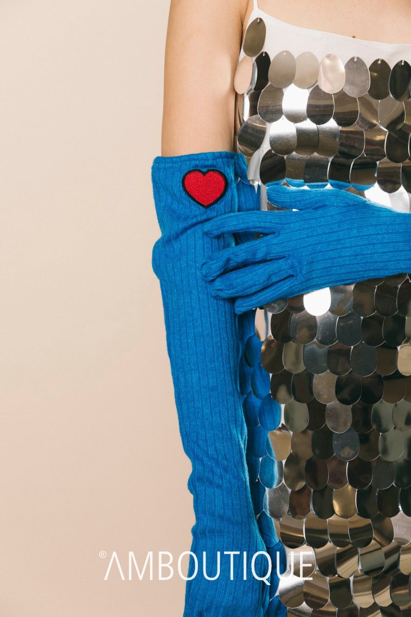 Guanti lunghi in lana costine, dettaglio cuore red