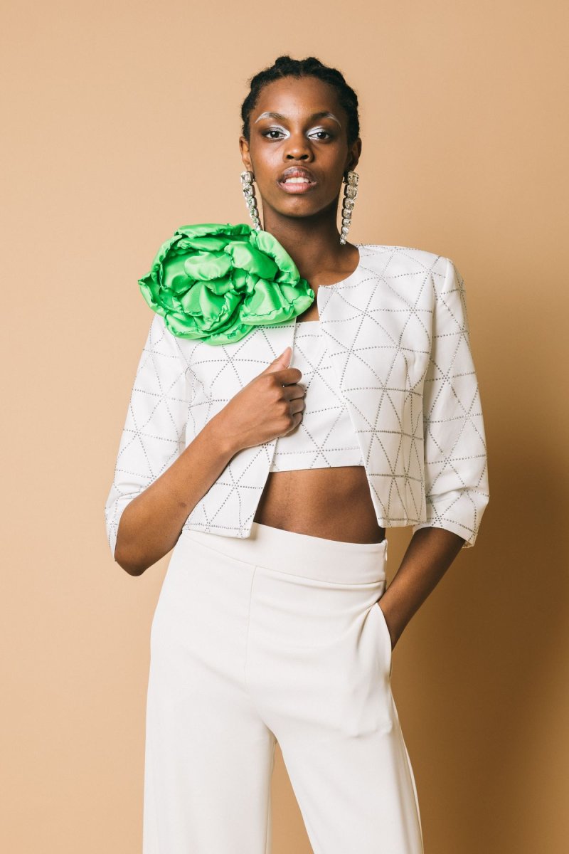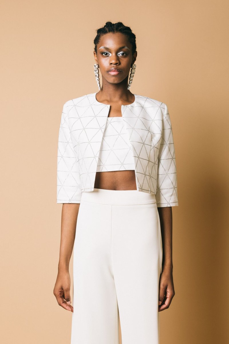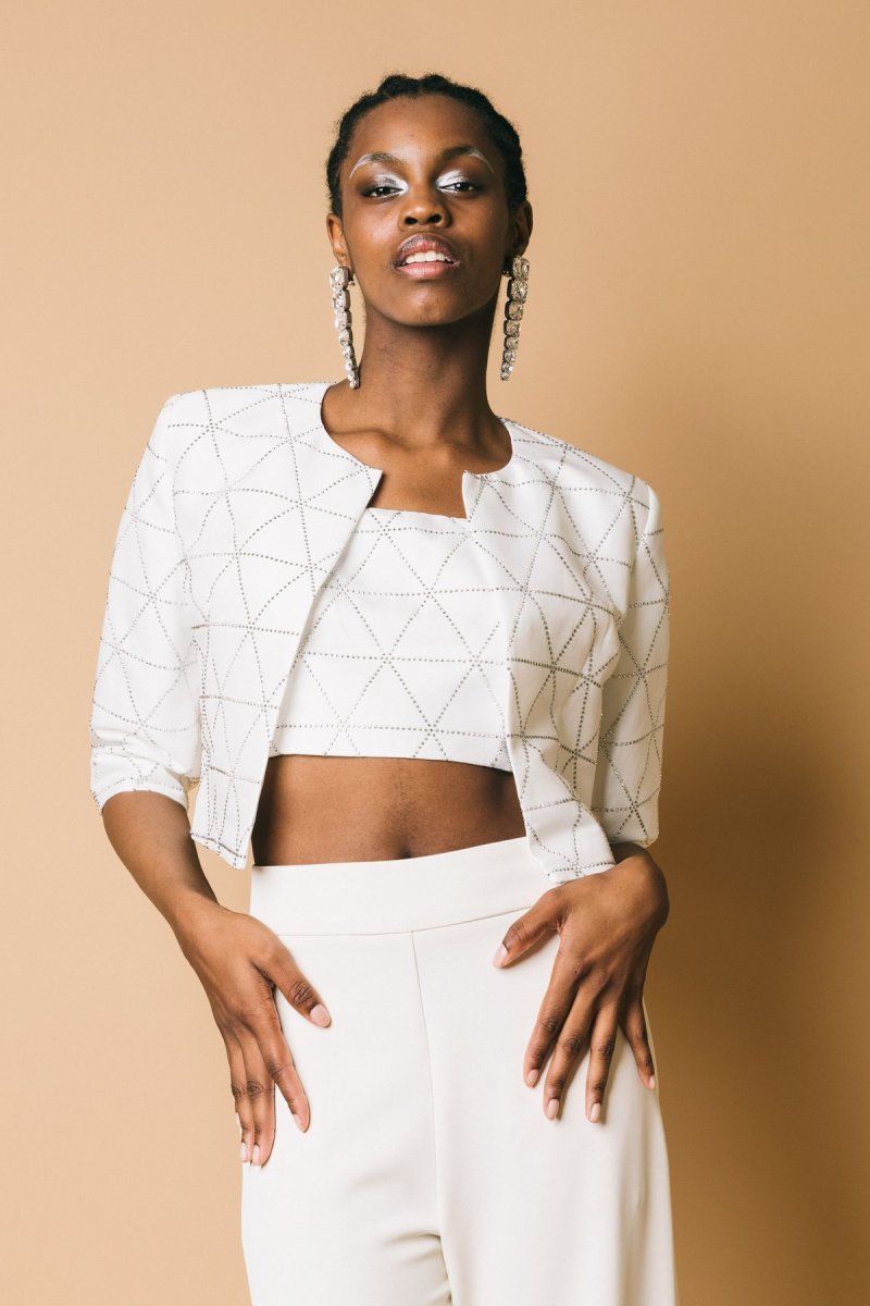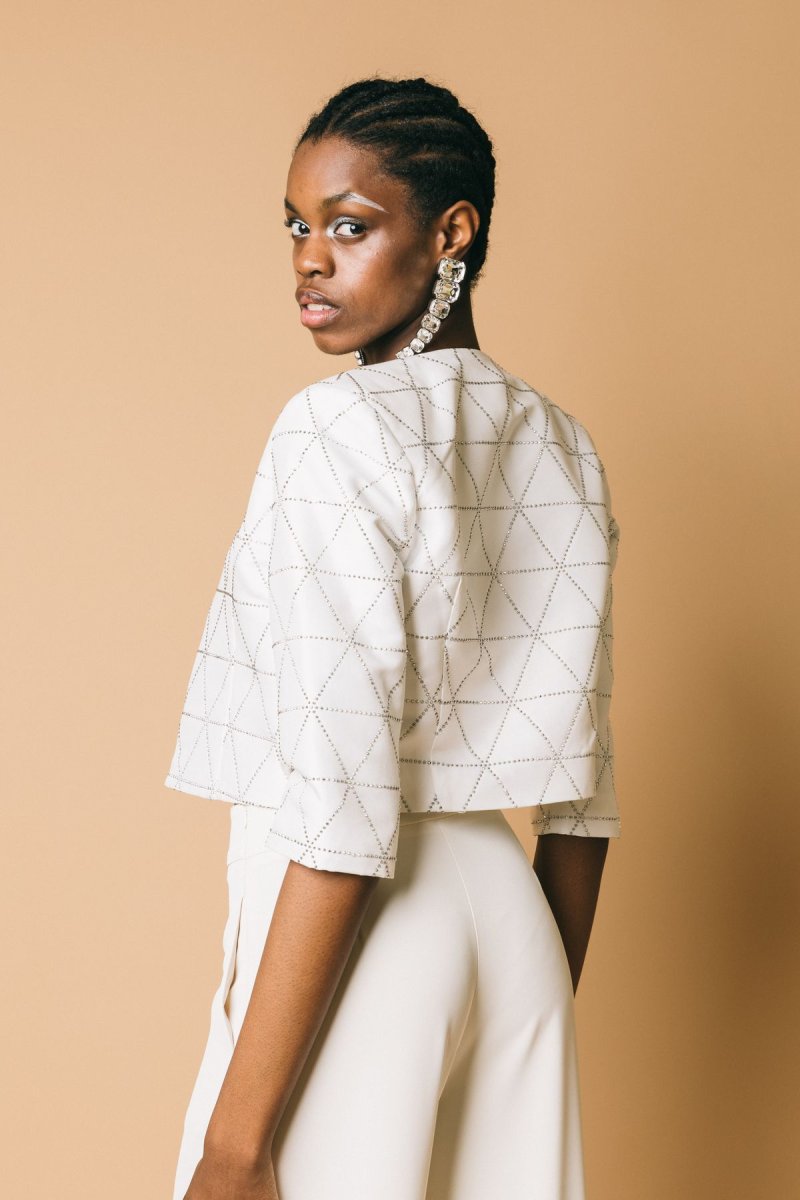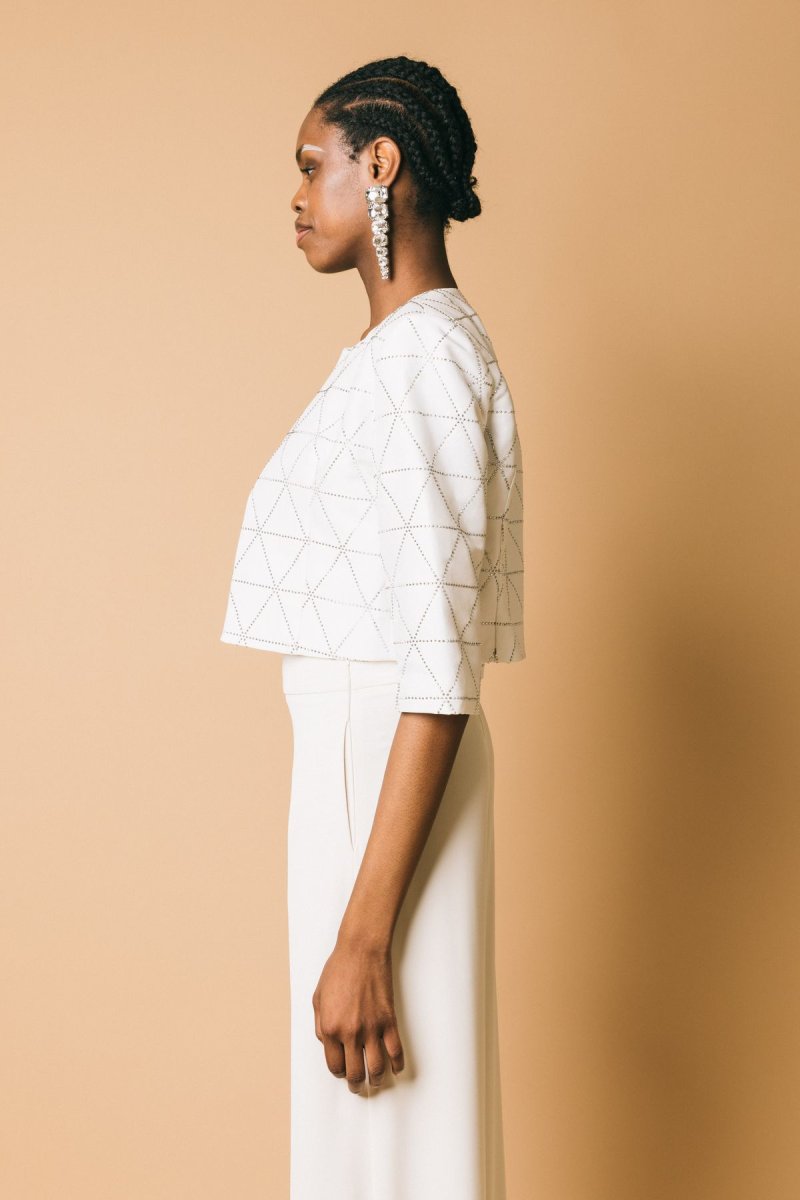 Giacca cropped dettaglio strass silver , manica a 3/4