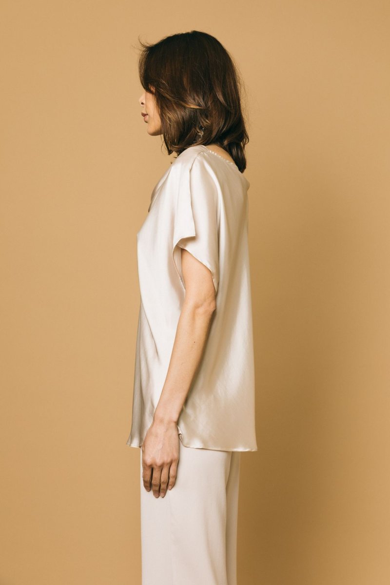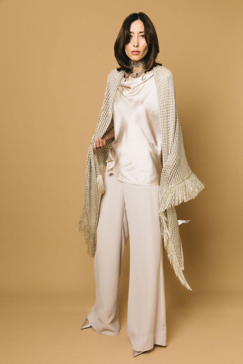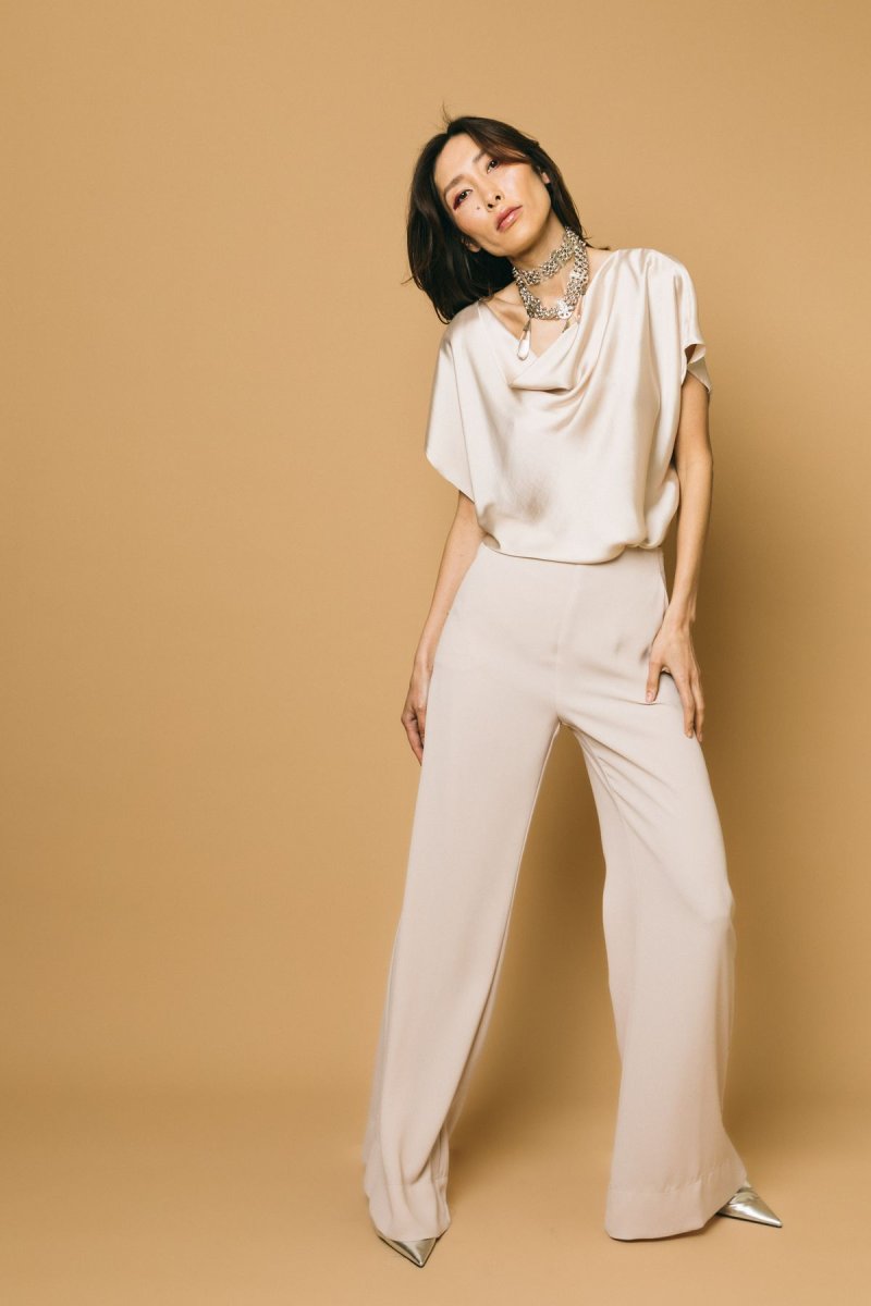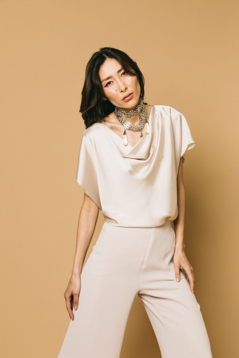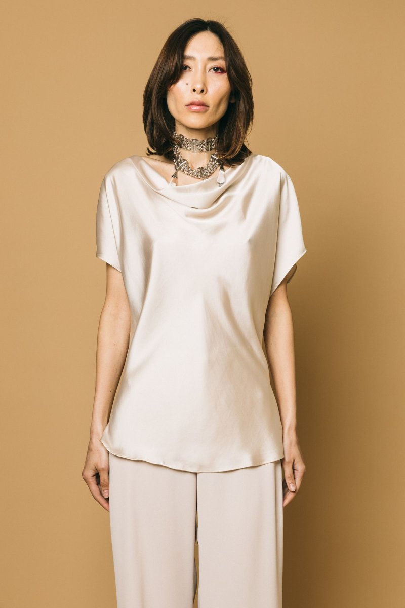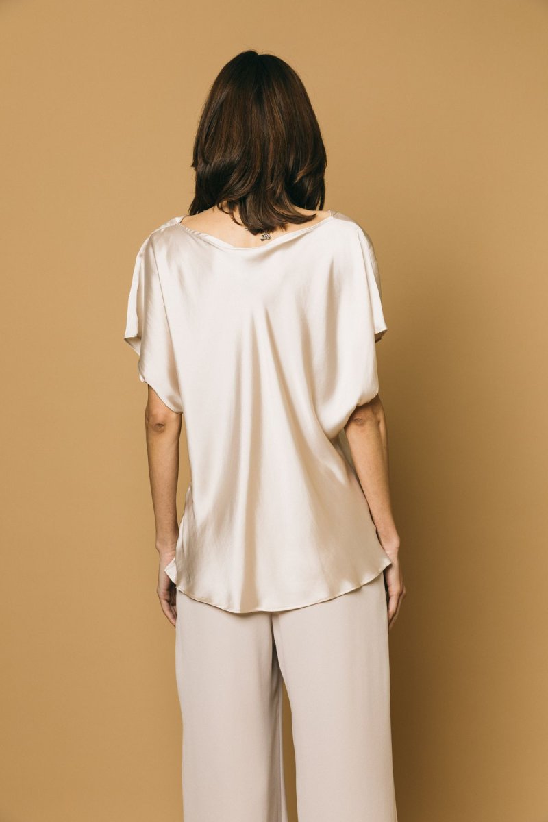 Blusa in satin scollo sciallato