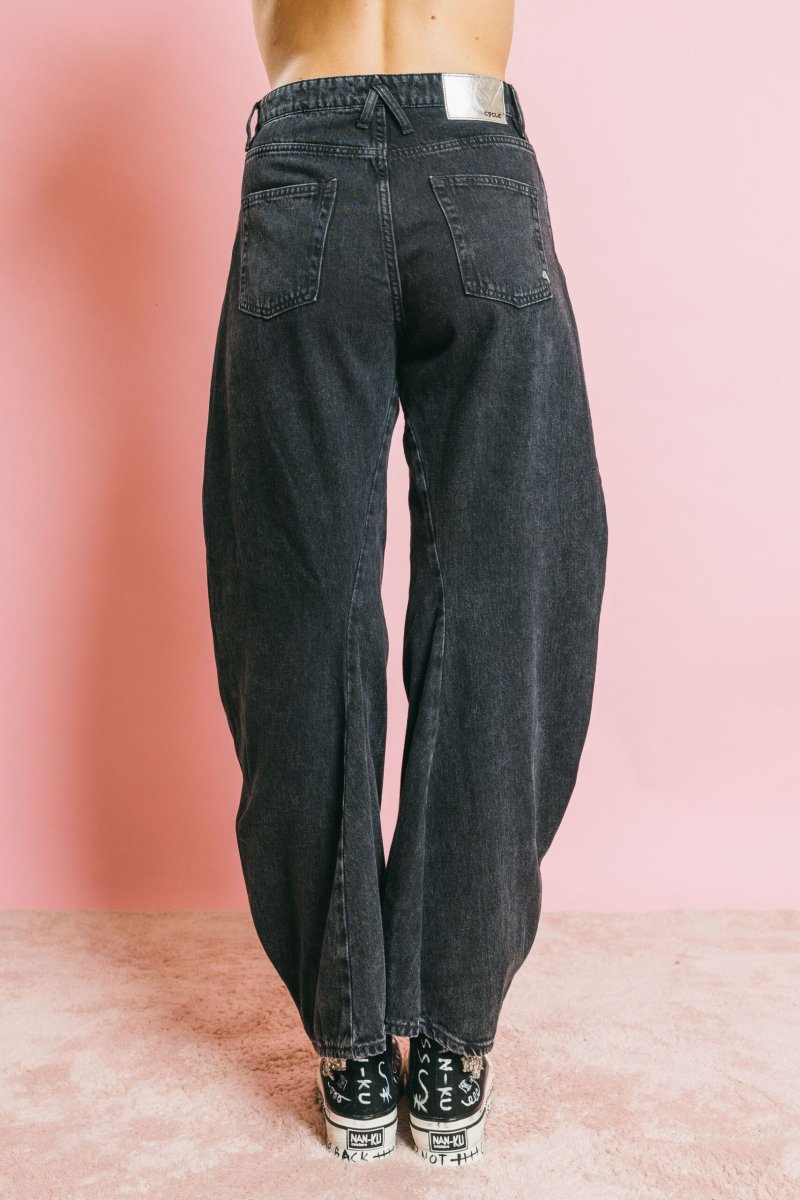 Jeans Aida gamba molto curva, vita media, lavaggio black con pietra enzimatica ecologica.