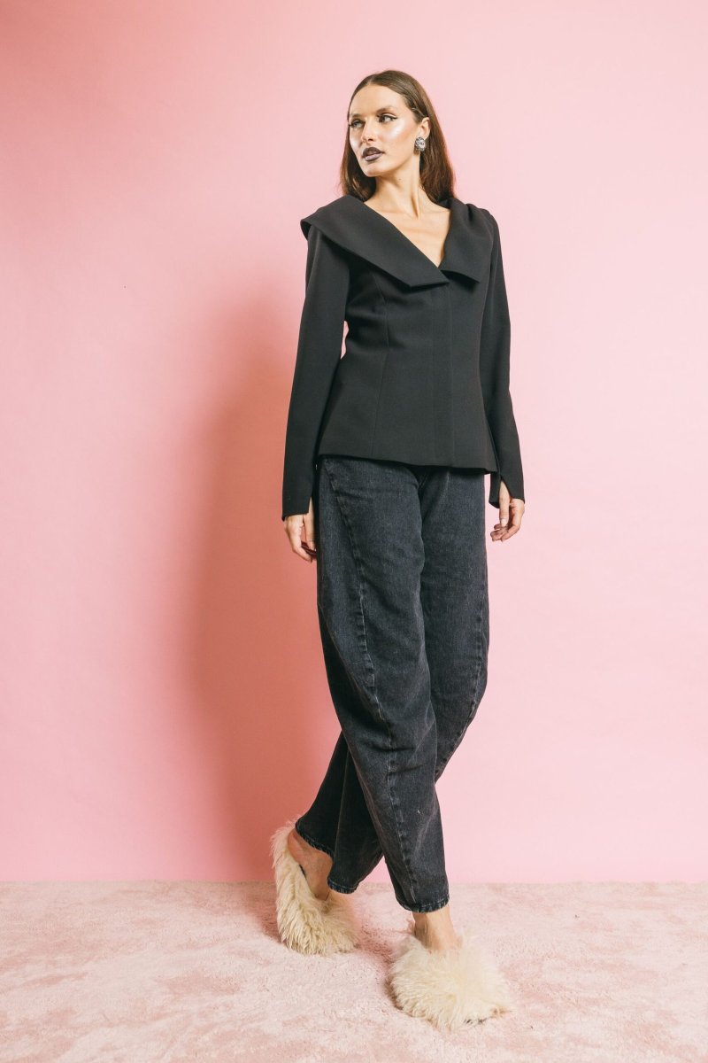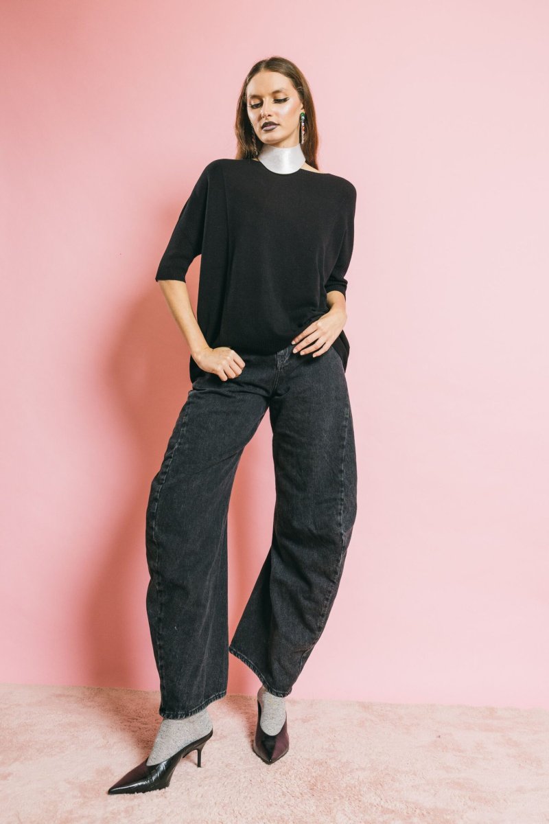 Jeans Aida gamba molto curva, vita media, lavaggio black con pietra enzimatica ecologica. *La modella è alta 181 cm e indossa la taglia 28 Tessuto: 100% cotone Indicazioni di lavaggio: Lavabile in acqua 30′