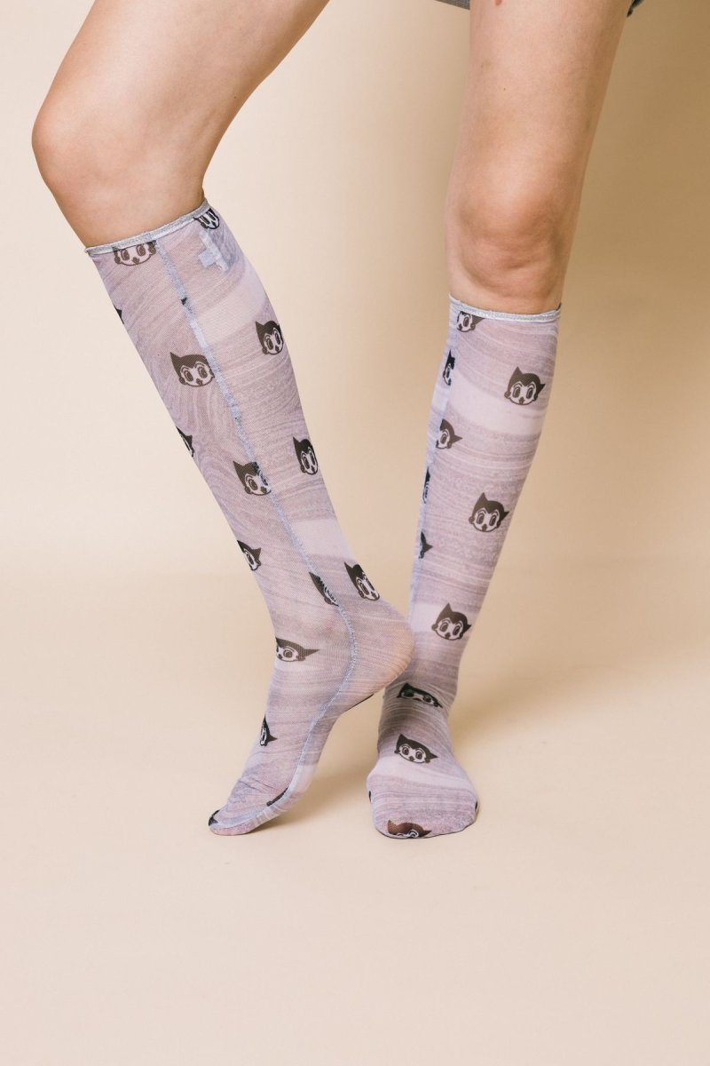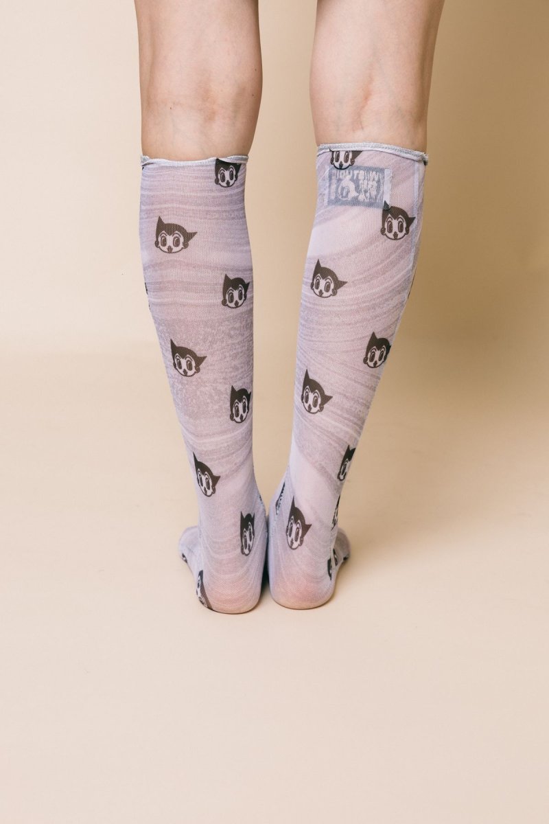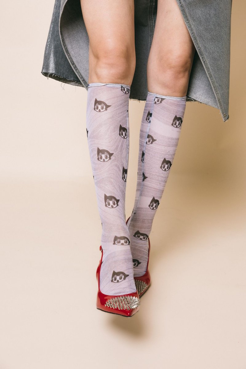 Calzino modello gambaletto in tulle stampa Astro boy grey