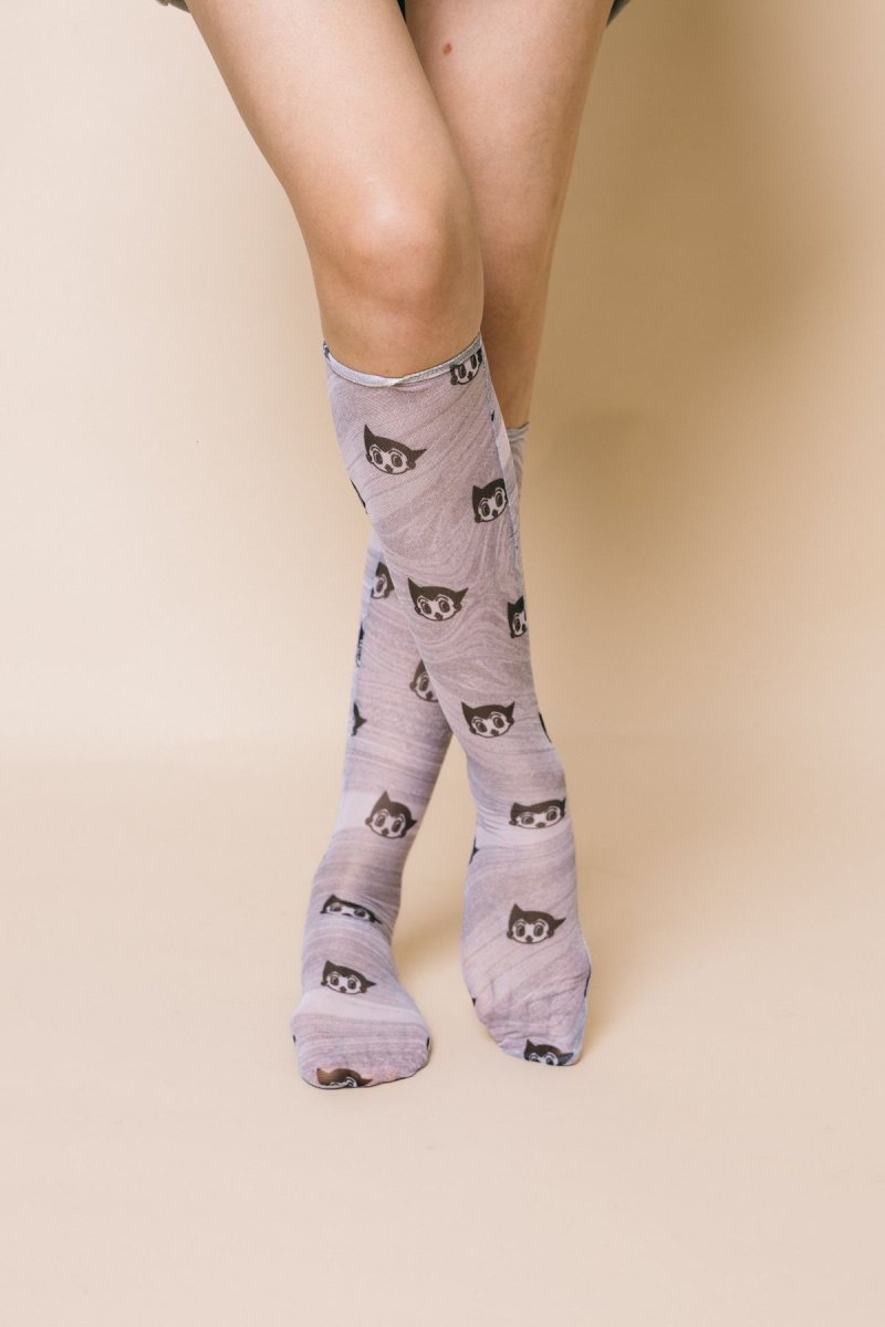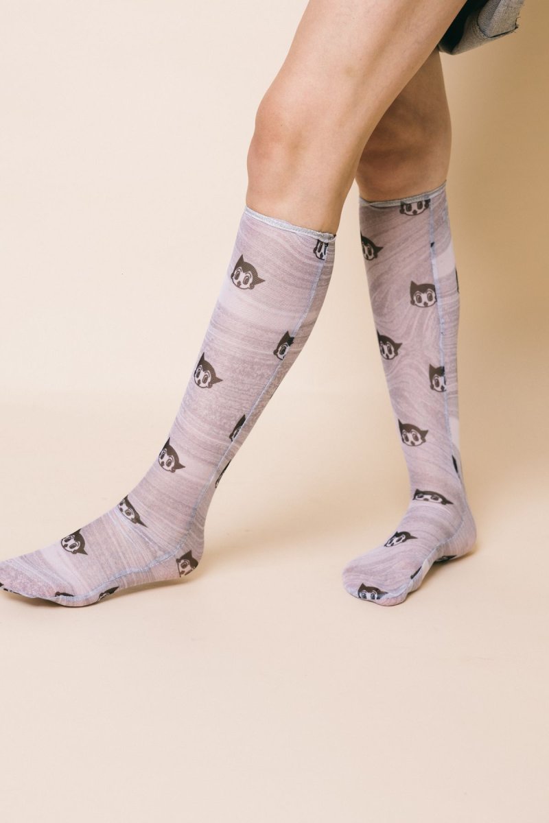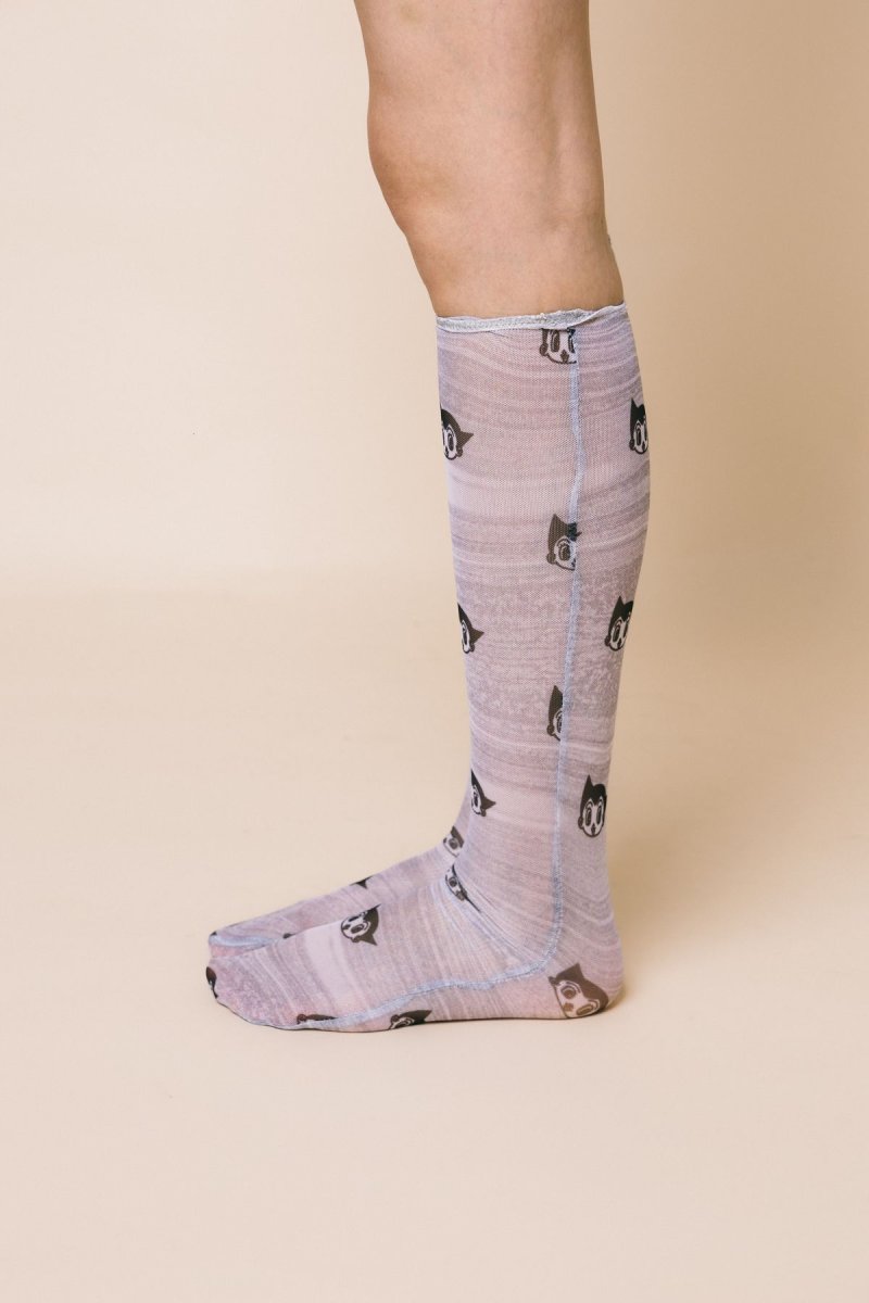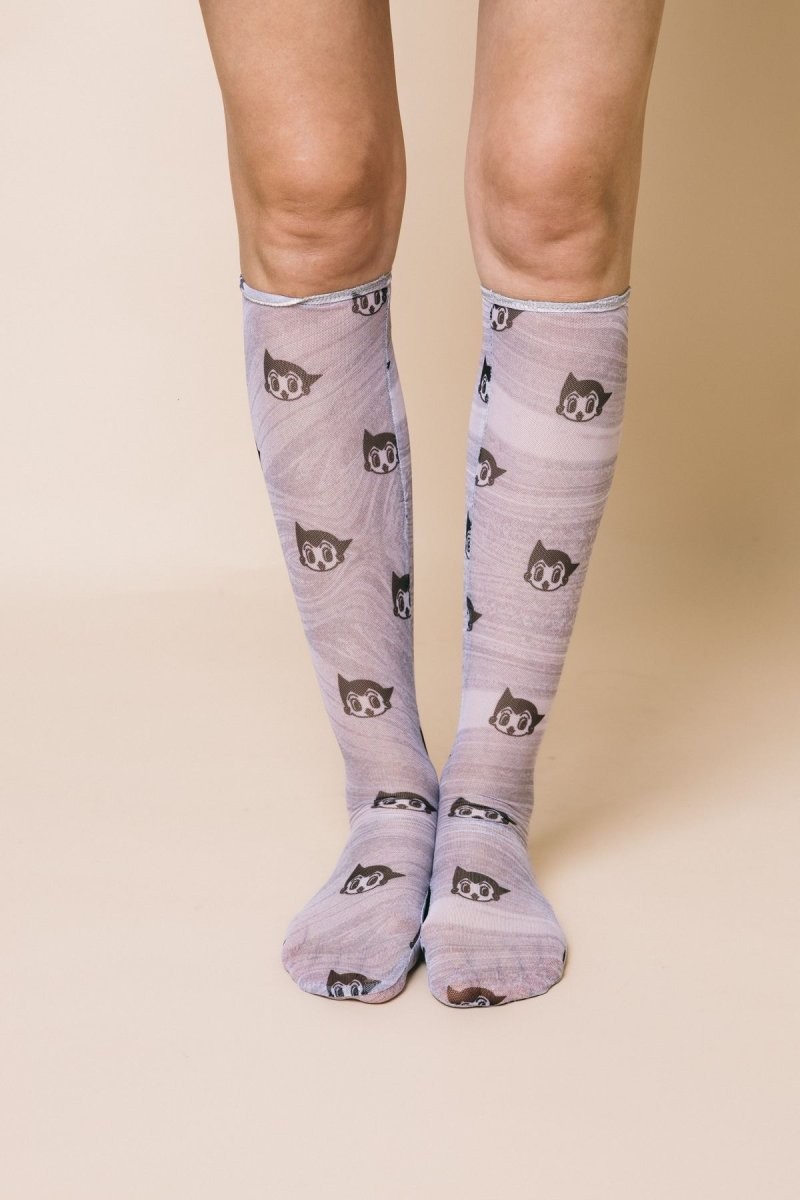 Calzino modello gambaletto in tulle stampa Astro boy grey