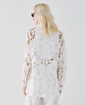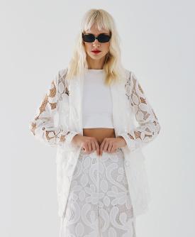 Blazer in pizzo sangallo due bottoni effetto ceramica