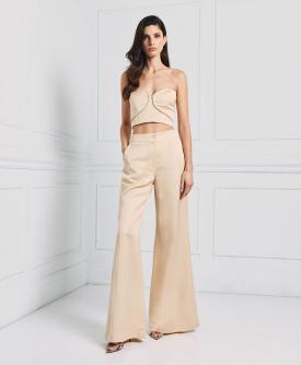 Top modello bustier con dettaglio cordone strass crystal *fit regular Altezza modella 179 cm taglia indossata S Tessuto: 55% viscosa 34% lino 11% cotone Indicazioni di lavaggio: Lavabile a secco