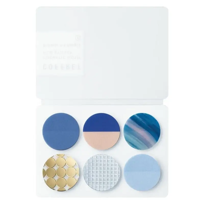 Ogni adesivo ricorda le polveri, gli ombretti e le texture iridescenti, valorizzando i vostri quaderni o gli oggetti di uso quotidiano con le sfumature del blu, dell’oro e dell’argento. Facilmente riposizionabili, potrete sovrapporli o allinearli, come in una tavolozza di make-up artistico!