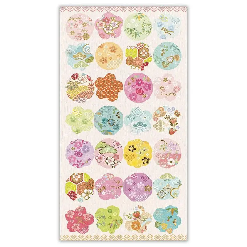 Un foglio di 28 adesivi giapponesi dai dettagli minuziosi e dalla qualità eccezionale. I delicati motivi evidenziano la bellezza dei fiori, “hana” in giapponese, sublimata da riflessi dorati. Questi adesivi giapponesi sono perfetti per decorare i vostri quaderni, la cancelleria e i progetti di scrapbooking.