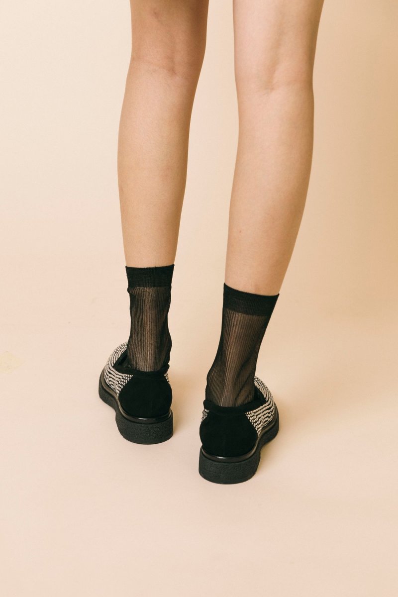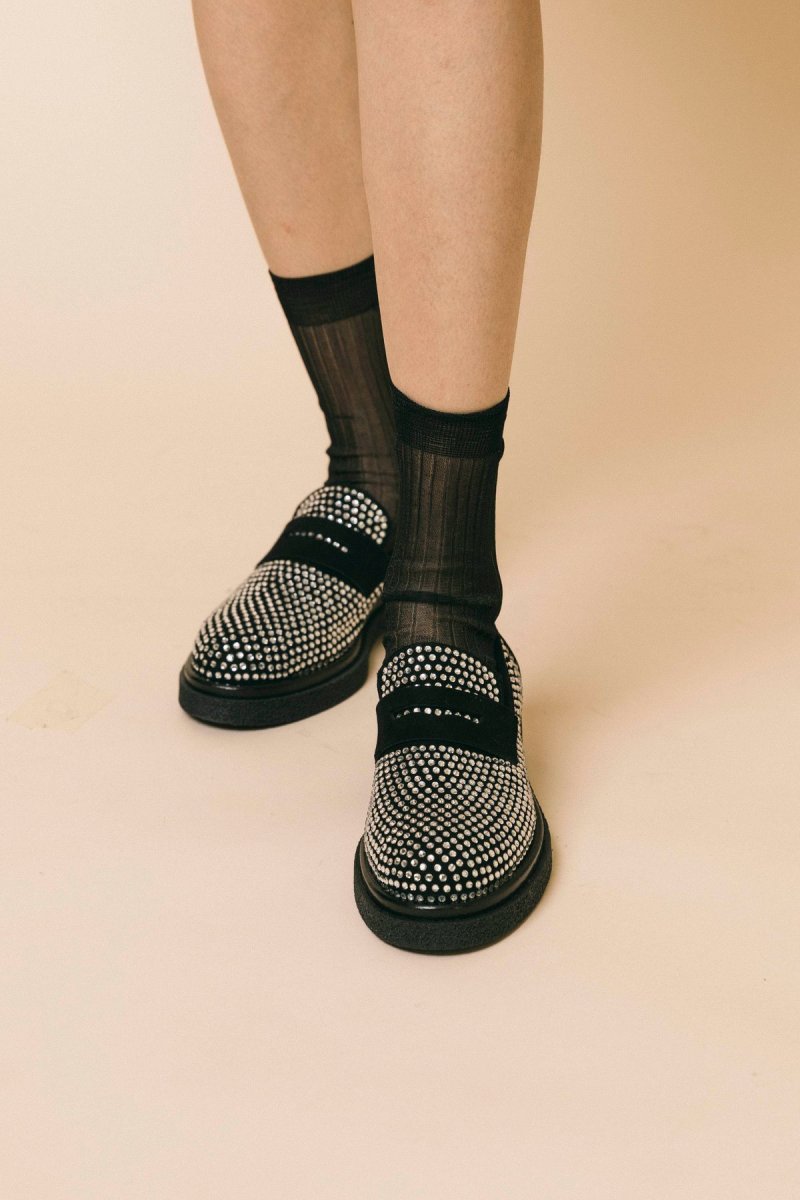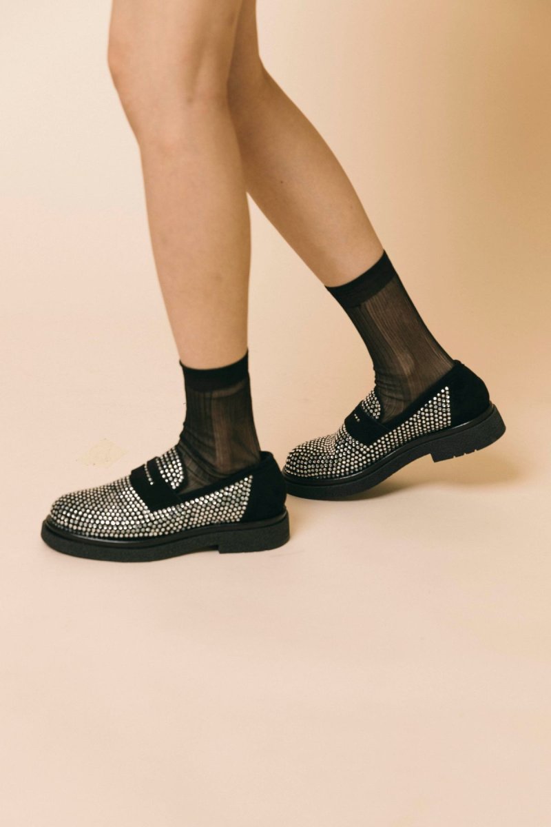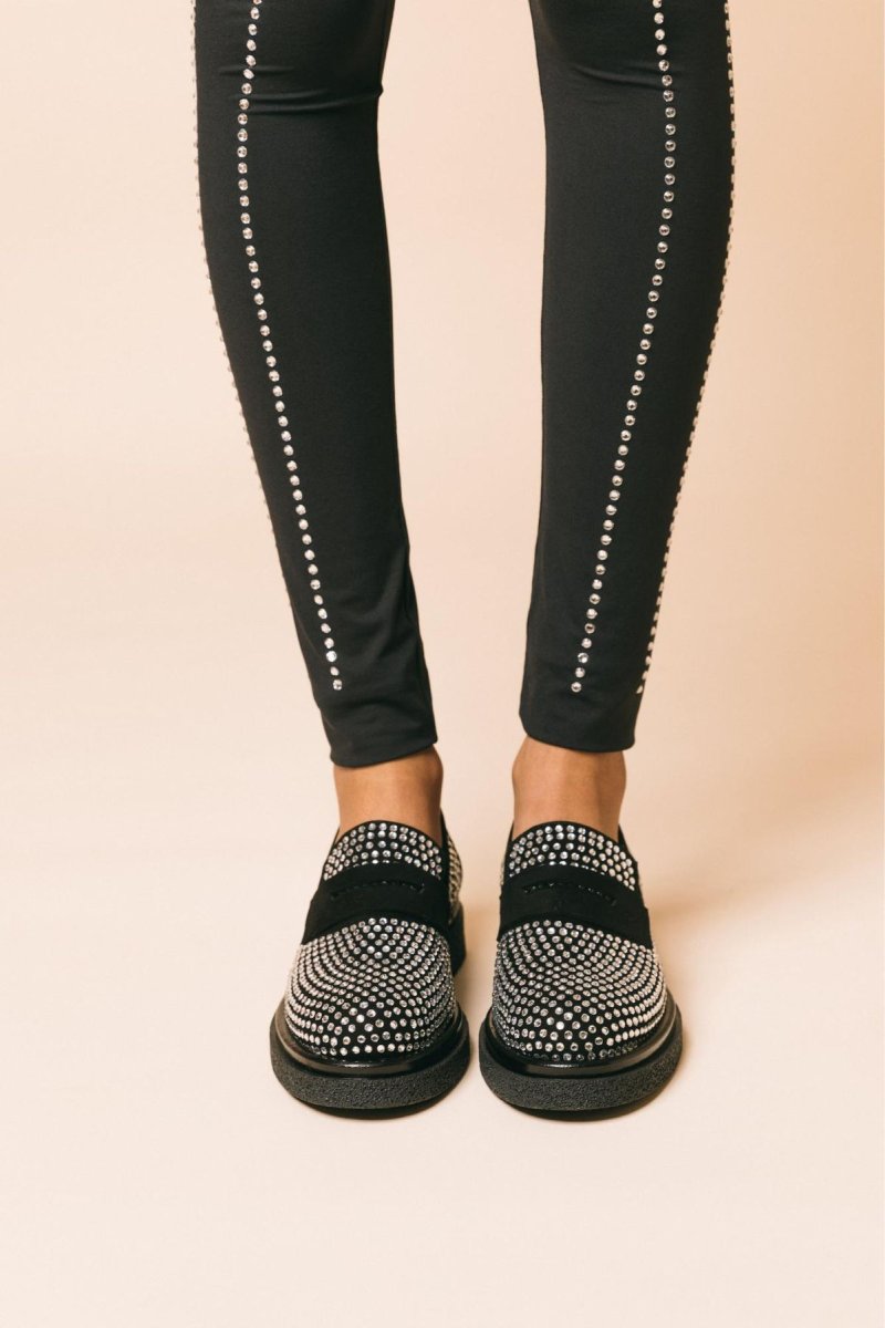 Mocassino in camoscio nero con strass cristallo. Tacco 4 cm