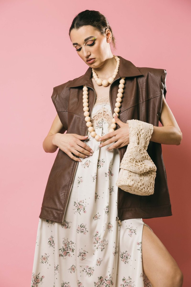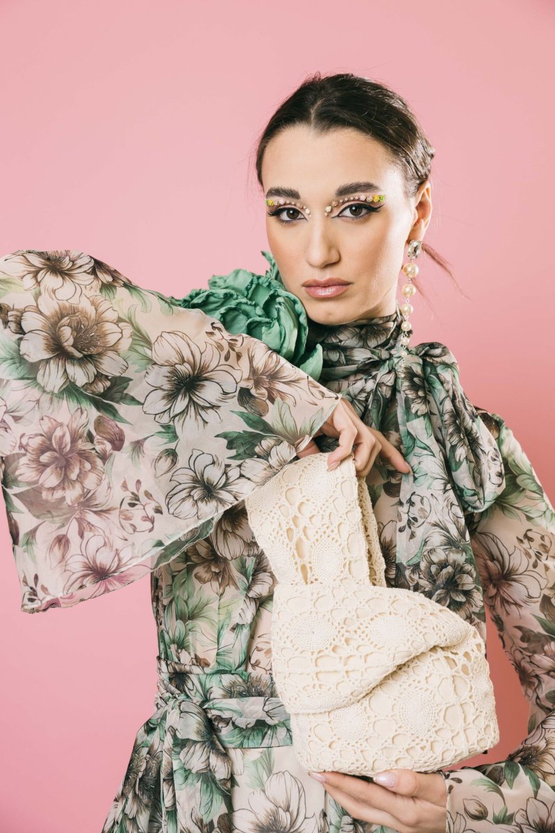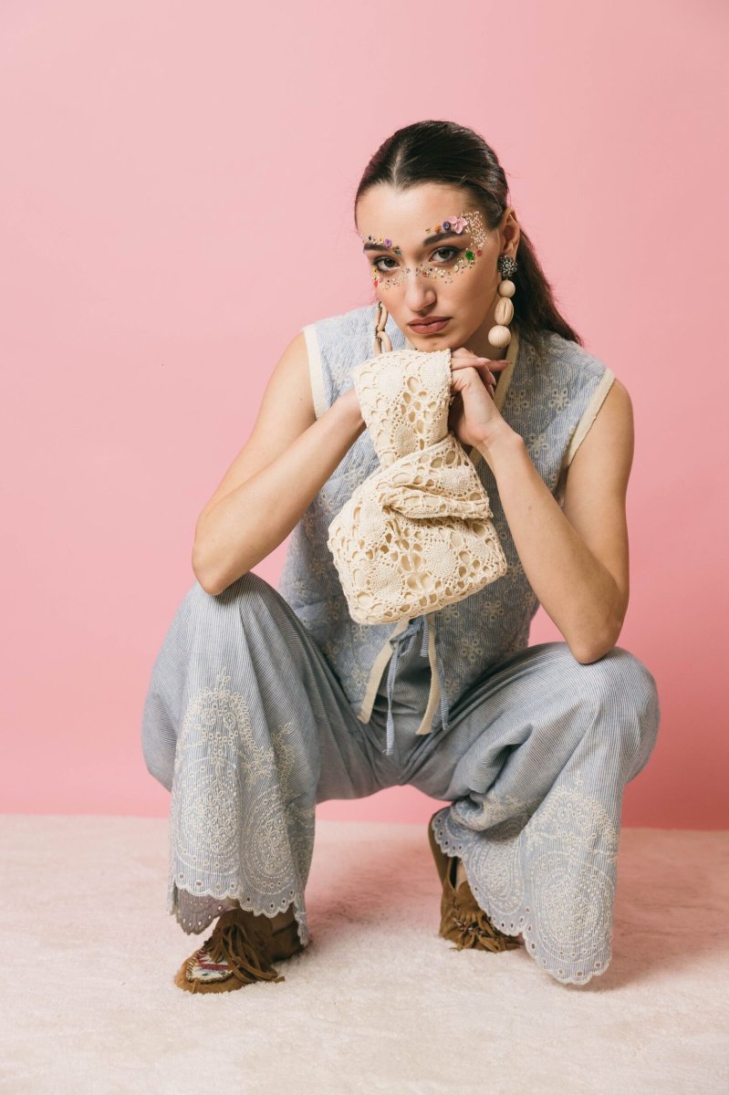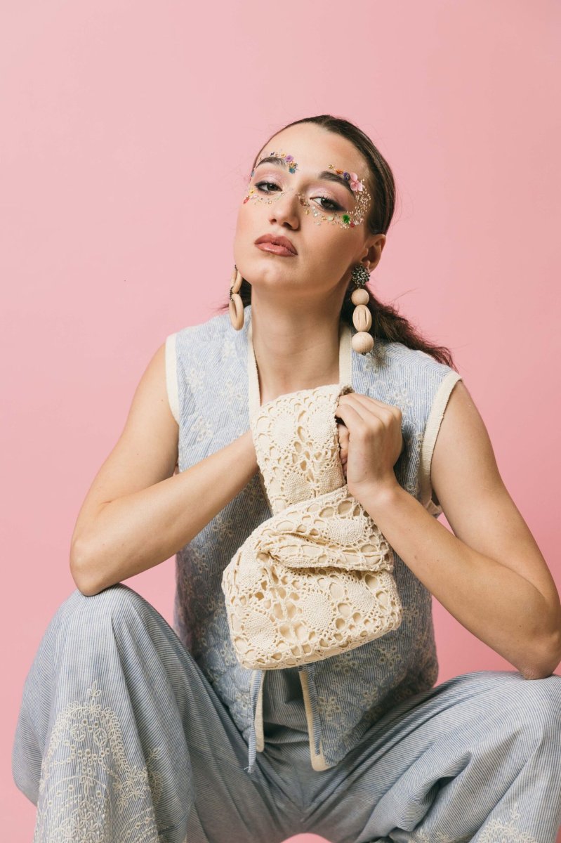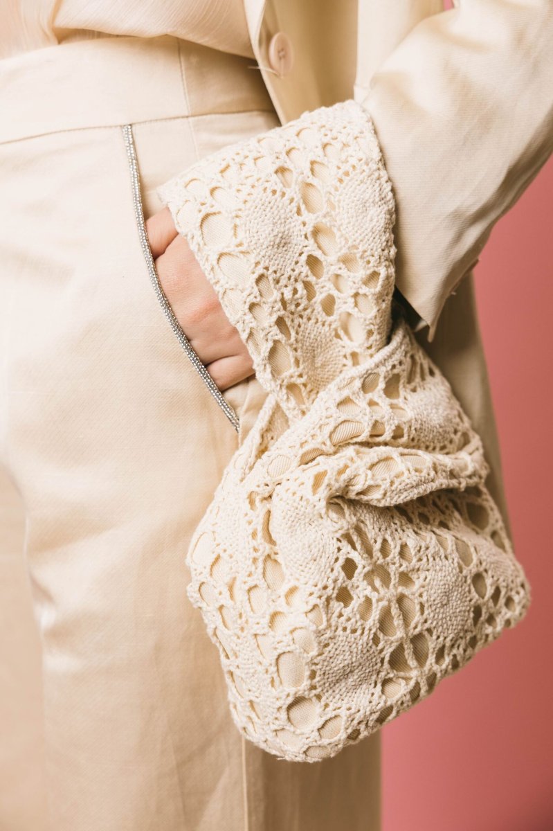 Un’eleganza senza tempo prende vita in questa splendida borsa in pizzo macramé, interamente lavorata a mano. La delicata tonalità crema ne esalta la raffinatezza, rendendola l’accessorio ideale per completare con classe qualsiasi outfit speciale. Dotata di un raffinato manico da infilare al polso, un dettaglio che unisce stile e praticità, permettendo di indossarla con naturale eleganza. Perfetta anche per look più informali, aggiunge un tocco di ricercata leggerezza a ogni occasione. 100% artigianale, esclusivamente Made in Italy.