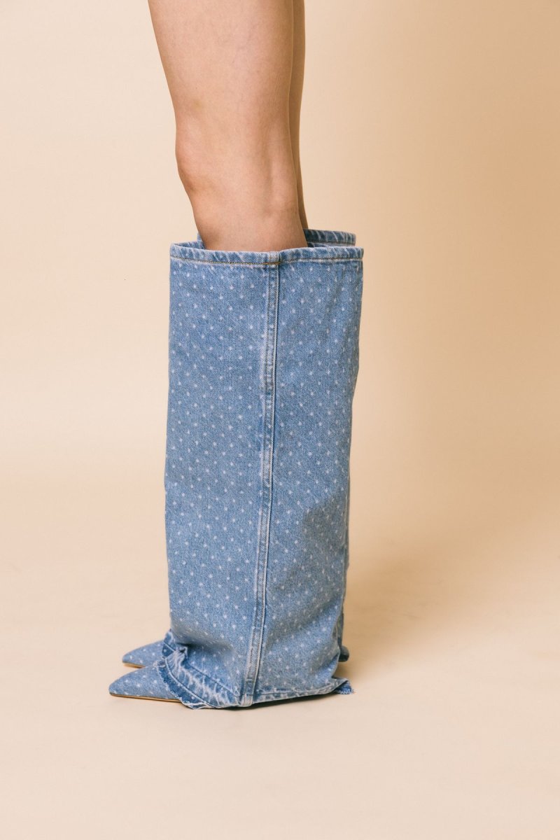 Stivale in denim con gambale alto 50 cm,