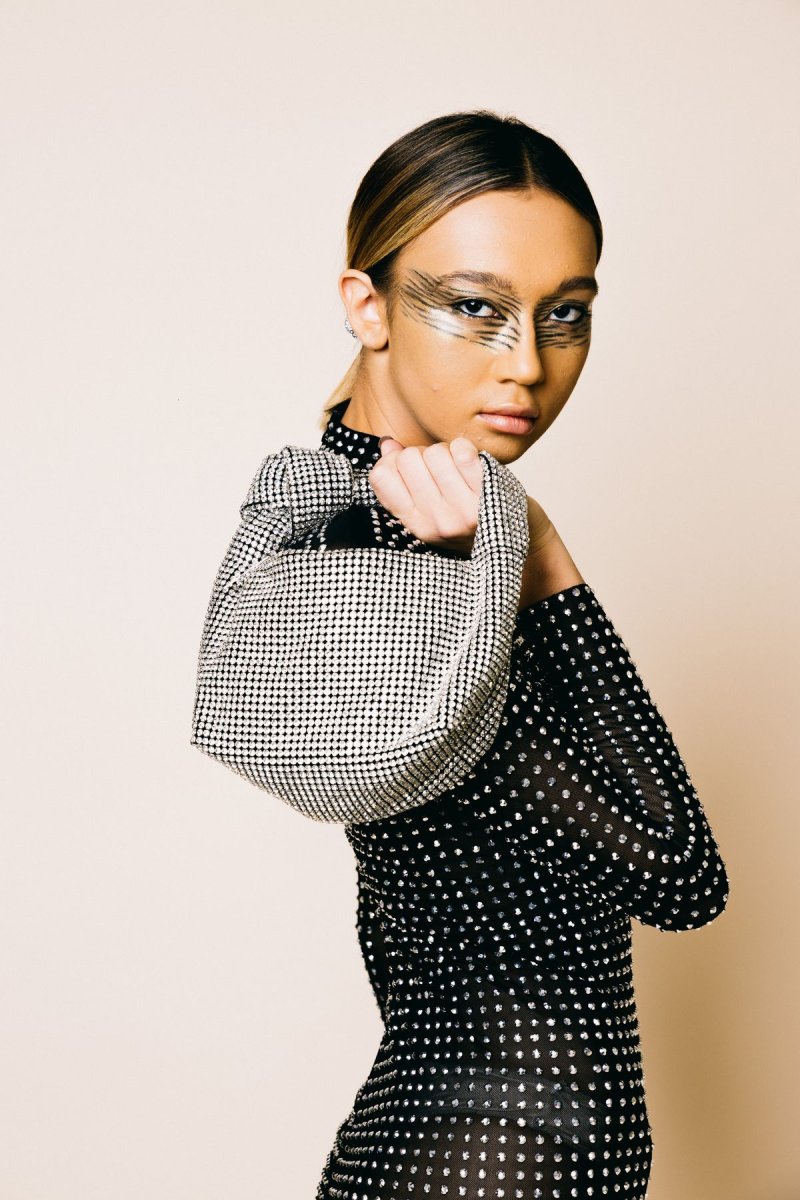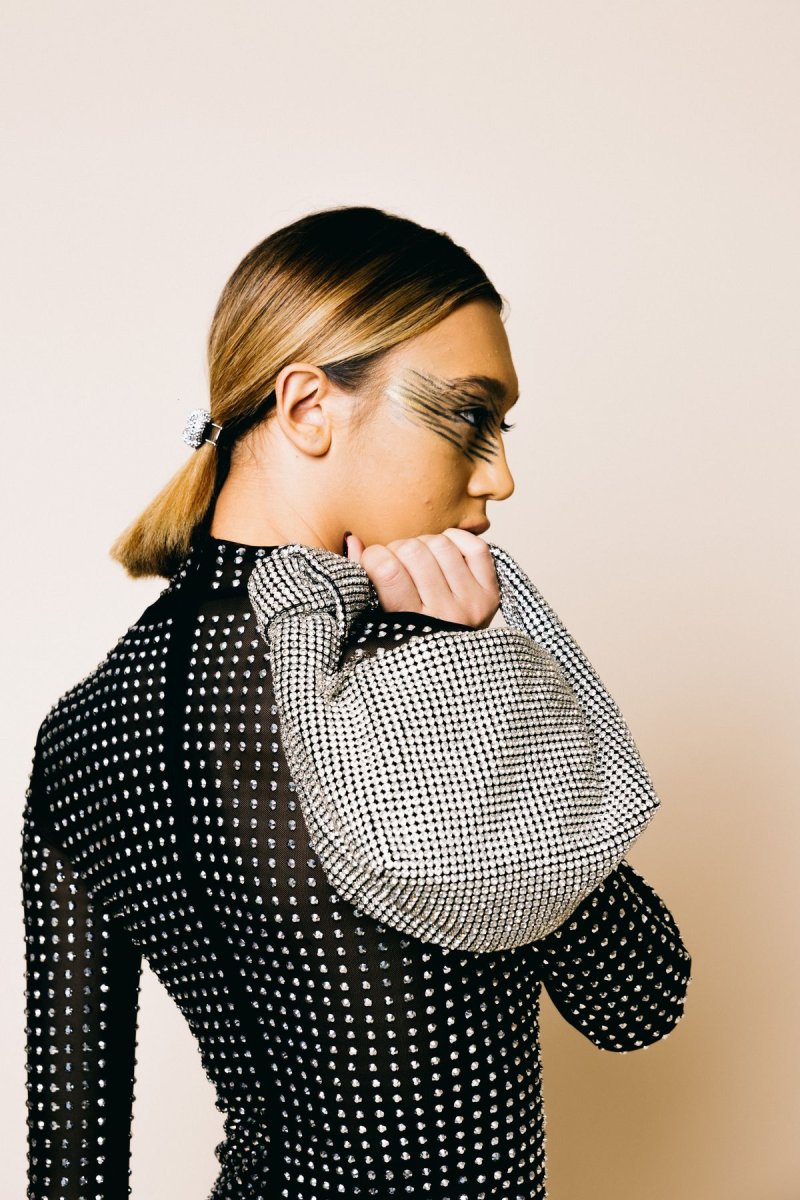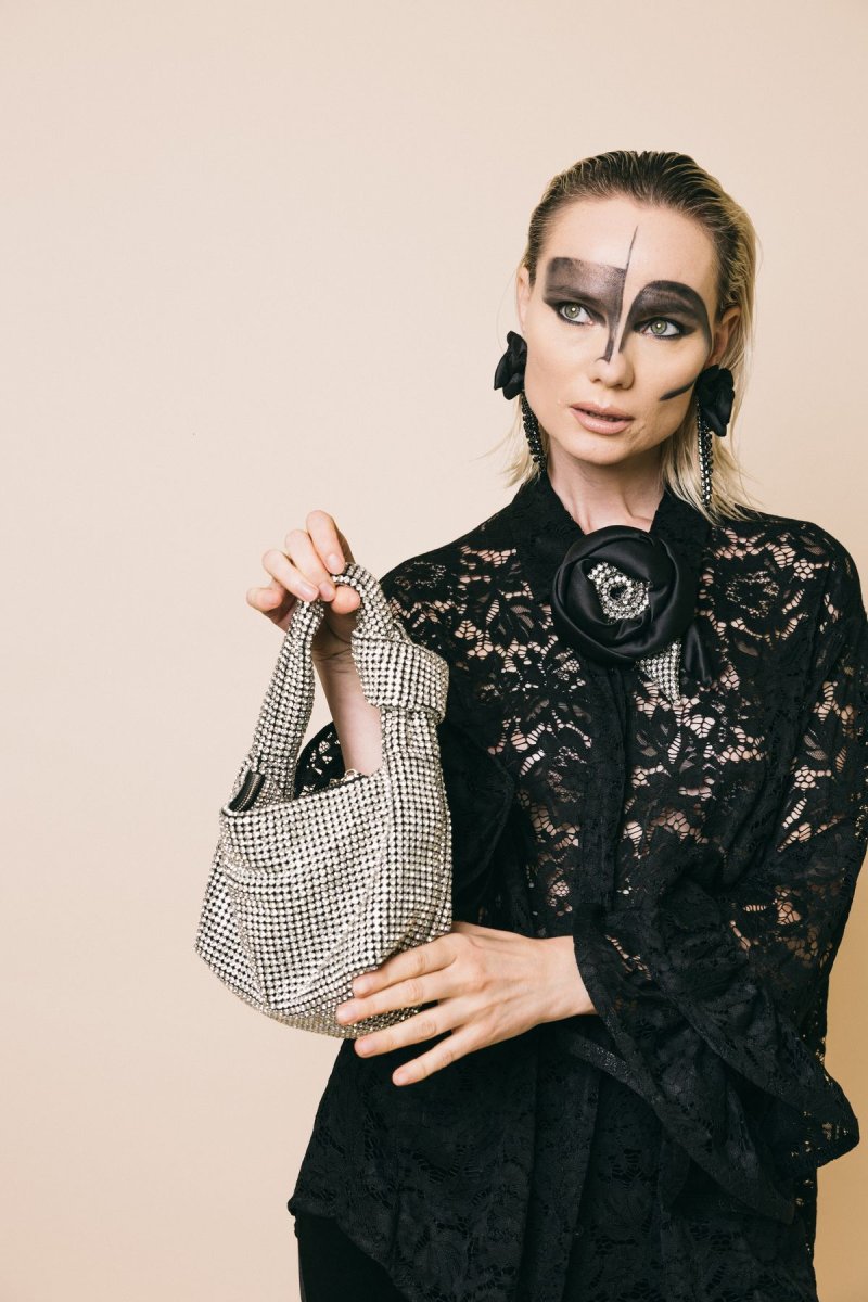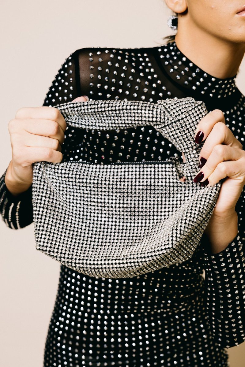 Crystal bag con zip , dettaglio nodo Dimensioni: 28x13x12