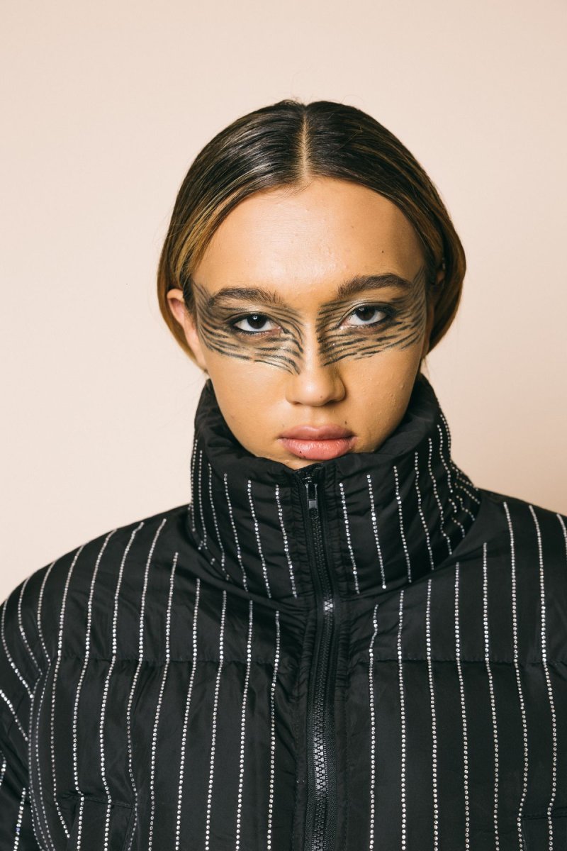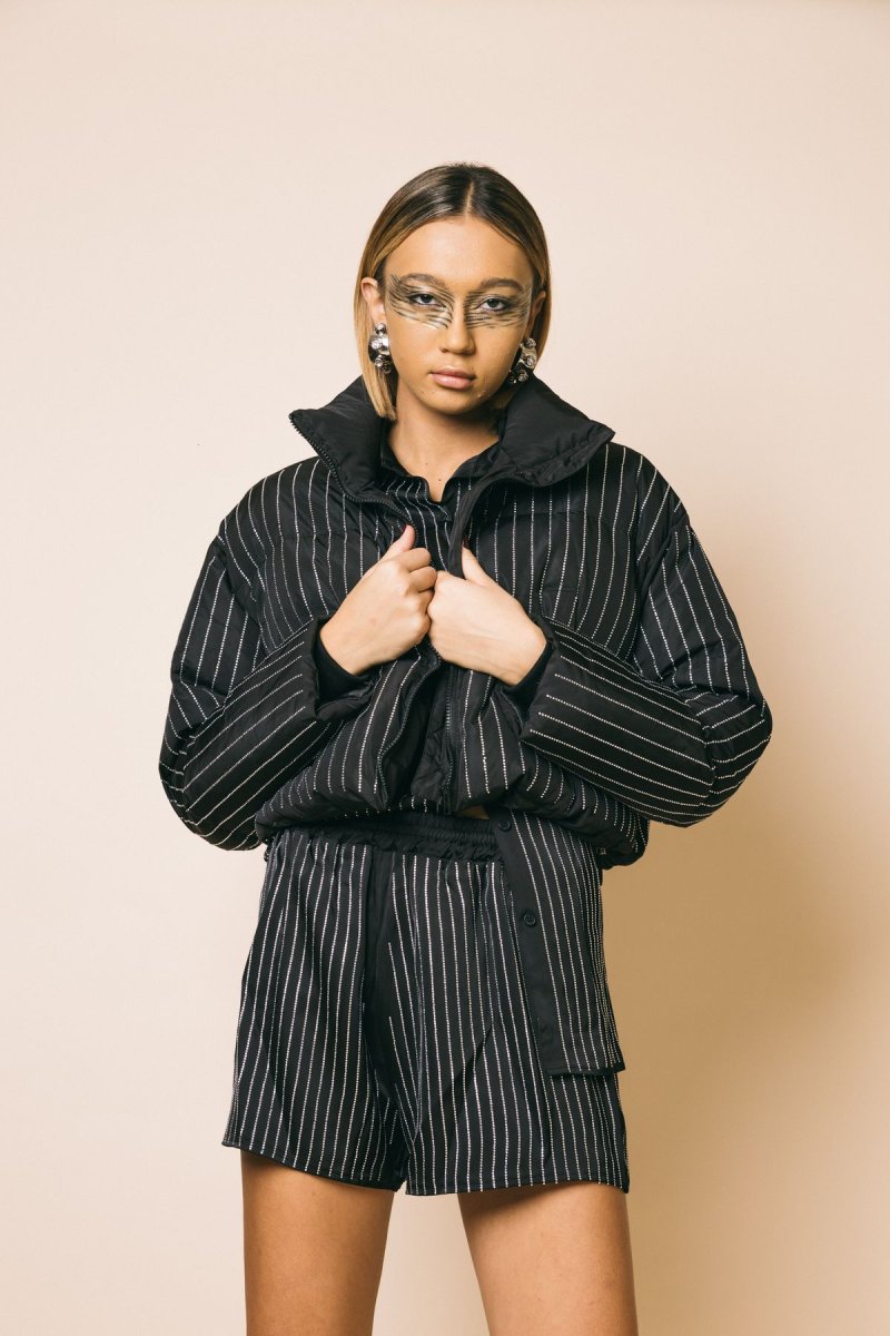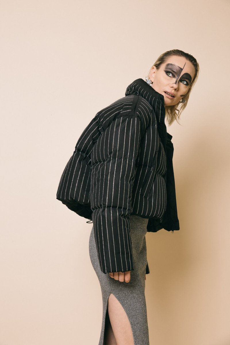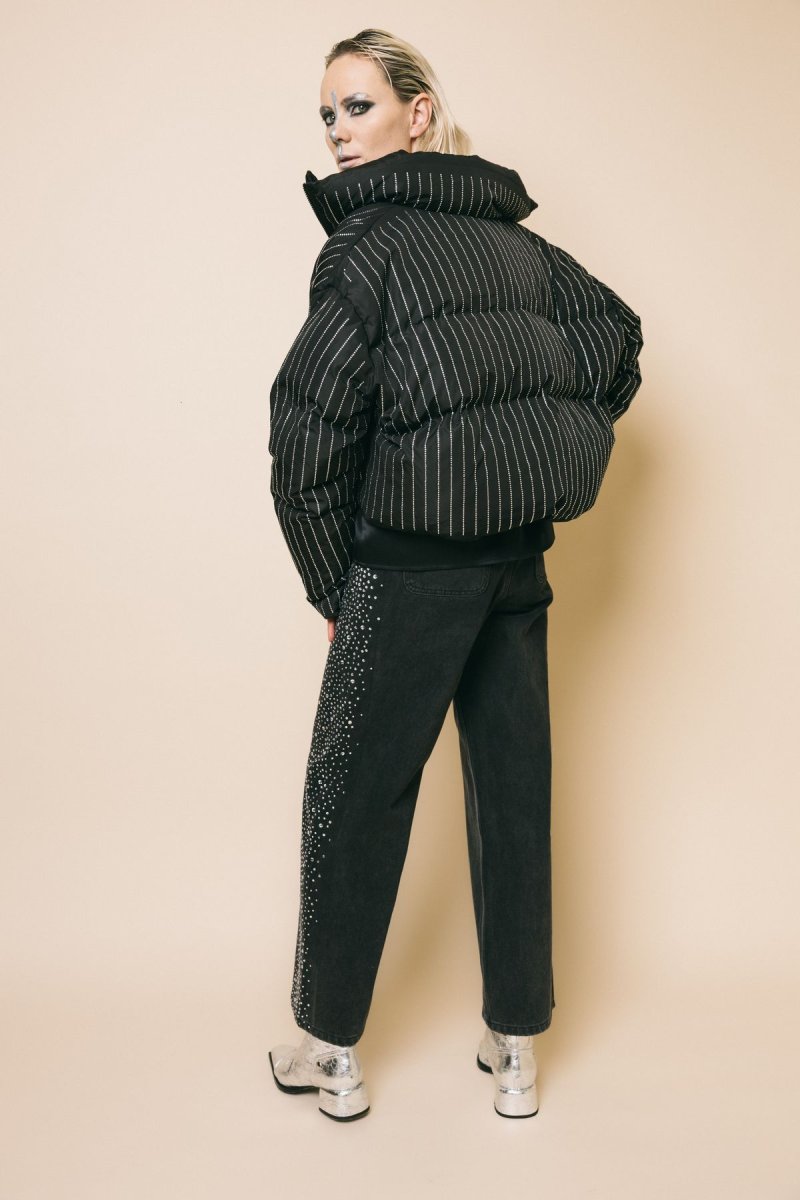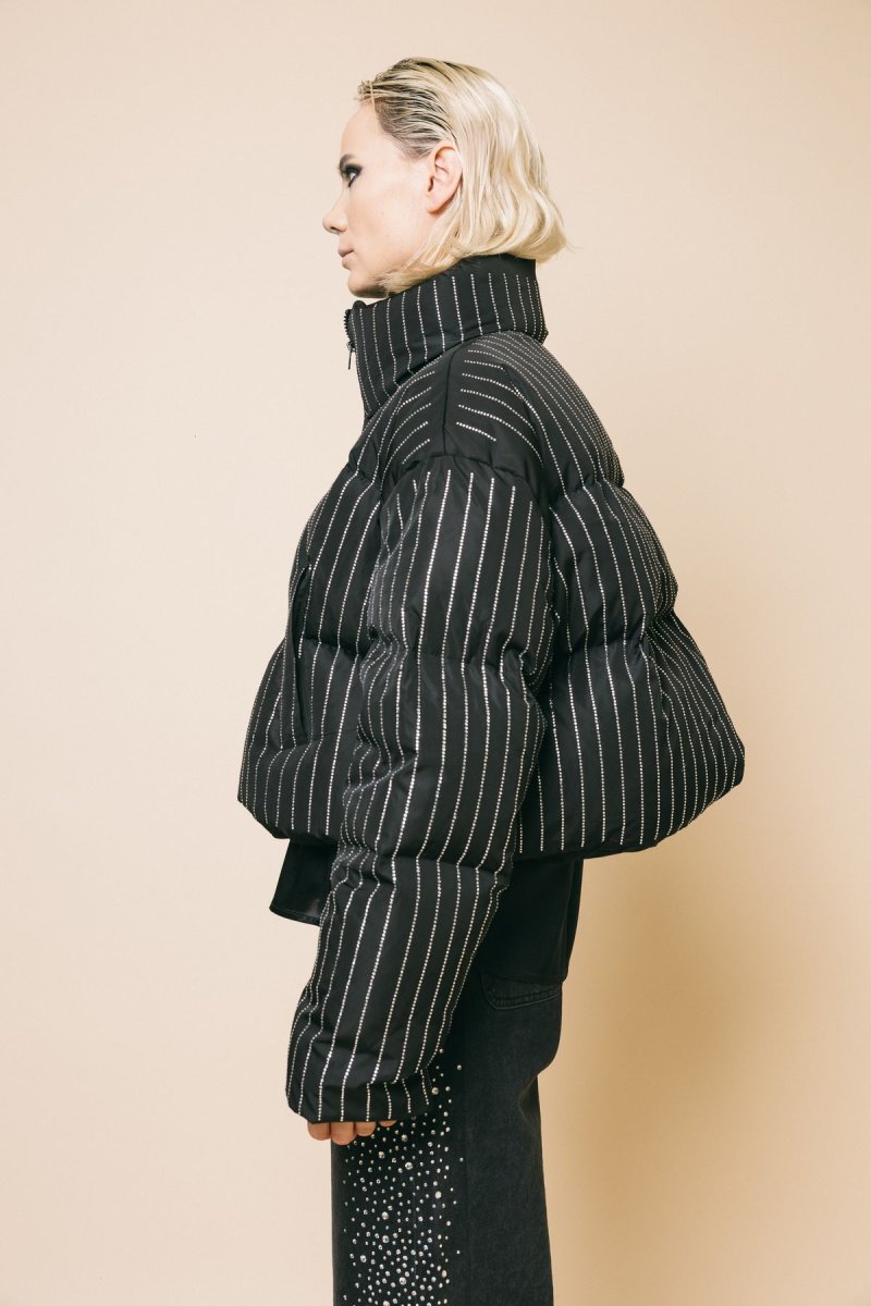 Bomber in piuma d’oca tempestato di cristalli