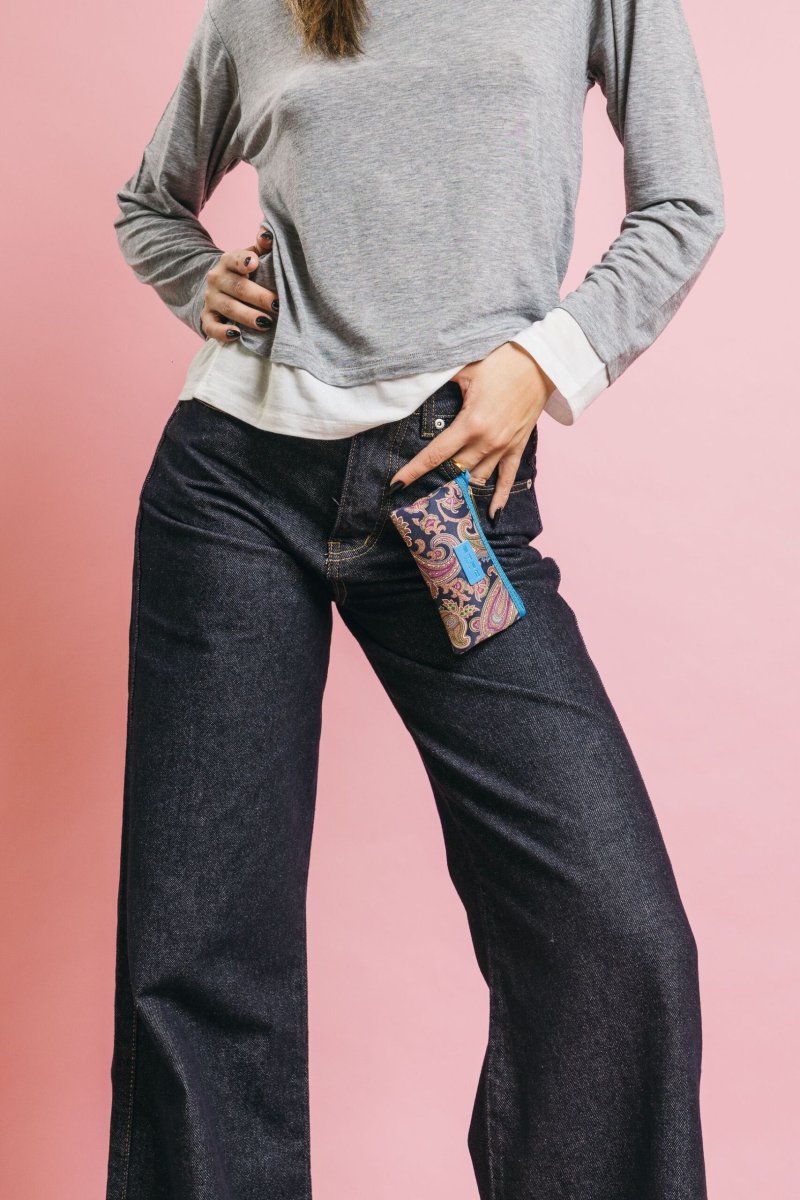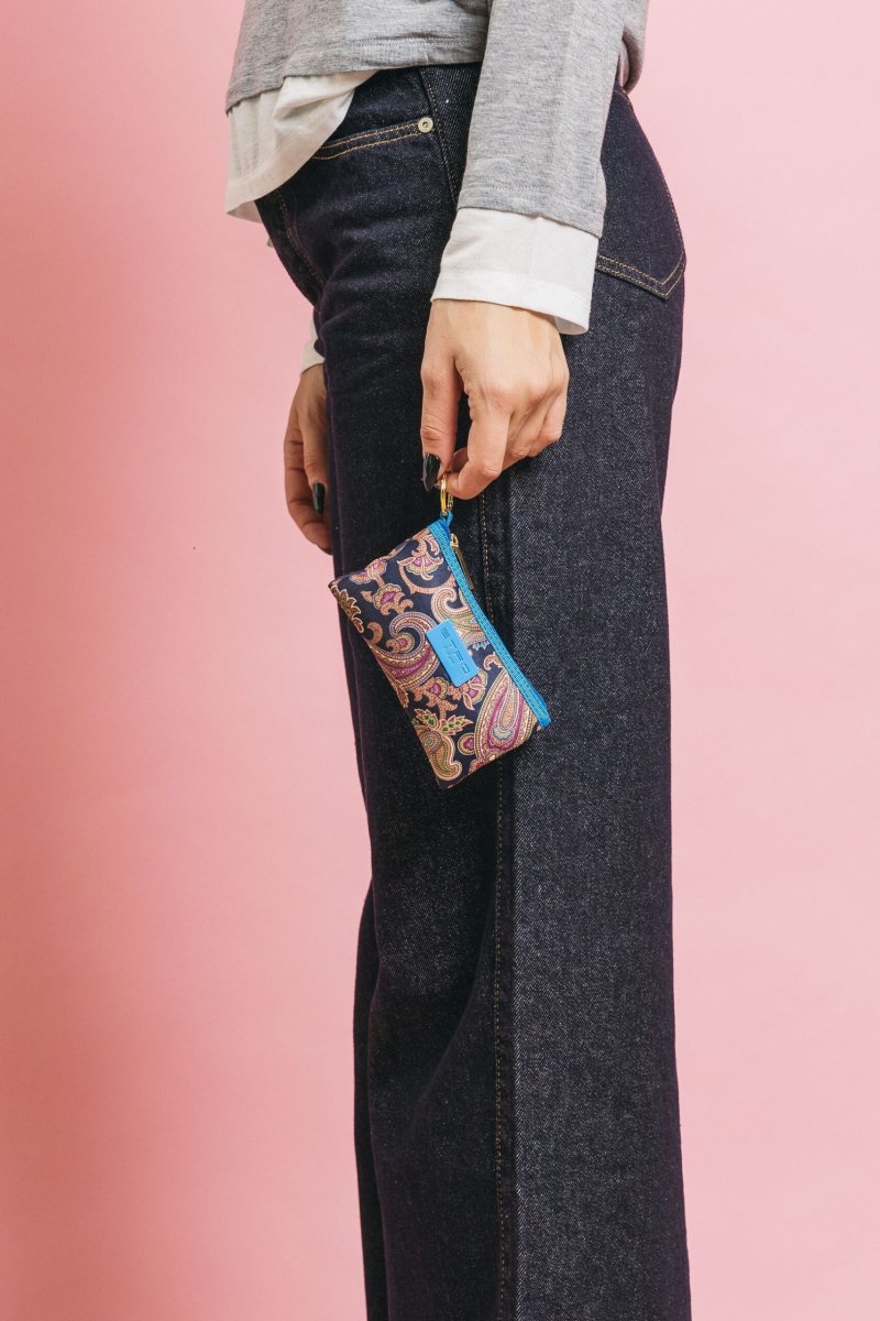 Bustina portachiavi modello rettangolare, stampa paisley chiusura con zip, applicazione logo.