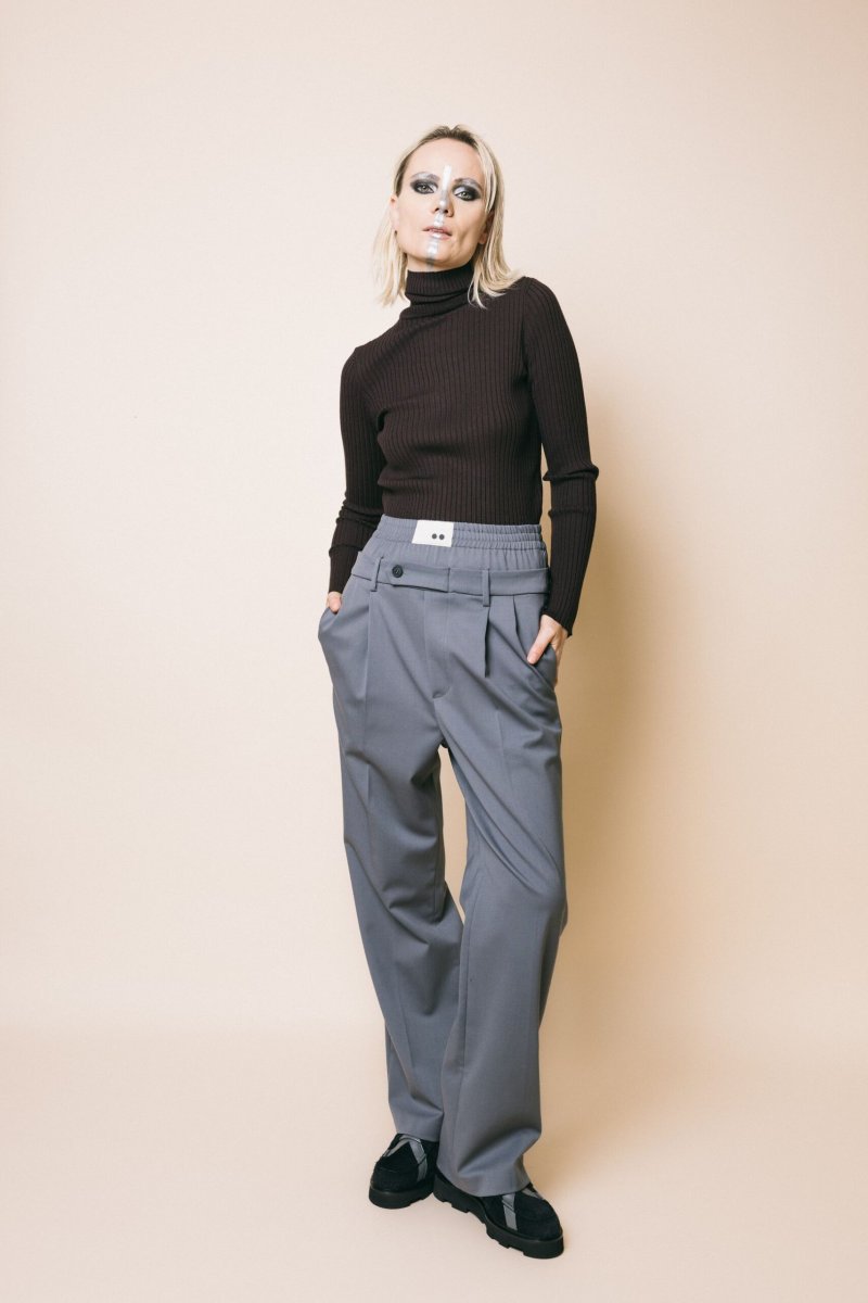 Pantalone a vita media in fresco lana