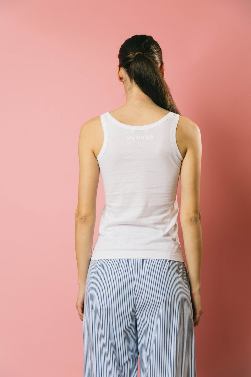 Canotta in cotone organico con vestibilità comoda e morbida. Il logo impresso sul retro tono su tono, aggiunge un dettaglio discreto, rendendo questo capo semplice ma ricercato. Perfetto per uno stile casual e confortevole.