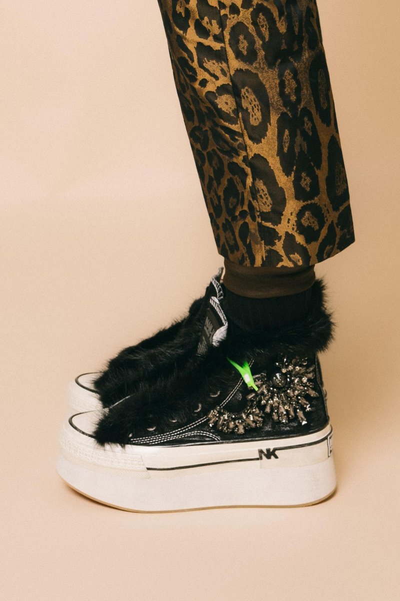 Sneakers alta in tela nera, dettaglio gioiello laterale ,applicazione visione nero sui bordi
