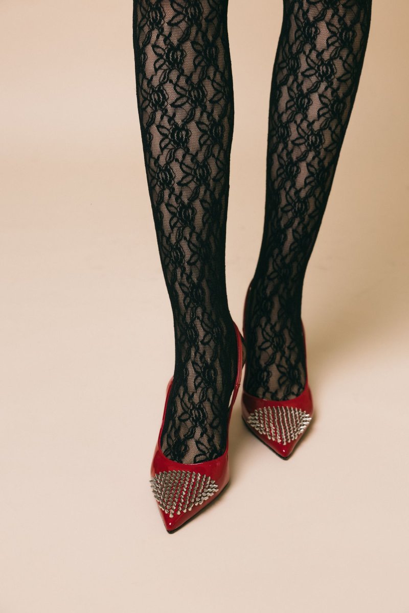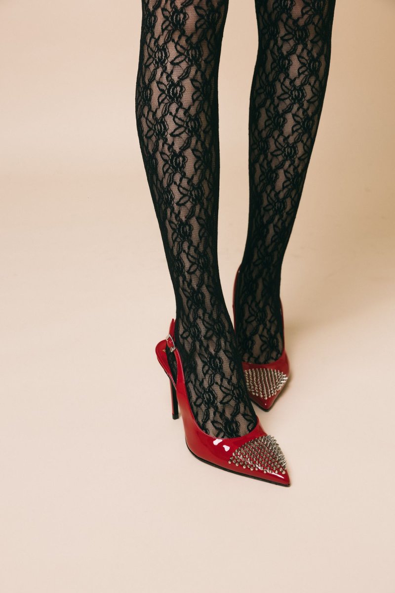 Decollettè modello chanel in vernice rossa con punta micro punzoni silver Tacco a spillo Altezza tacco 10,5 mm Applicazioni micro punzoni Suola in cuoio e gomma Made in Italy
