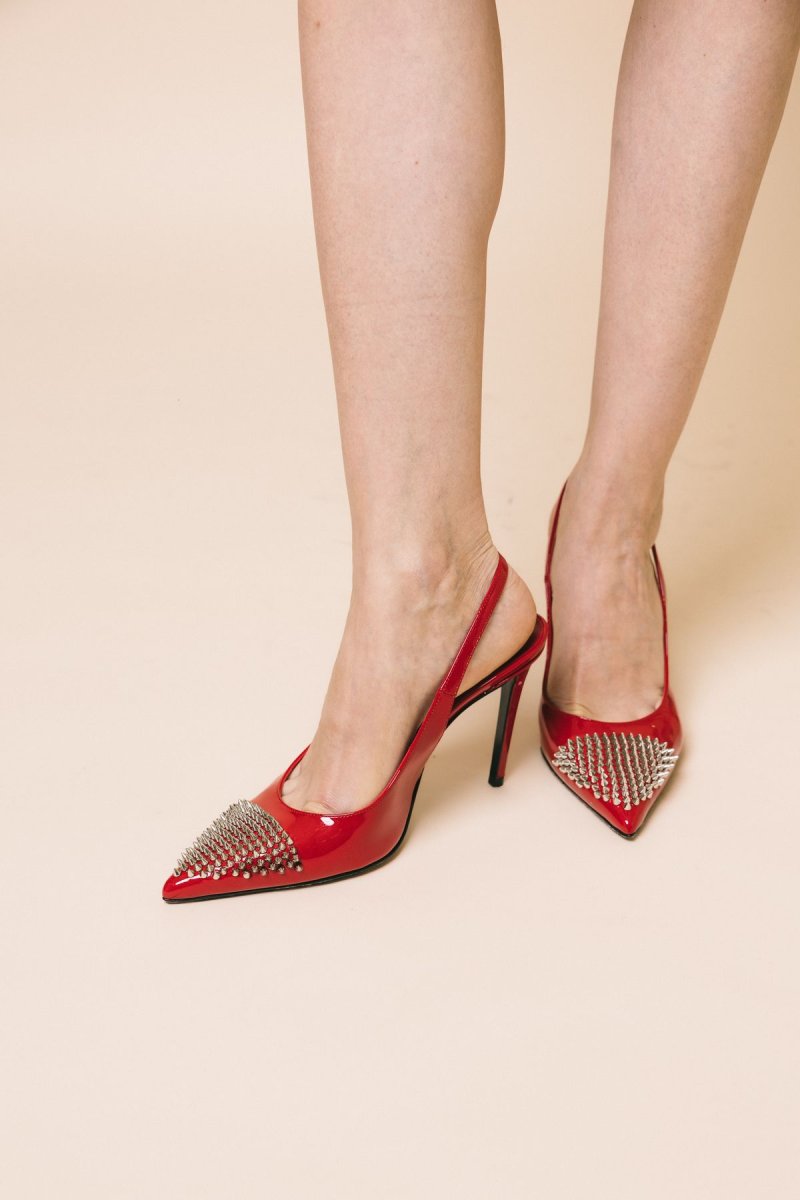 Decollettè modello chanel in vernice rossa con punta micro punzoni silver