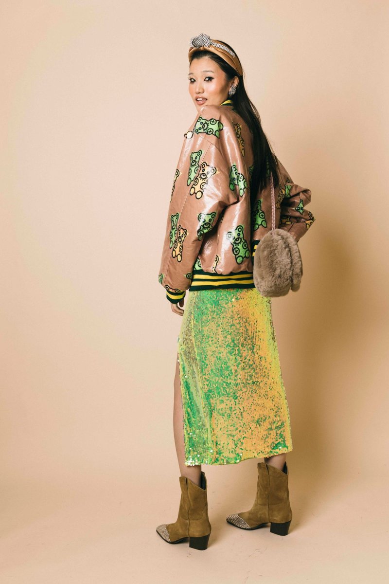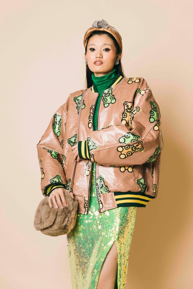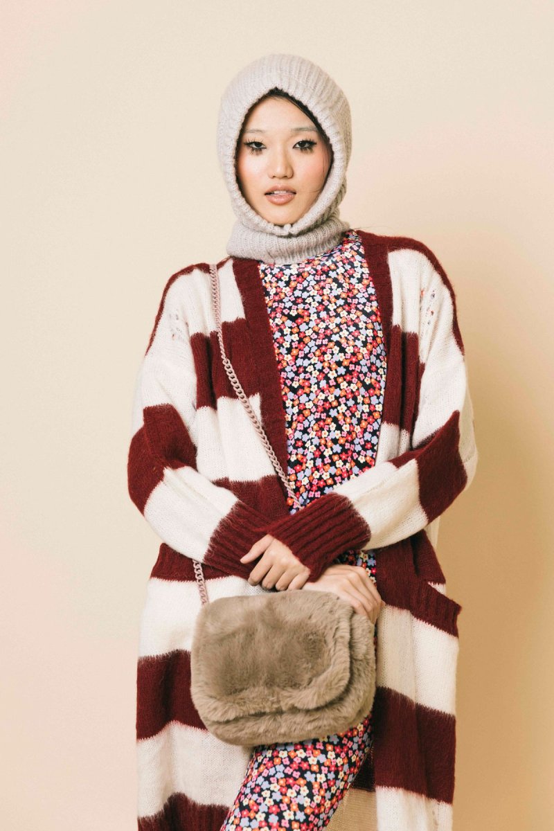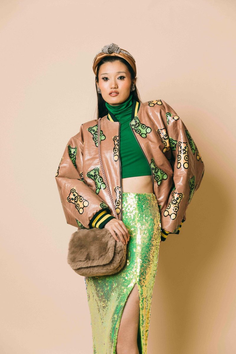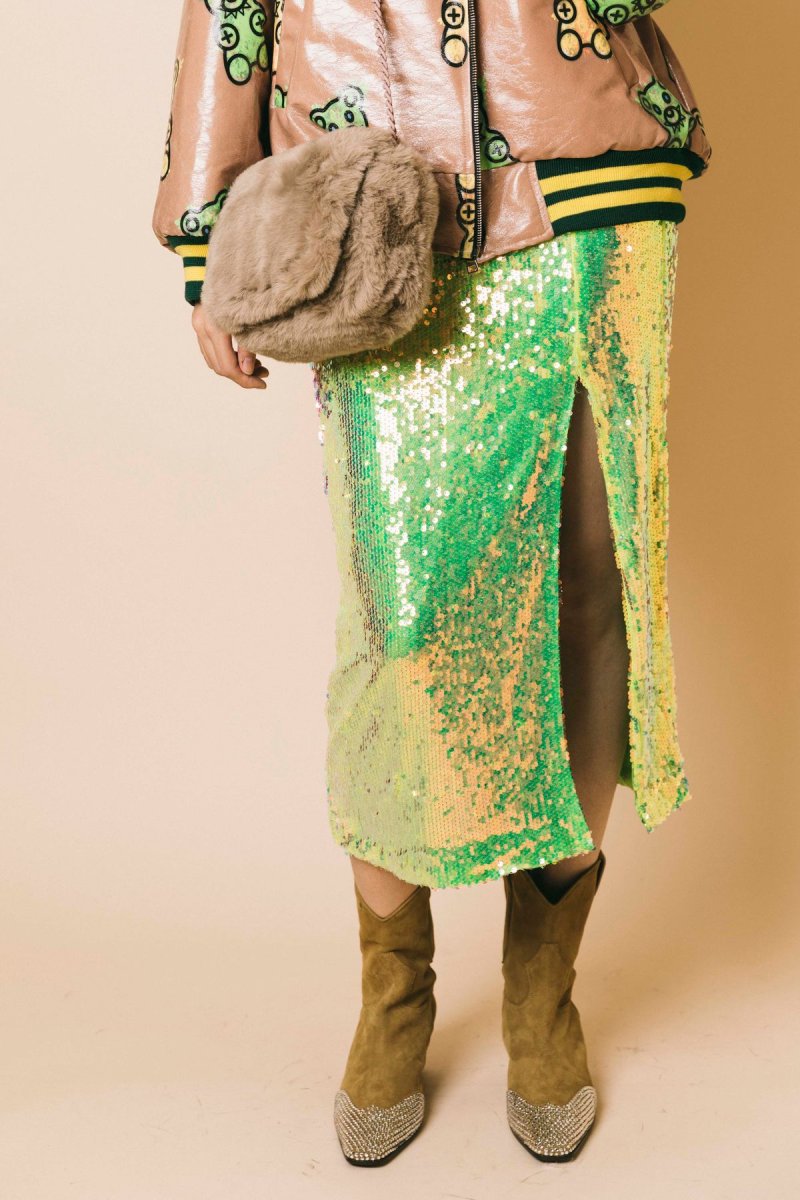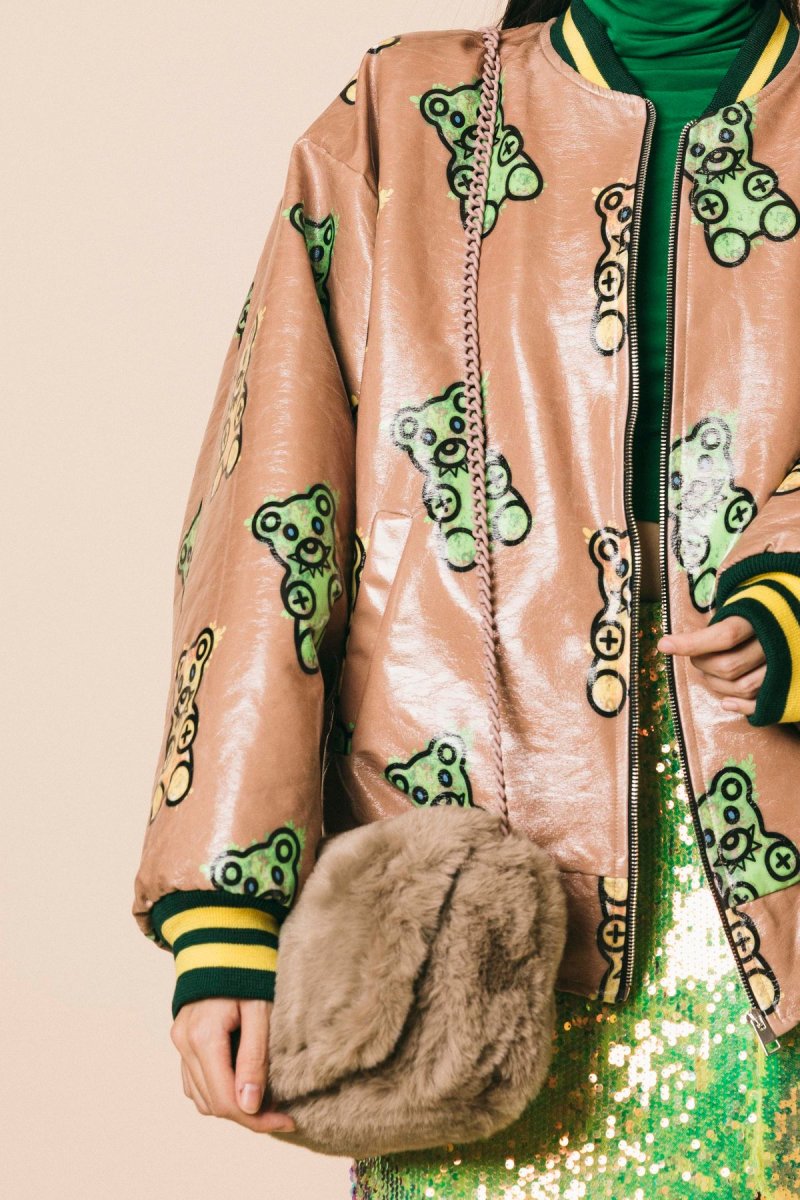 Tracollina in eco pelliccia con patta, tracolla a catena.