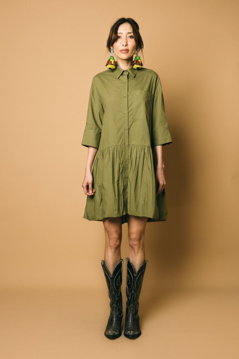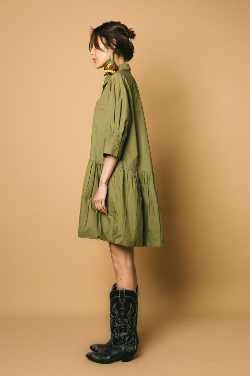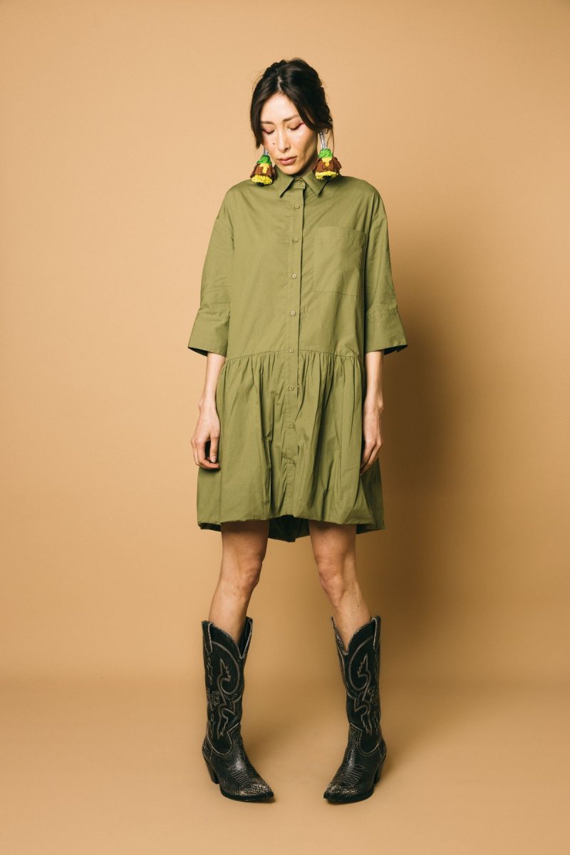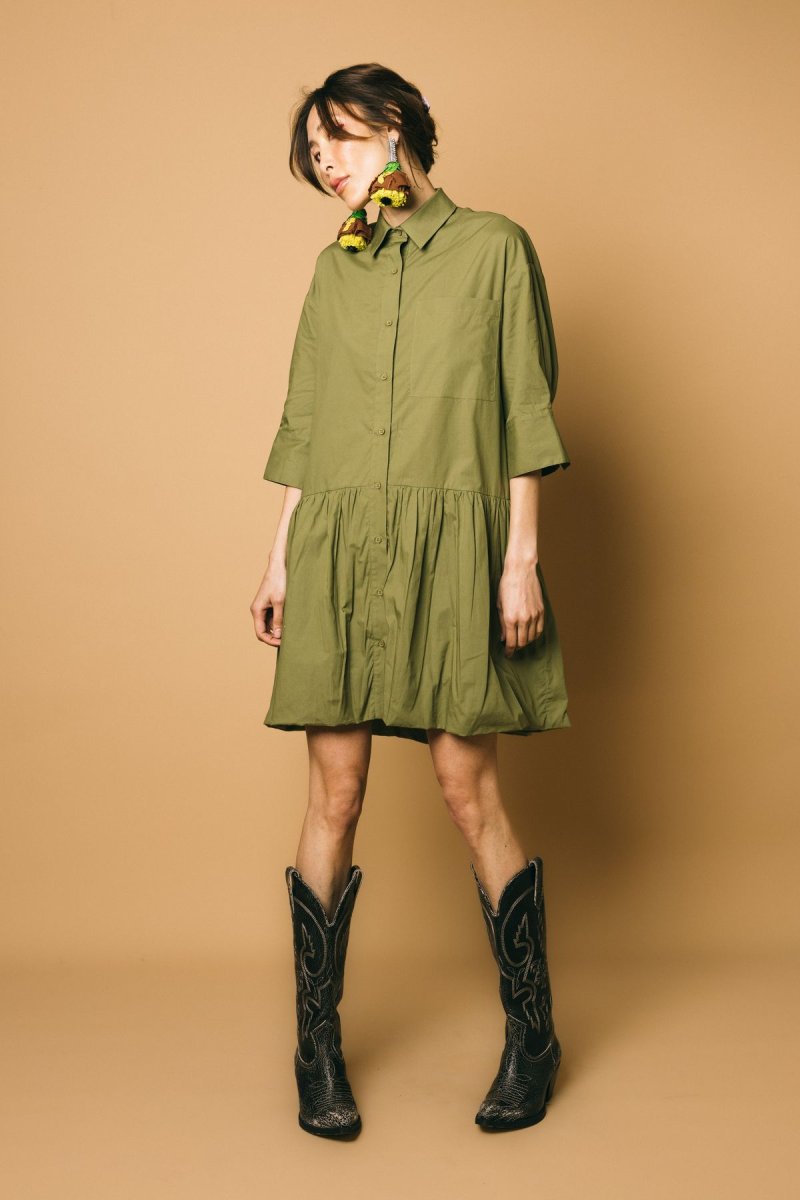 Abito ballon over in cotone, manica a 3/4 con polsino taglio camicia,
