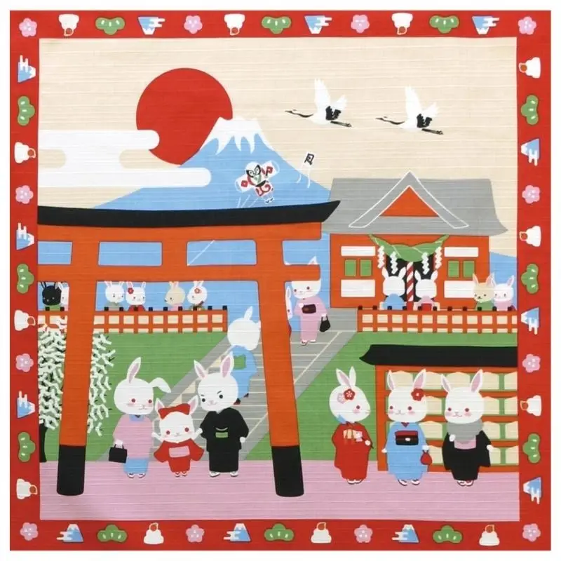 Con la sua stampa di conigli in un ambiente giapponese, questo furoshiki kawaii piacerà sicuramente ai bambini.