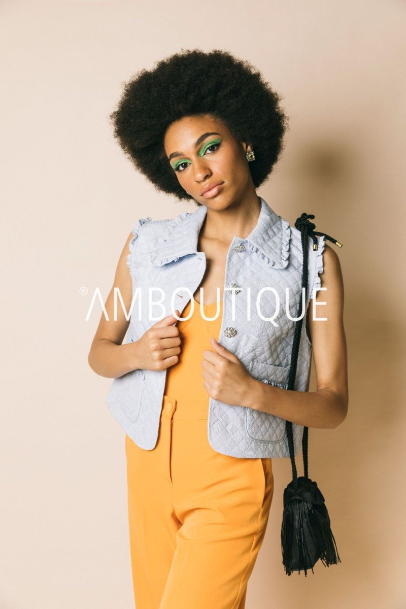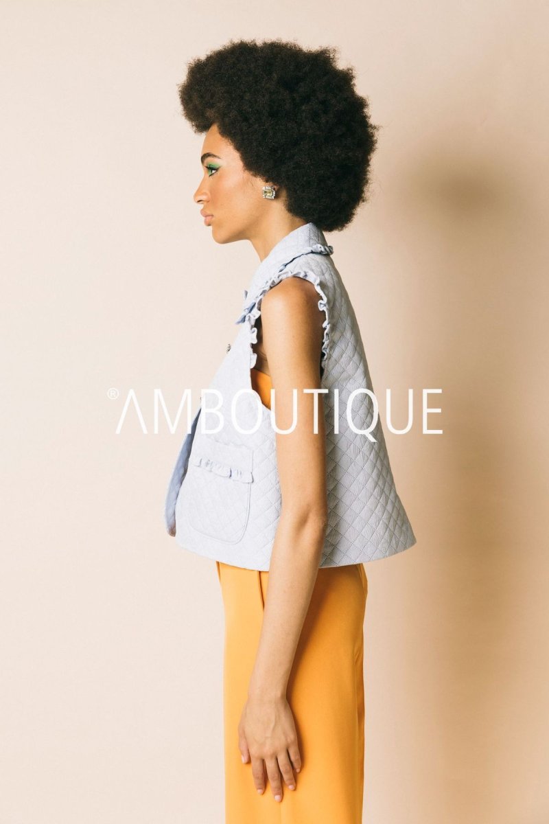 Gilet trapuntato concolletto e tasche micro rouge, bottoni gioiello.