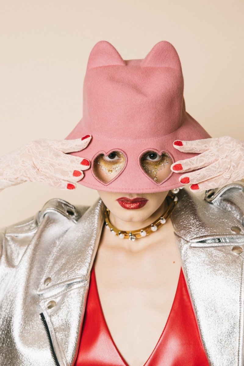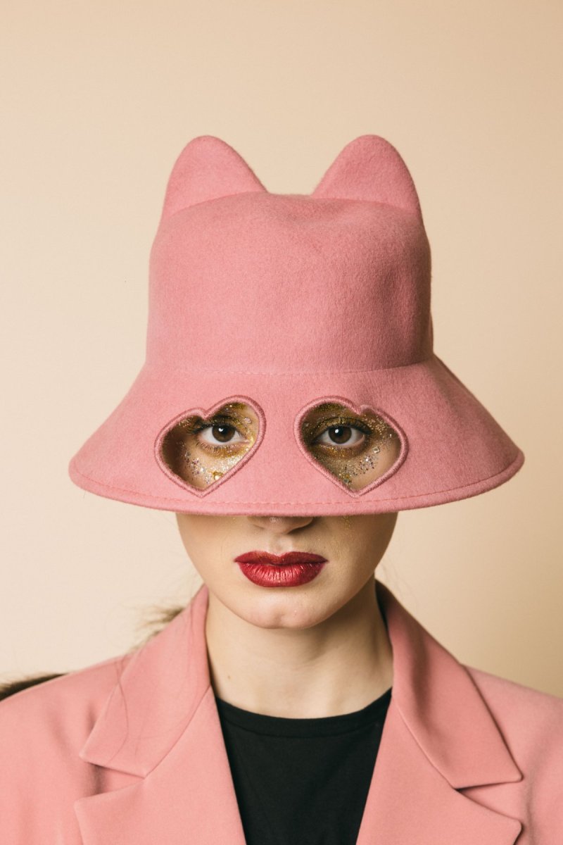 Cappello Gatto feltro in lana, con occhi a forma di cuore.