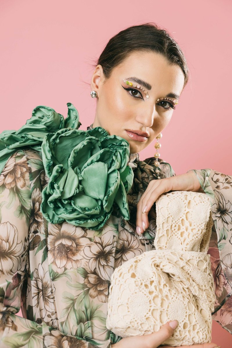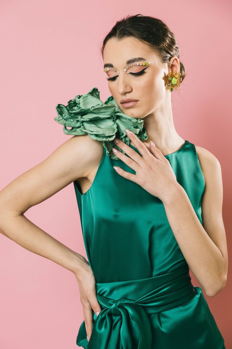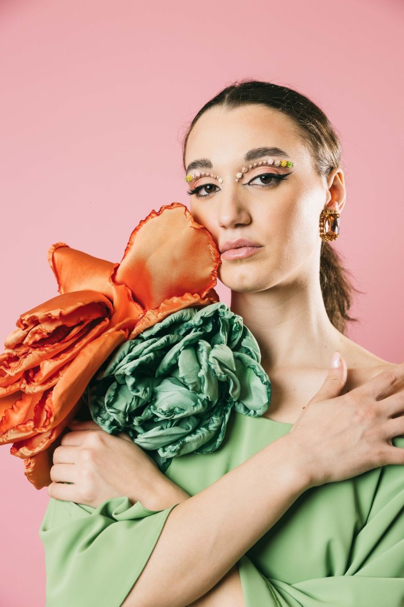 Un fiore in taffetà dalla presenza scenografica, perfetto per aggiungere un tocco di eleganza sofisticata a qualsiasi outfit. Un accessorio che esprime uno stile ricercato e femminile, mai banale. Ideale per chi ama valorizzare ogni dettaglio con personalità e raffinatezza.