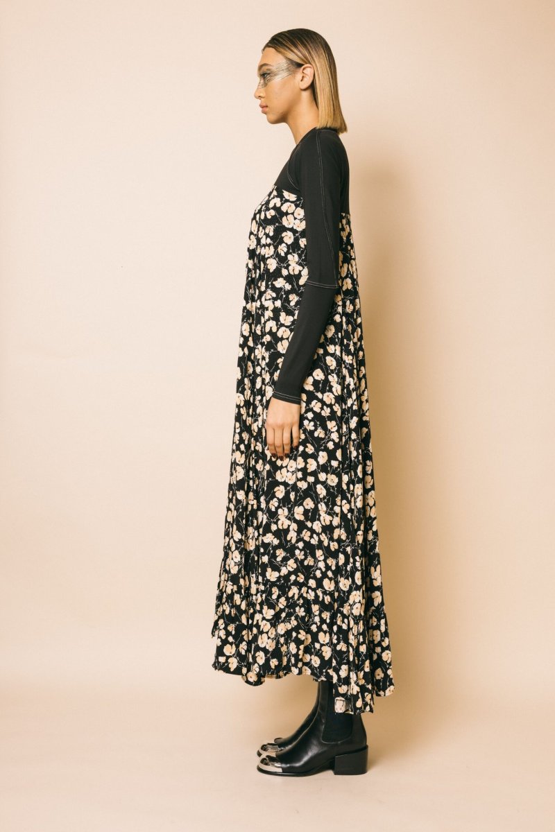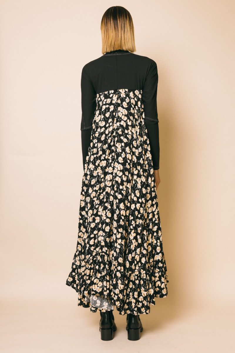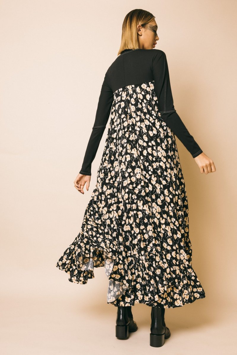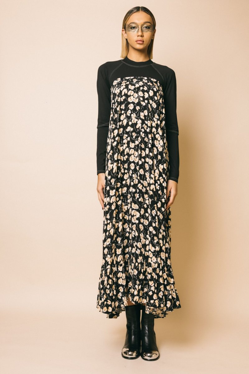 Abito maxi con stampa floreale, top manica lunga in jersey