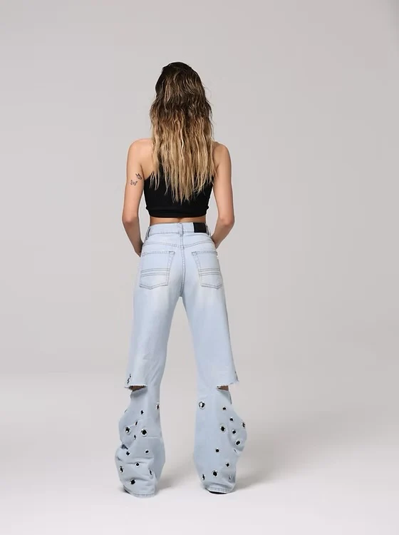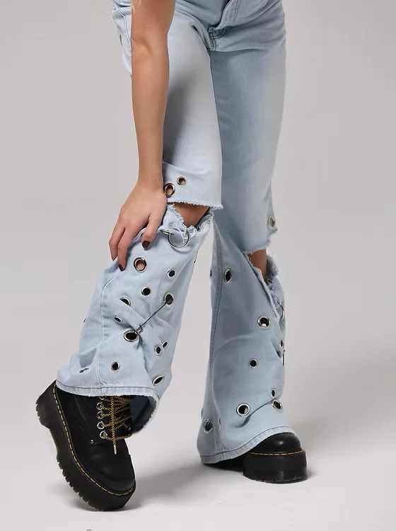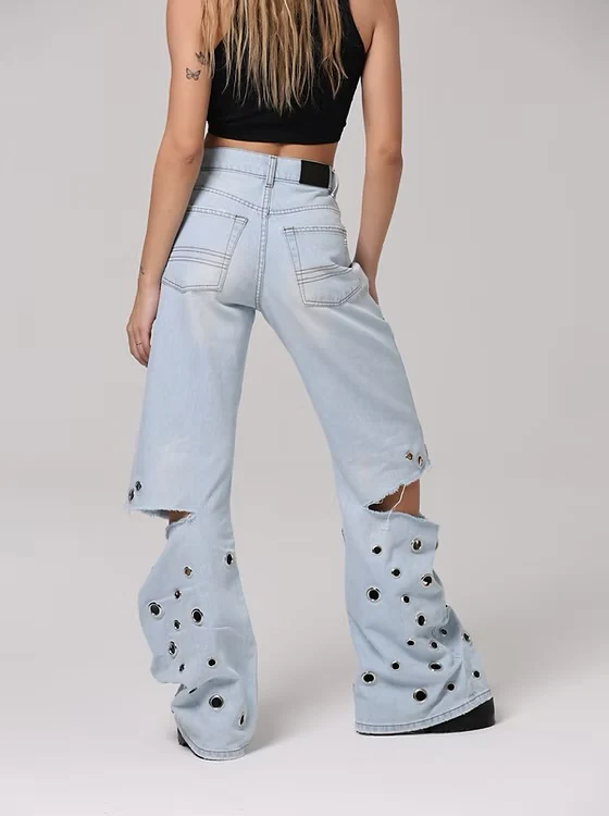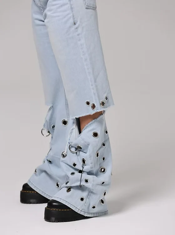Occhielli nella parte bassa del jeans di dimensioni miste.