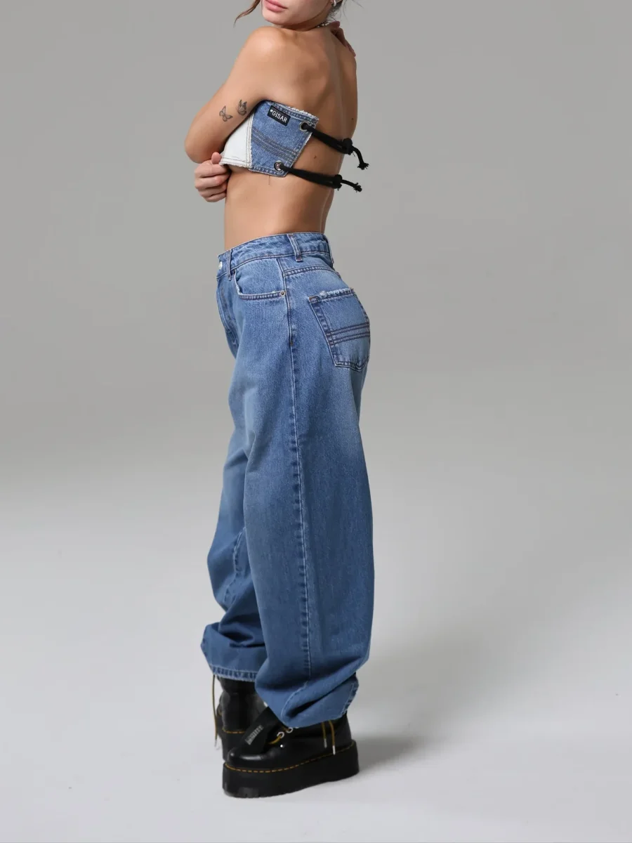 Jeans a vita altissima dal taglio ampio e rilassato che si ispirano allo stile streetwear degli anni ’90. I jeans skater sono un capo chiave per ottenere un look comodo e disinvolto.