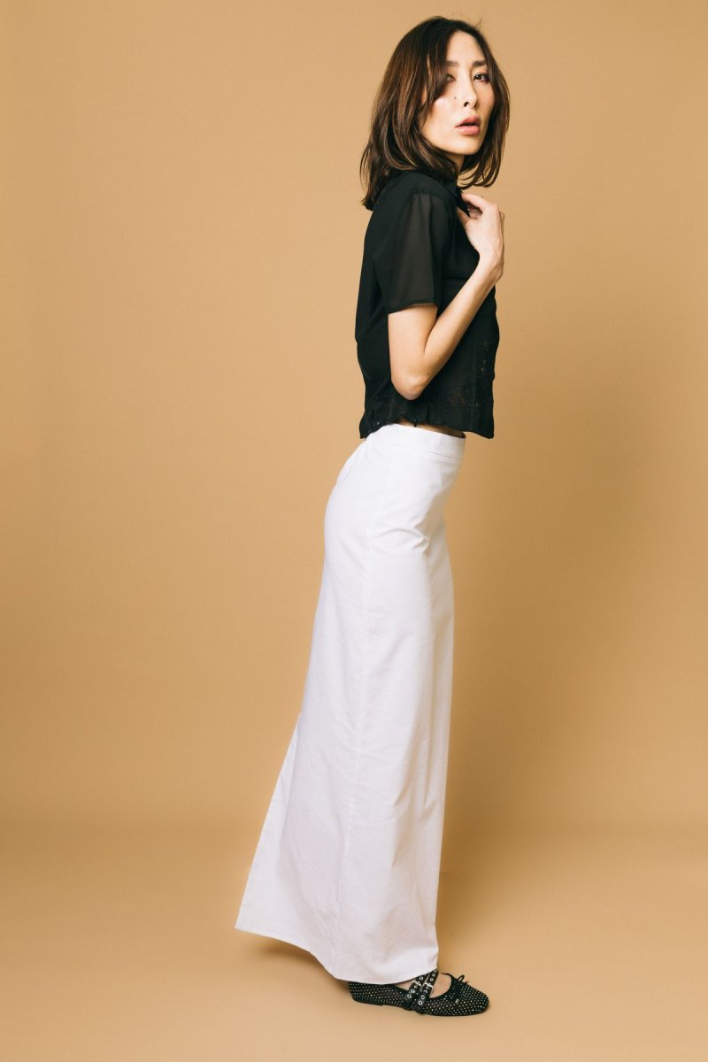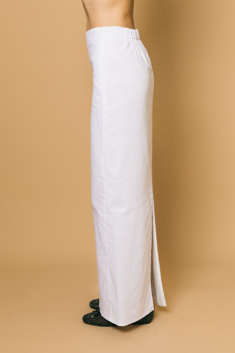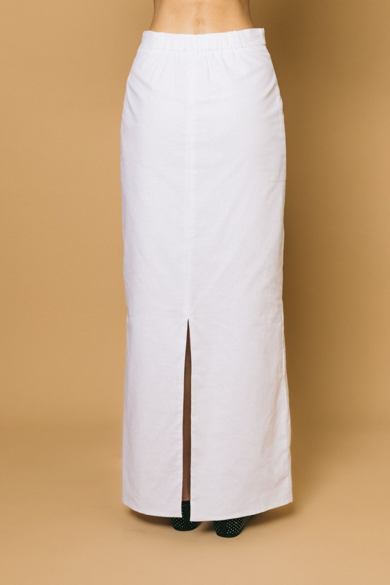 Gonna lunga a matita, vita alta in cotone e lino con elastico in vita, spacco posteriore
