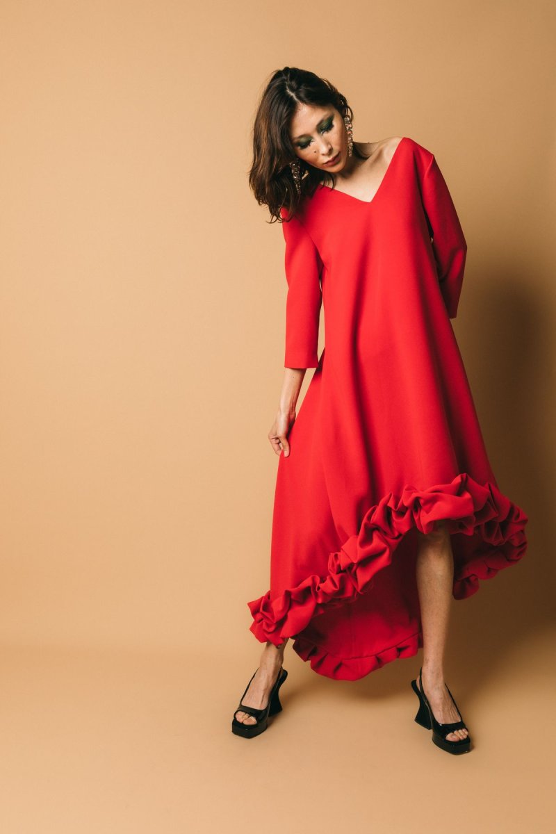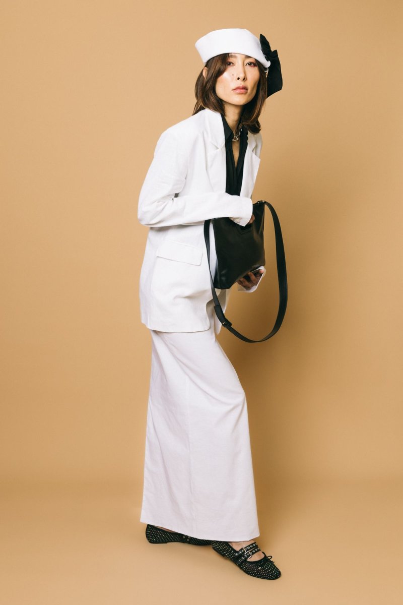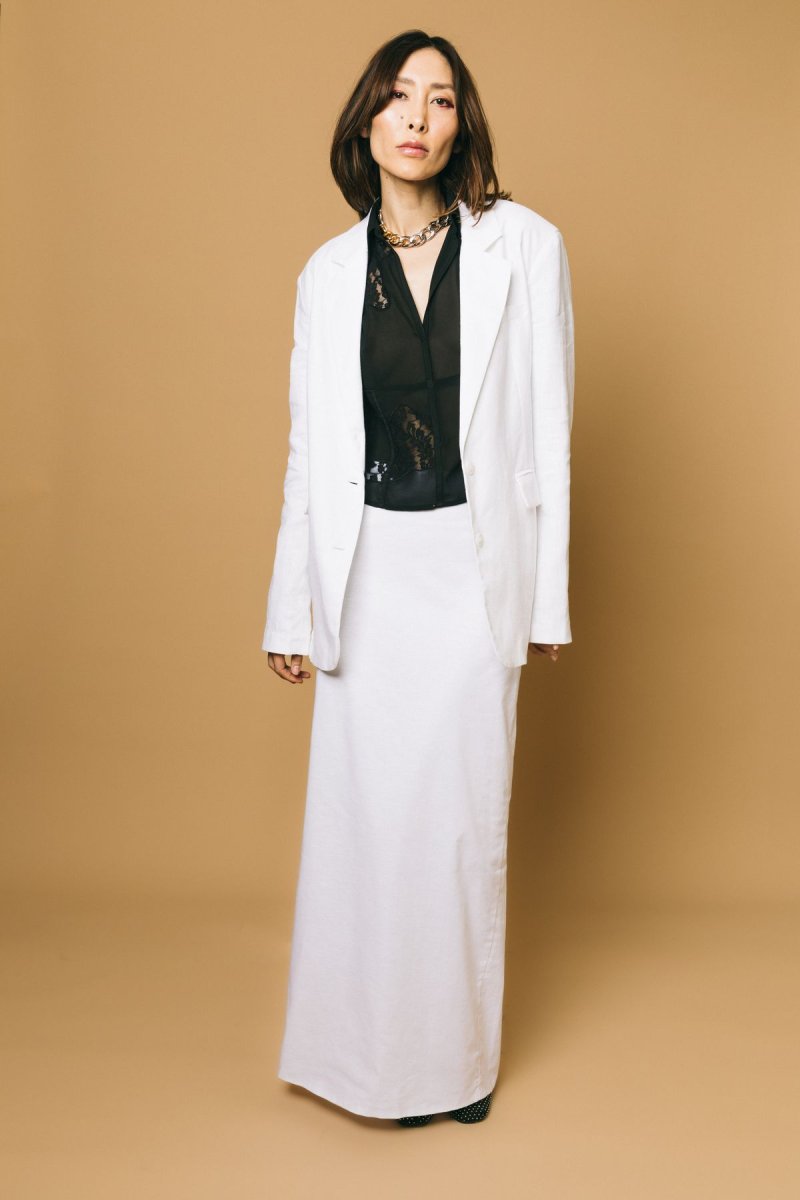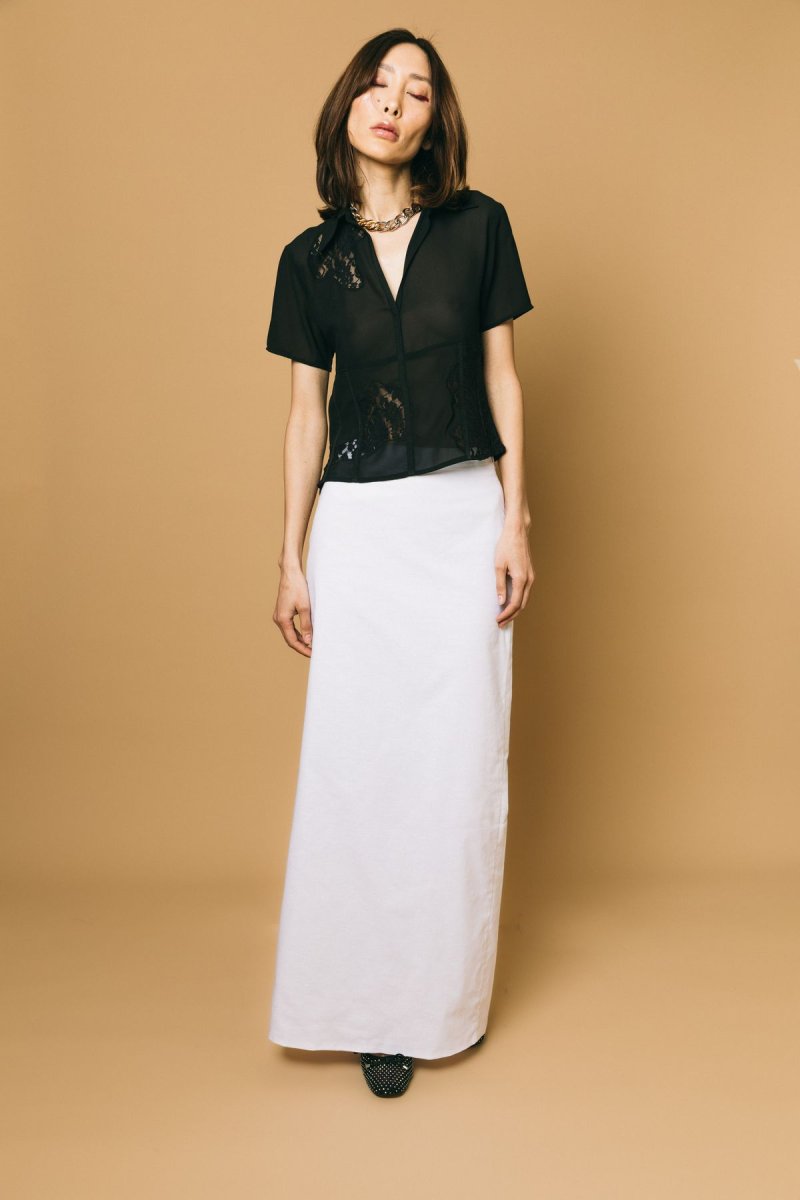 Gonna lunga a matita, vita alta in cotone e lino con elastico in vita, spacco posteriore