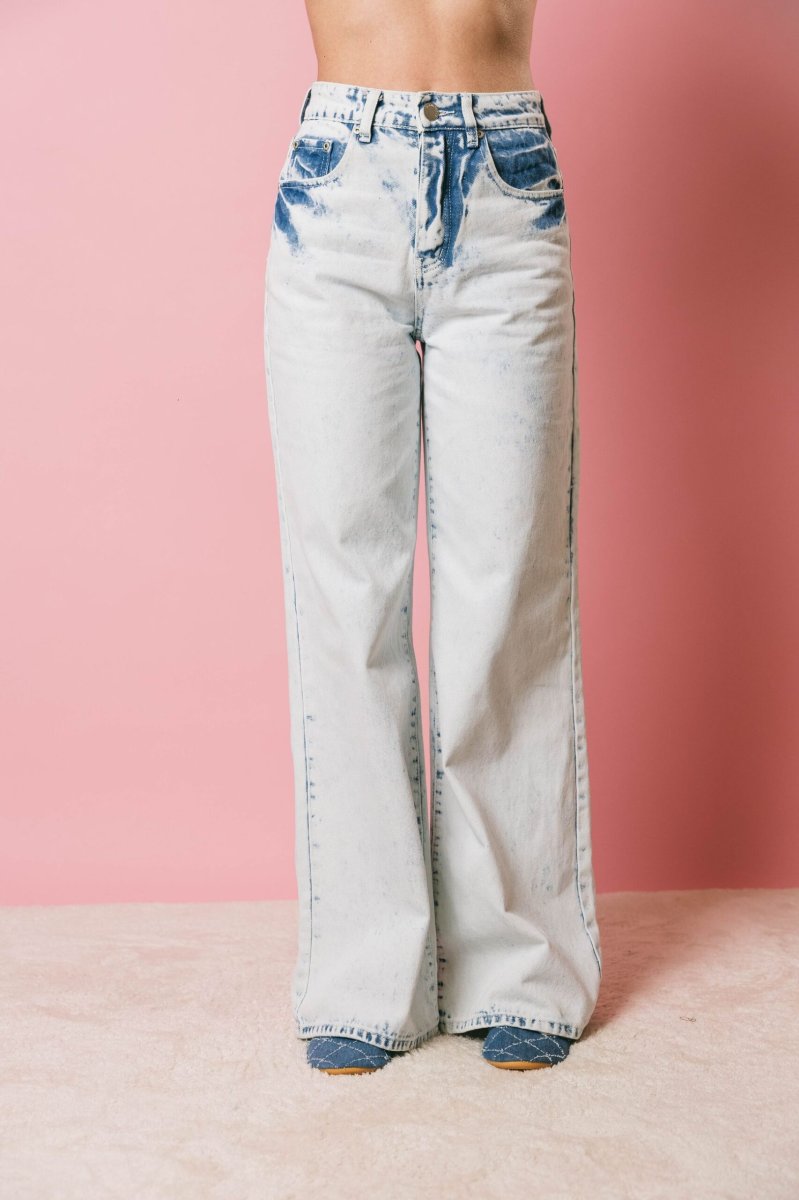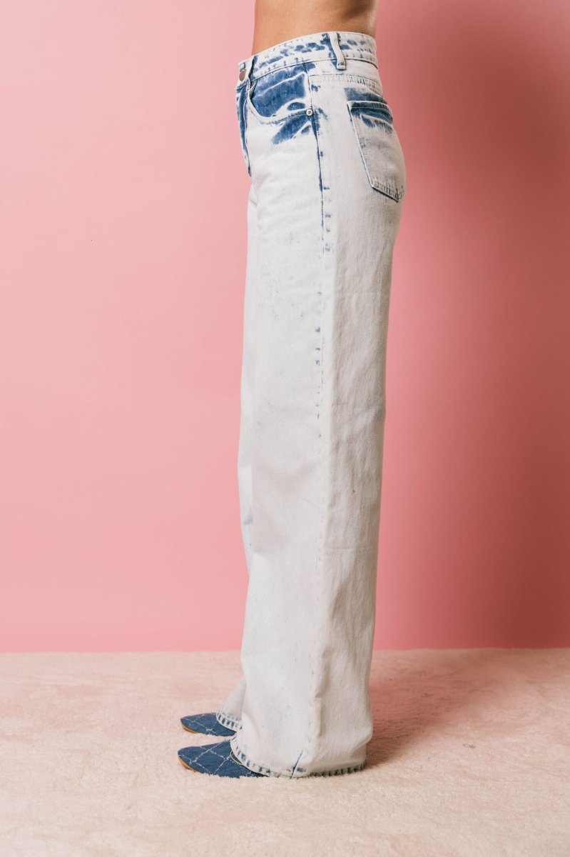 Jeans in puro cotone effetto bleach, modello leggermente a zampa