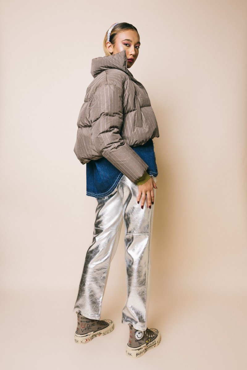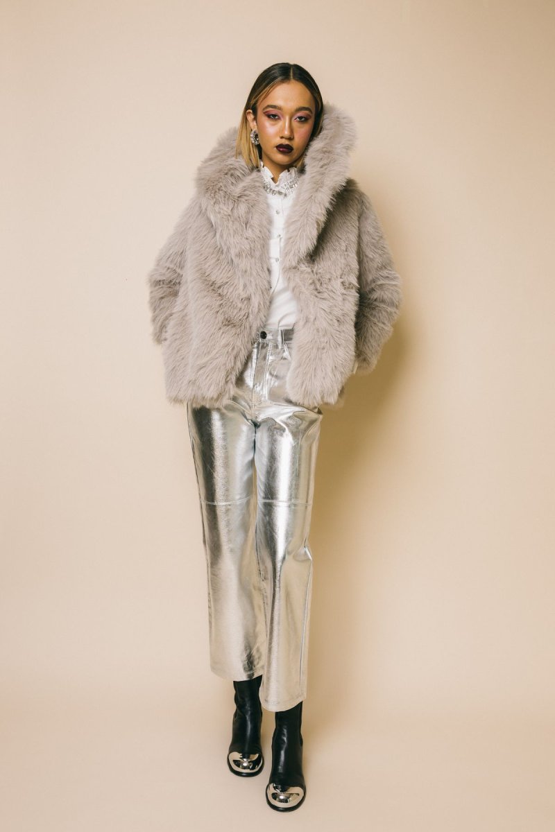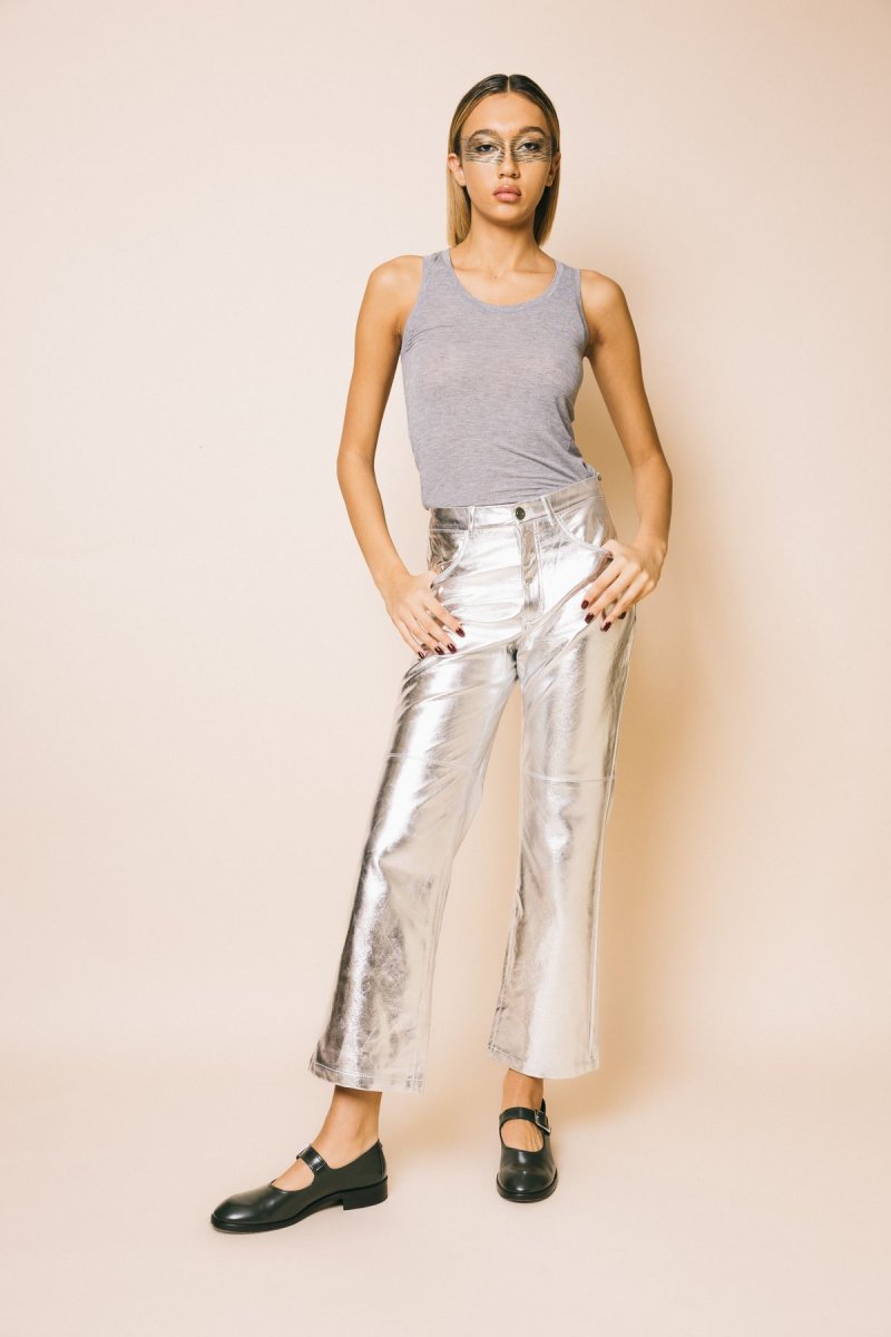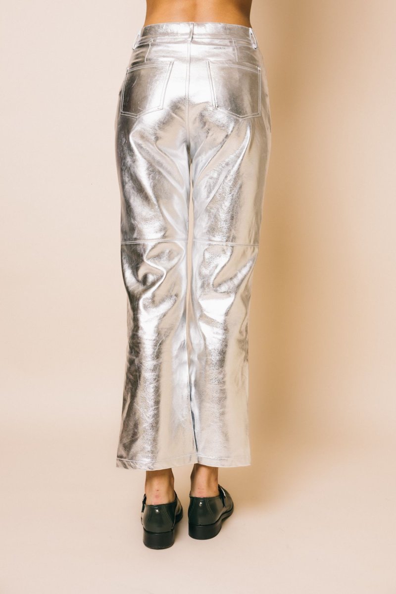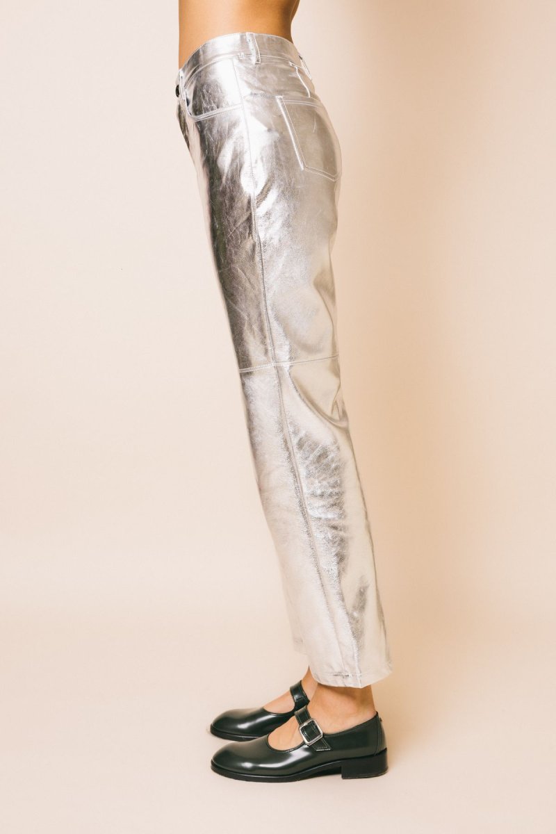 Pantalone 5 tasche in ecopelle silver, gamba dritta