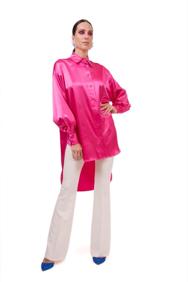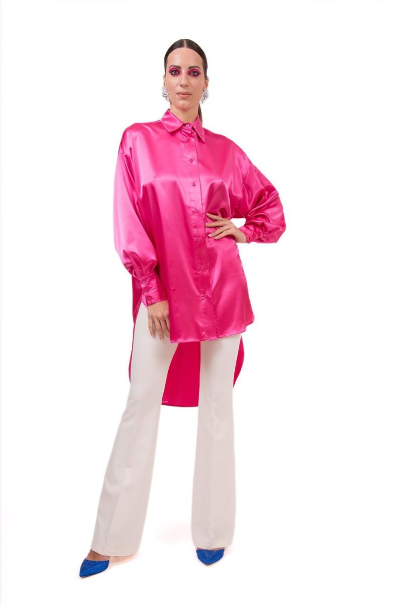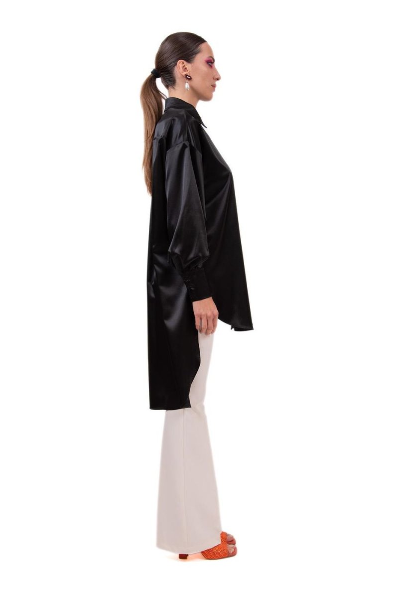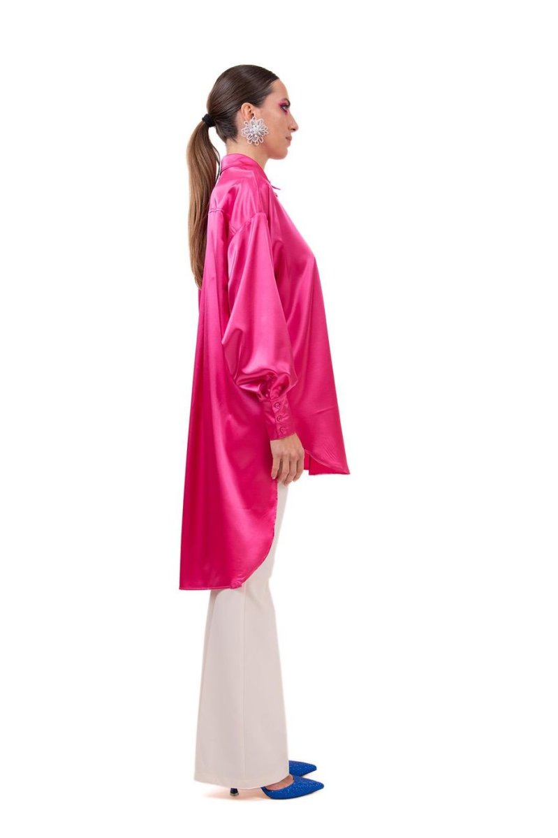 MAXI ABITO/CAMICIA IN RASO CON COLLETTO CAMICIA