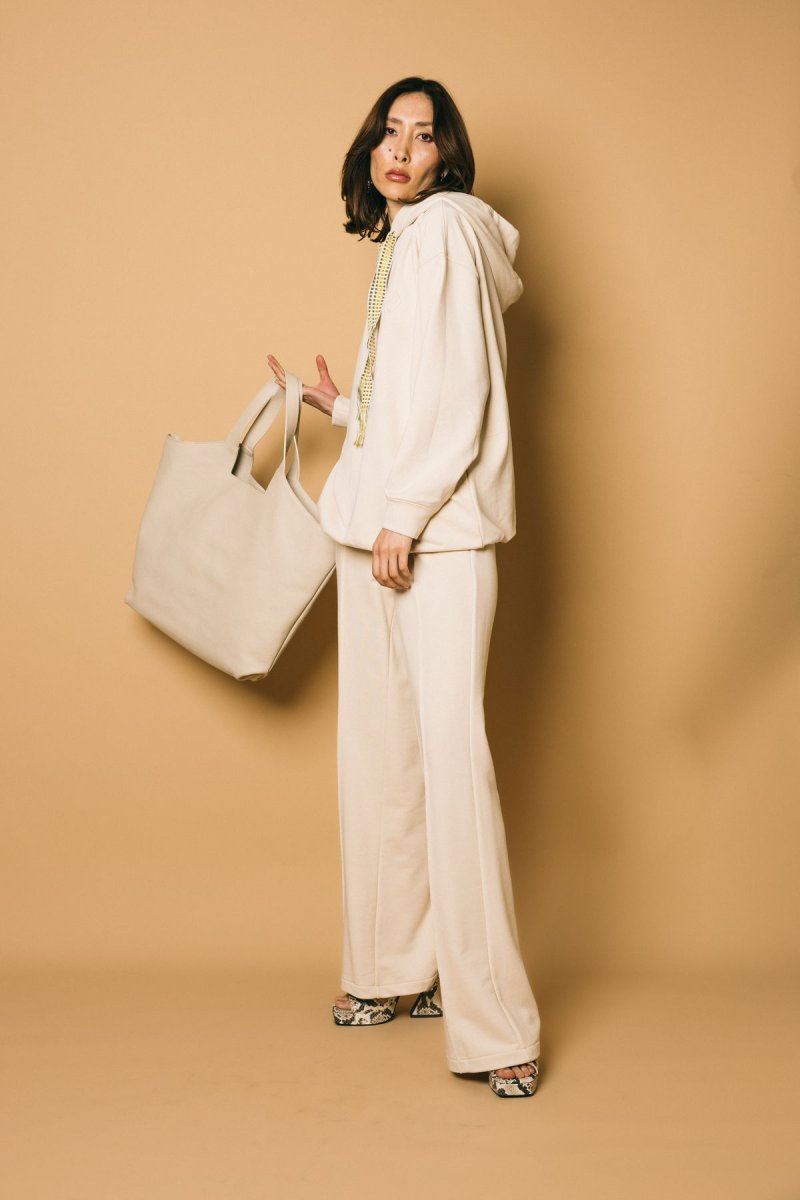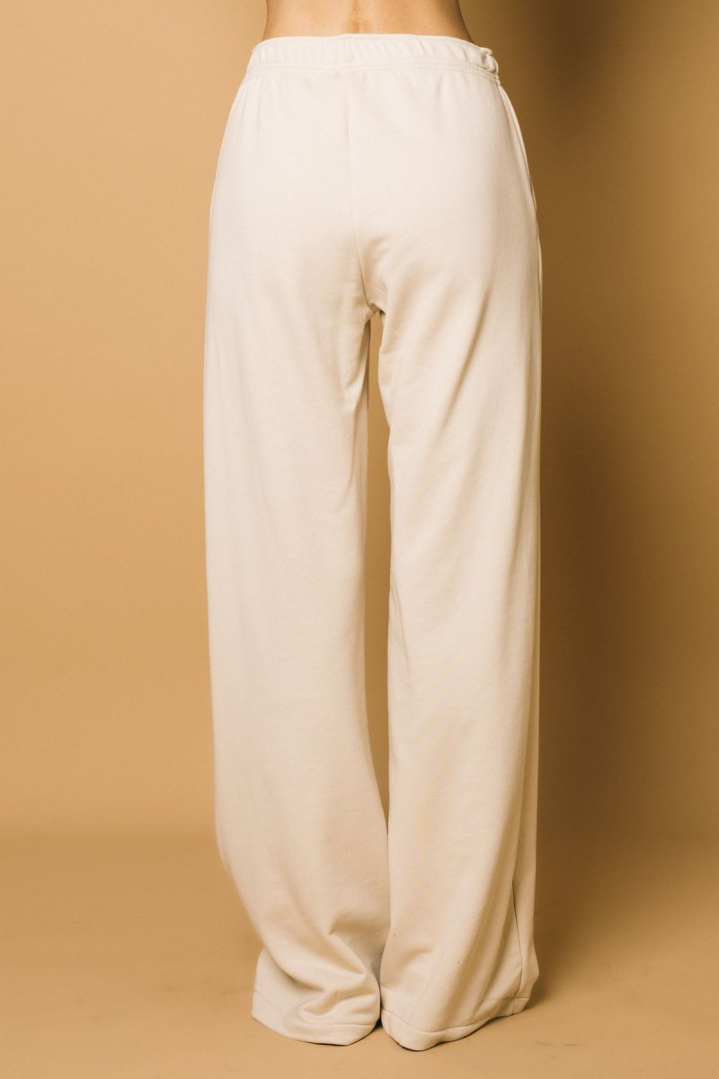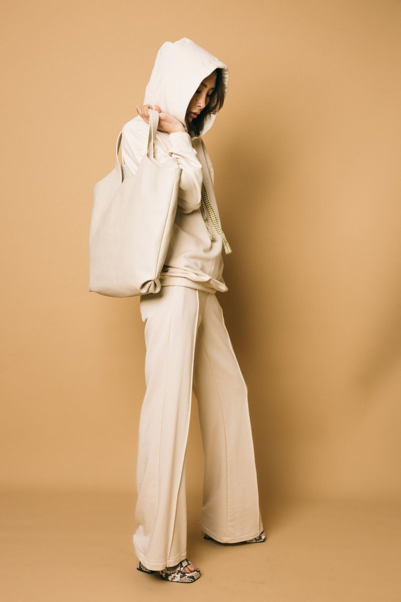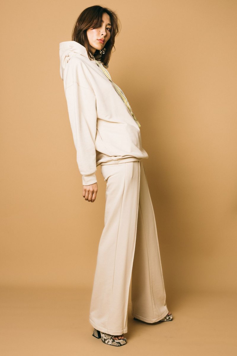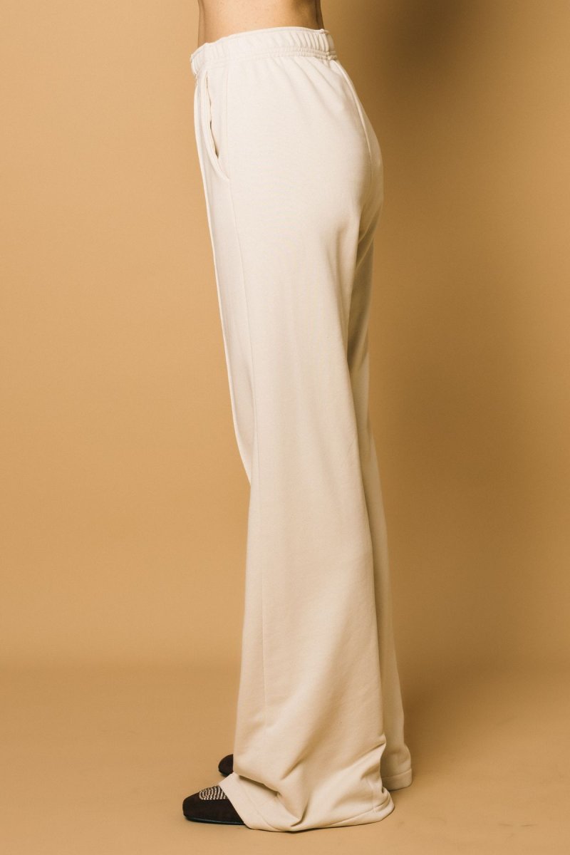 Pantalone palazzo in felpa con logo ricamato tono su tono