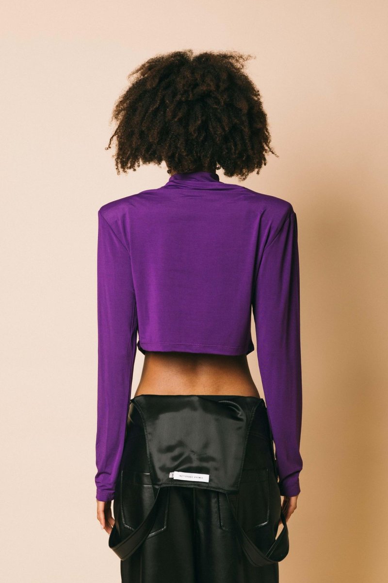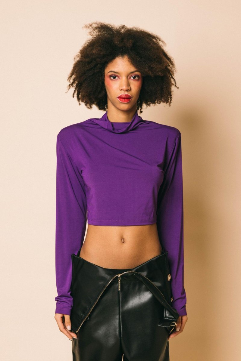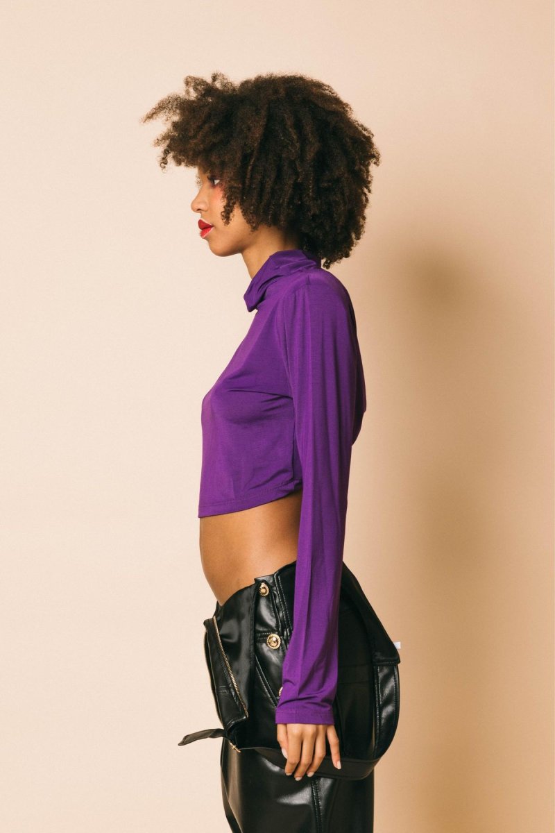 Lupetto crop manica lunga in viscosa Misura indossata in foto: XS Altezza modella: 1.76 m