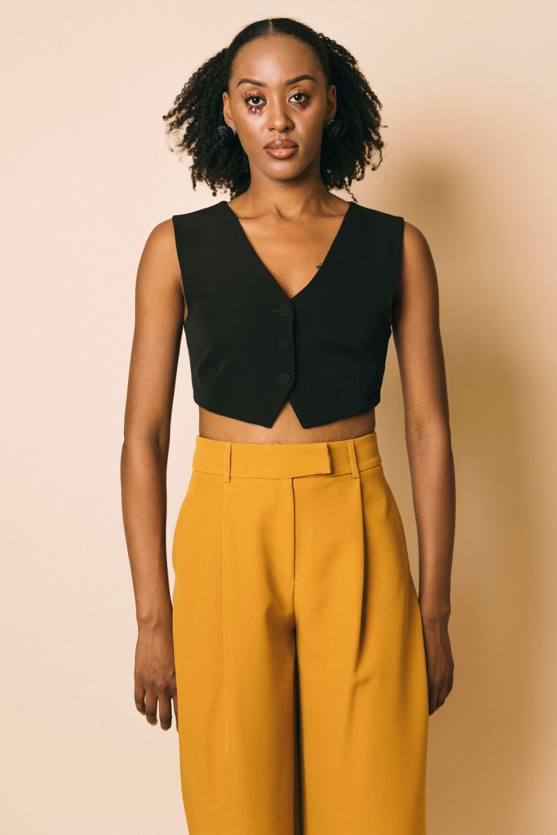 Gilet corto con bottoni rivestiti Misura indossata in foto: XS Altezza modella: 1.81 m
