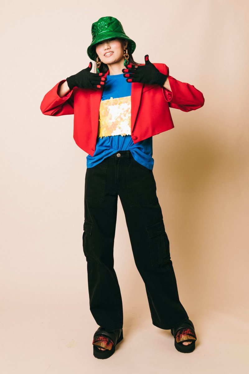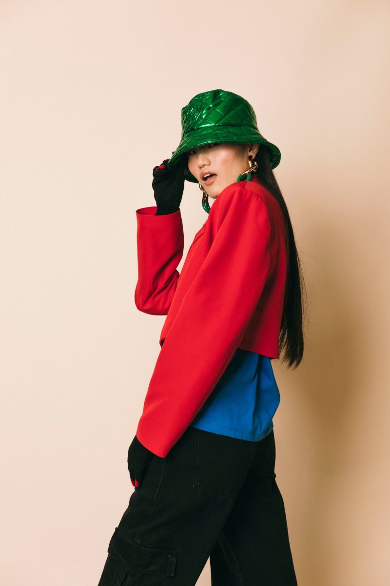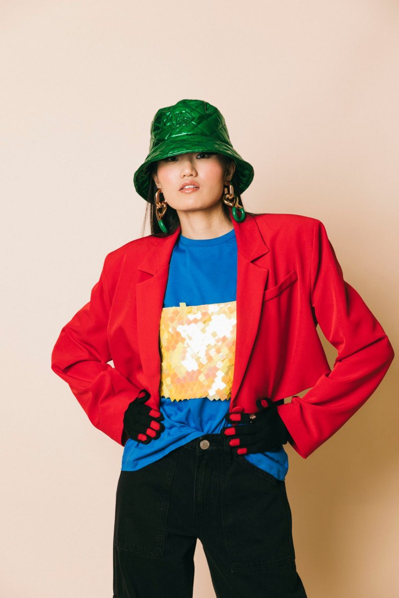 Giacca spencer un bottone con spalline Misura indossata in foto: XS Altezza modella: 1.77 m