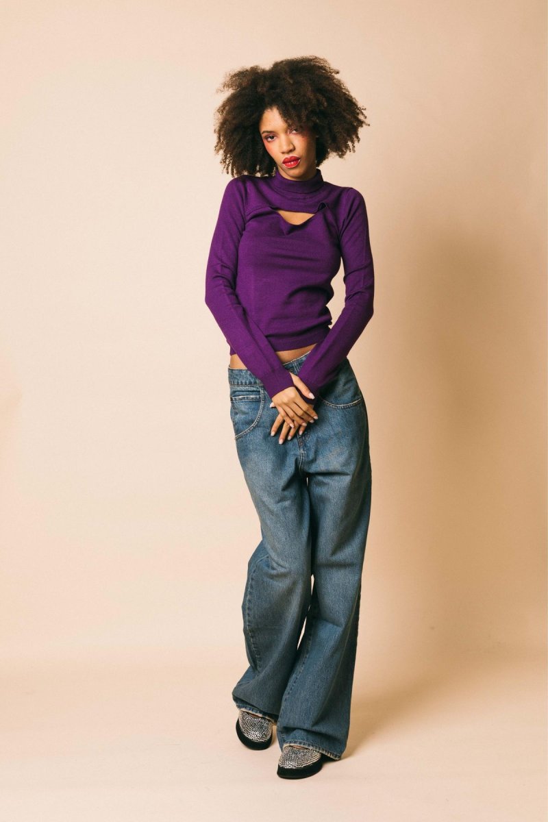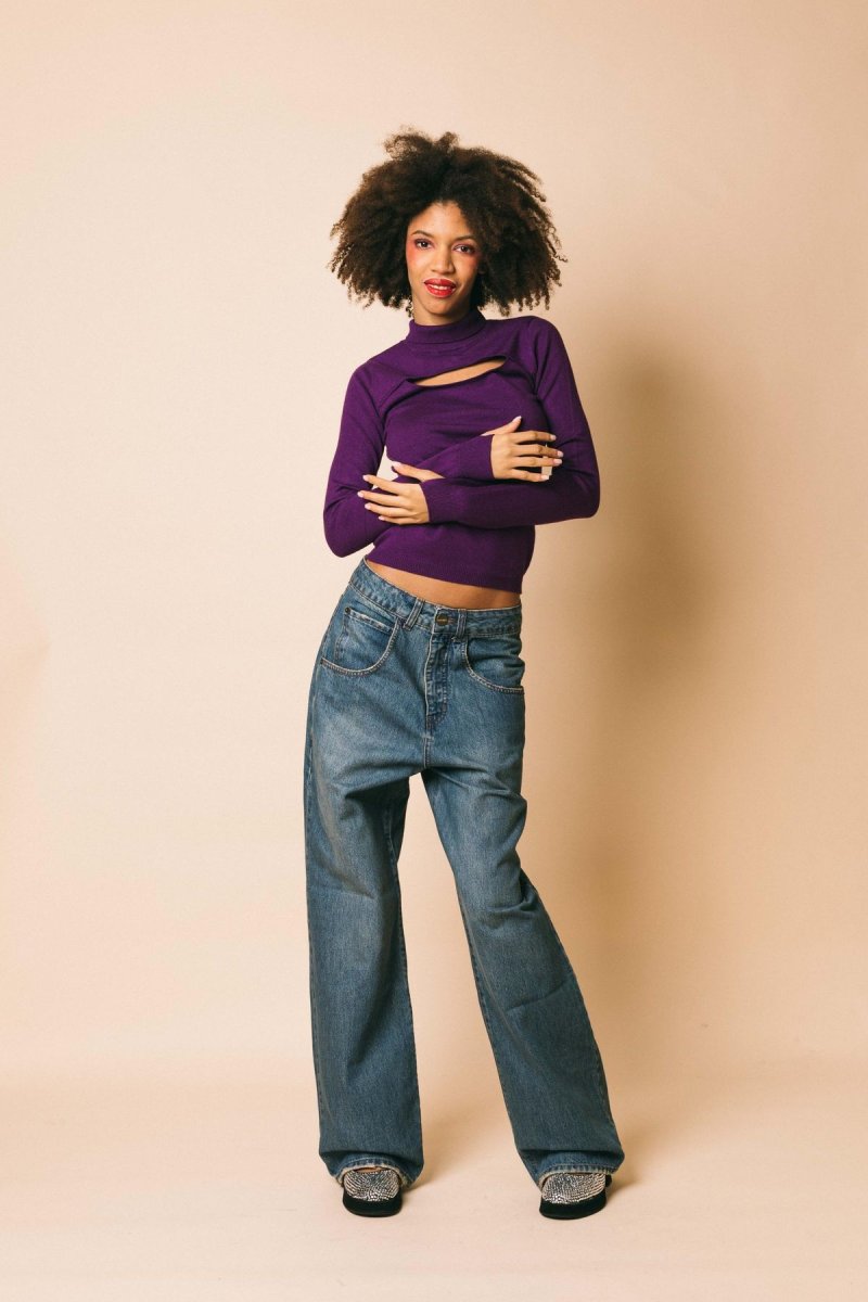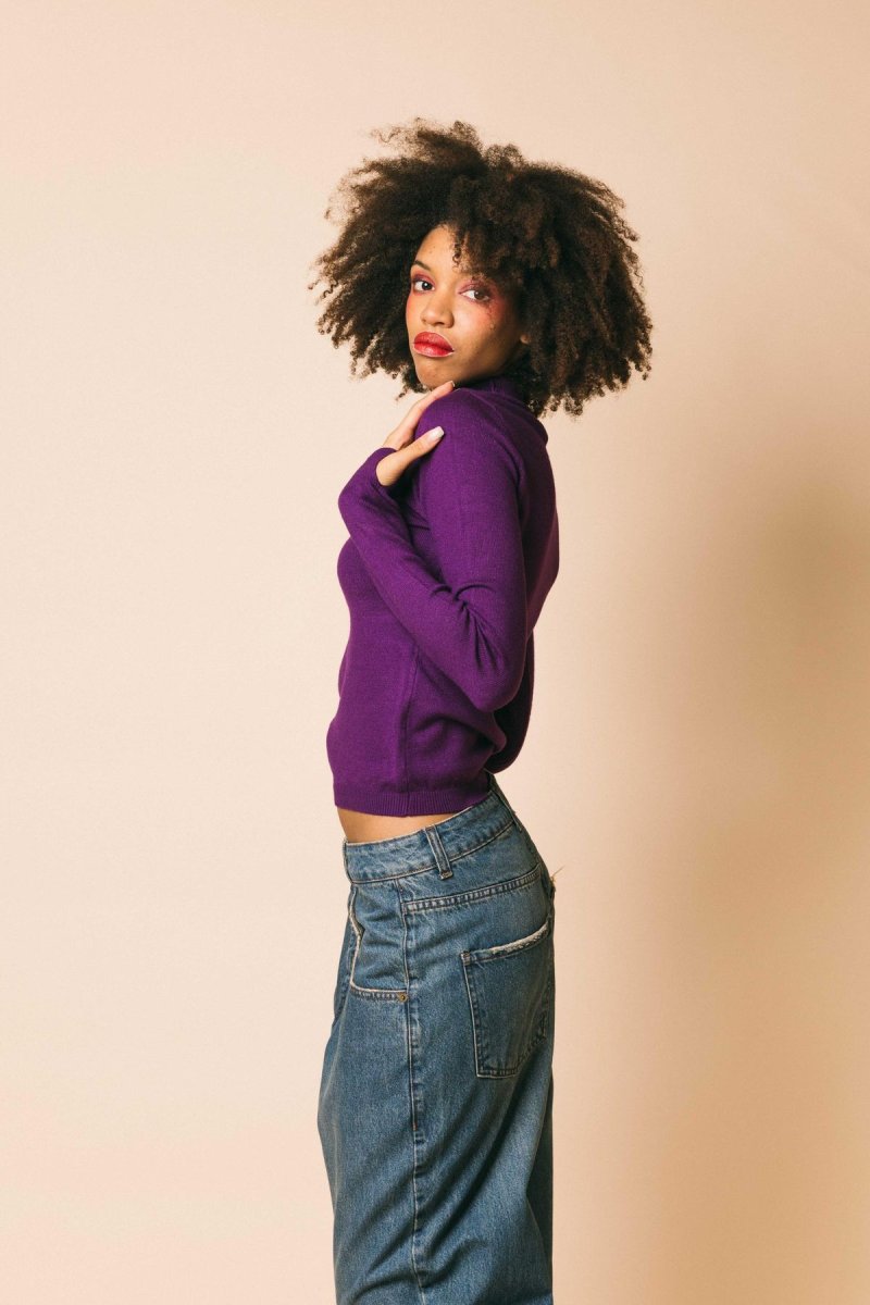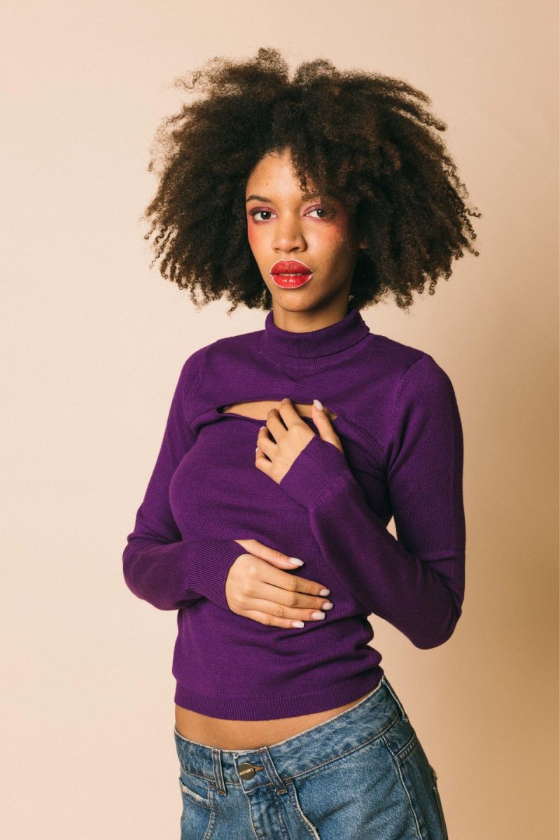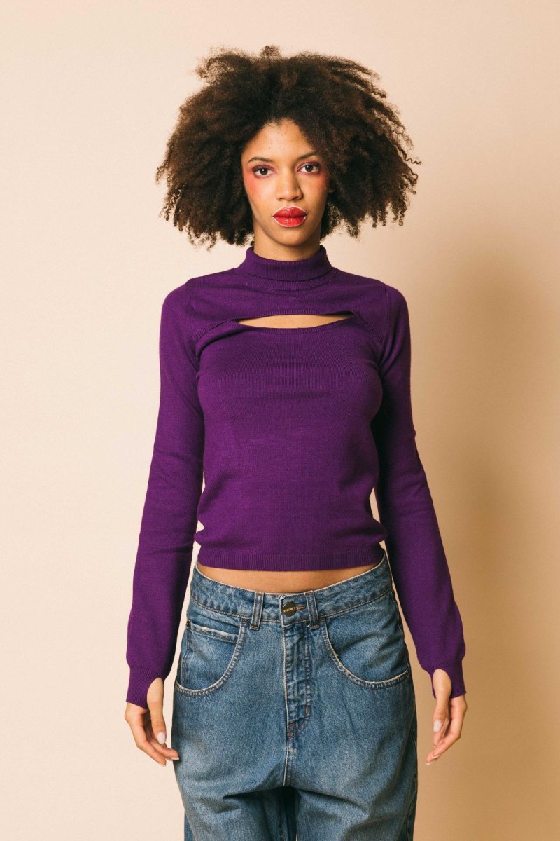 Lupetto in maglia rasata con apertura sul decolletè